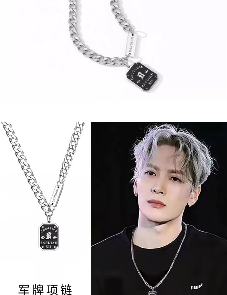 QMXD Wang Jiaer's same lucky nameplate necklace men's trendy light luxury high-end pendant women's clavicle chain birthday gift lucky nameplate necklace