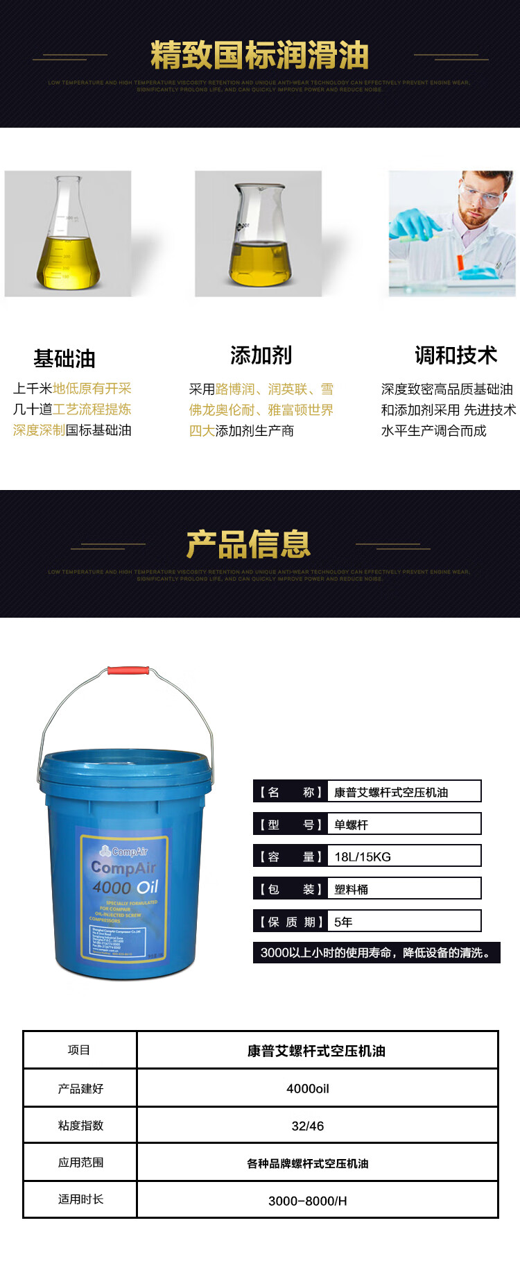Sliding vane air compressor oil Compair sliding vane oil Compair 4000OIL screw air compressor oil 8000 hours
