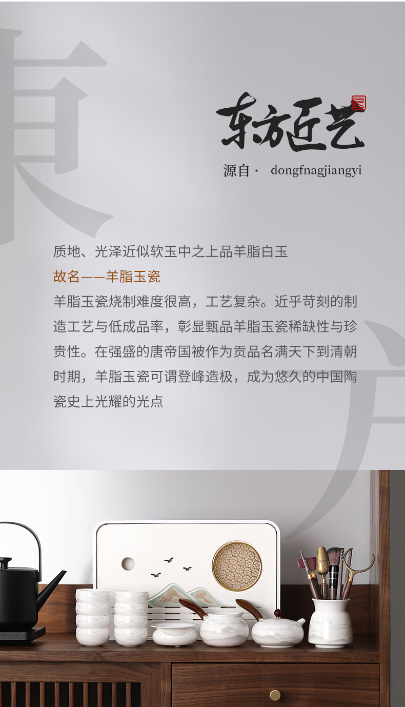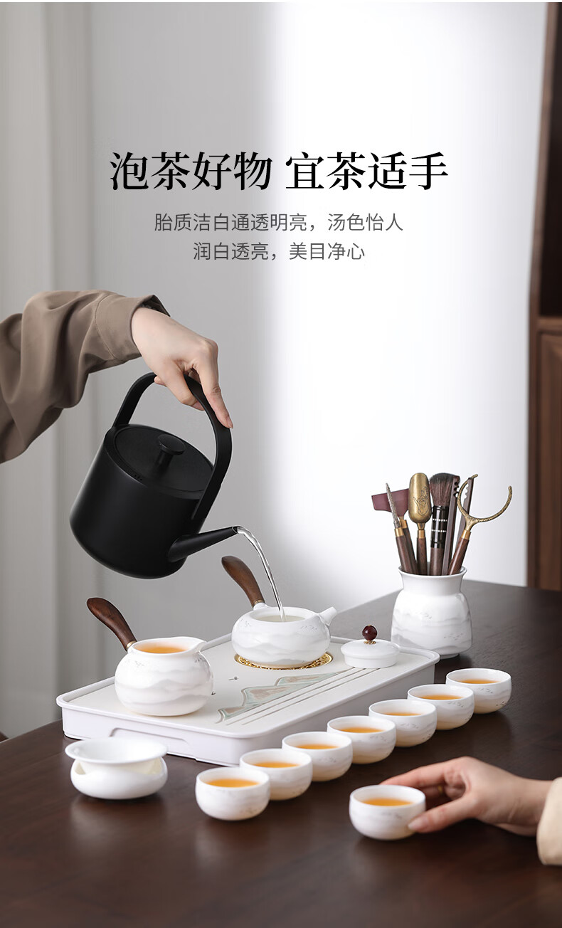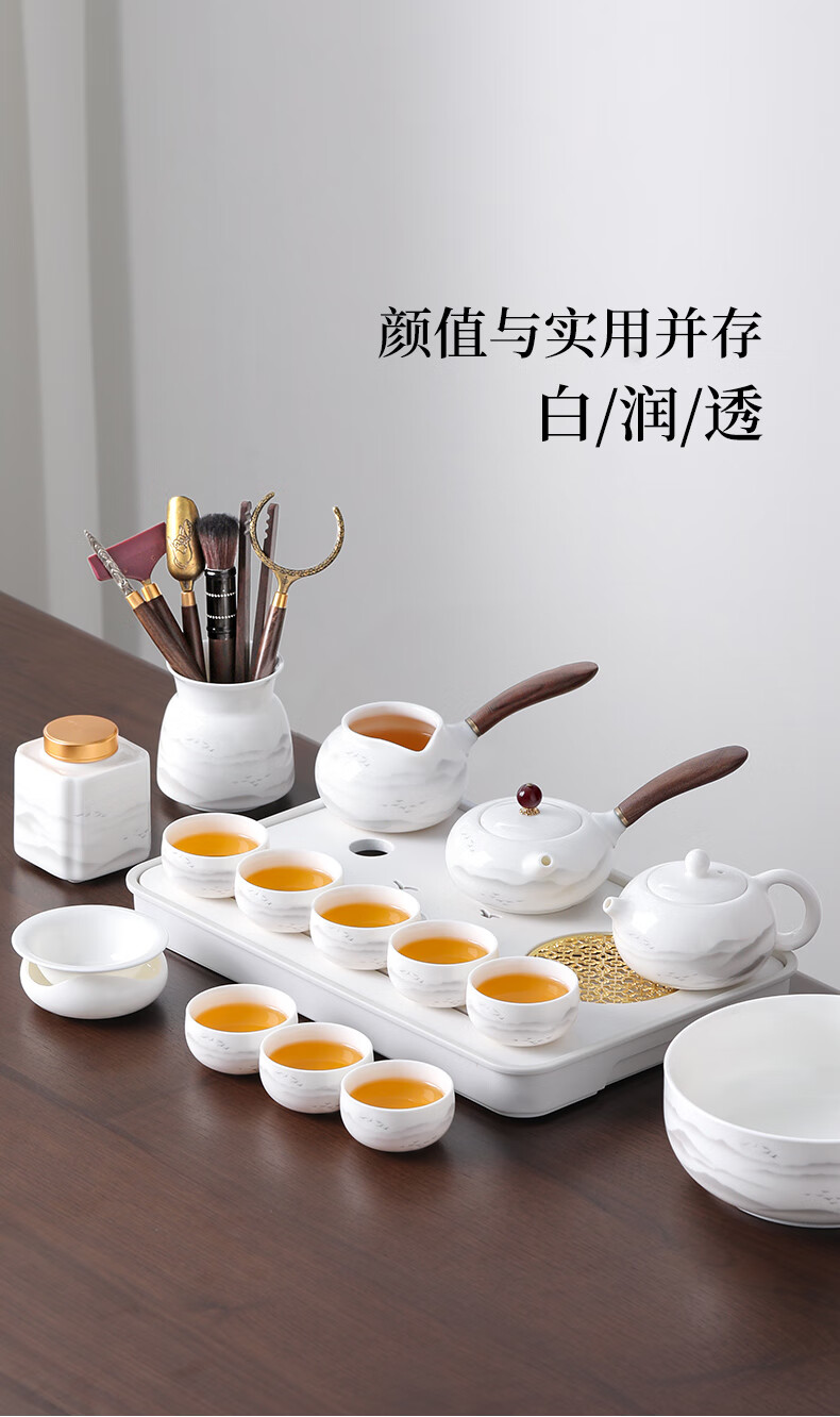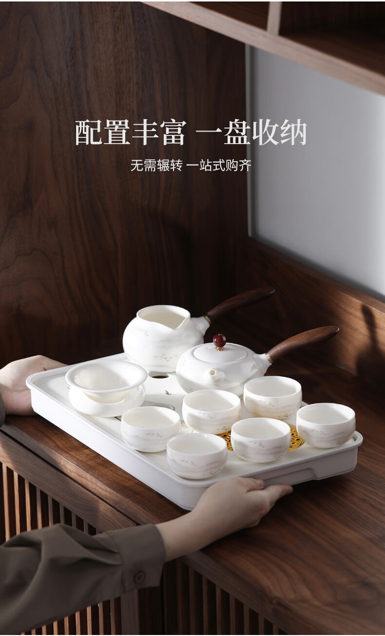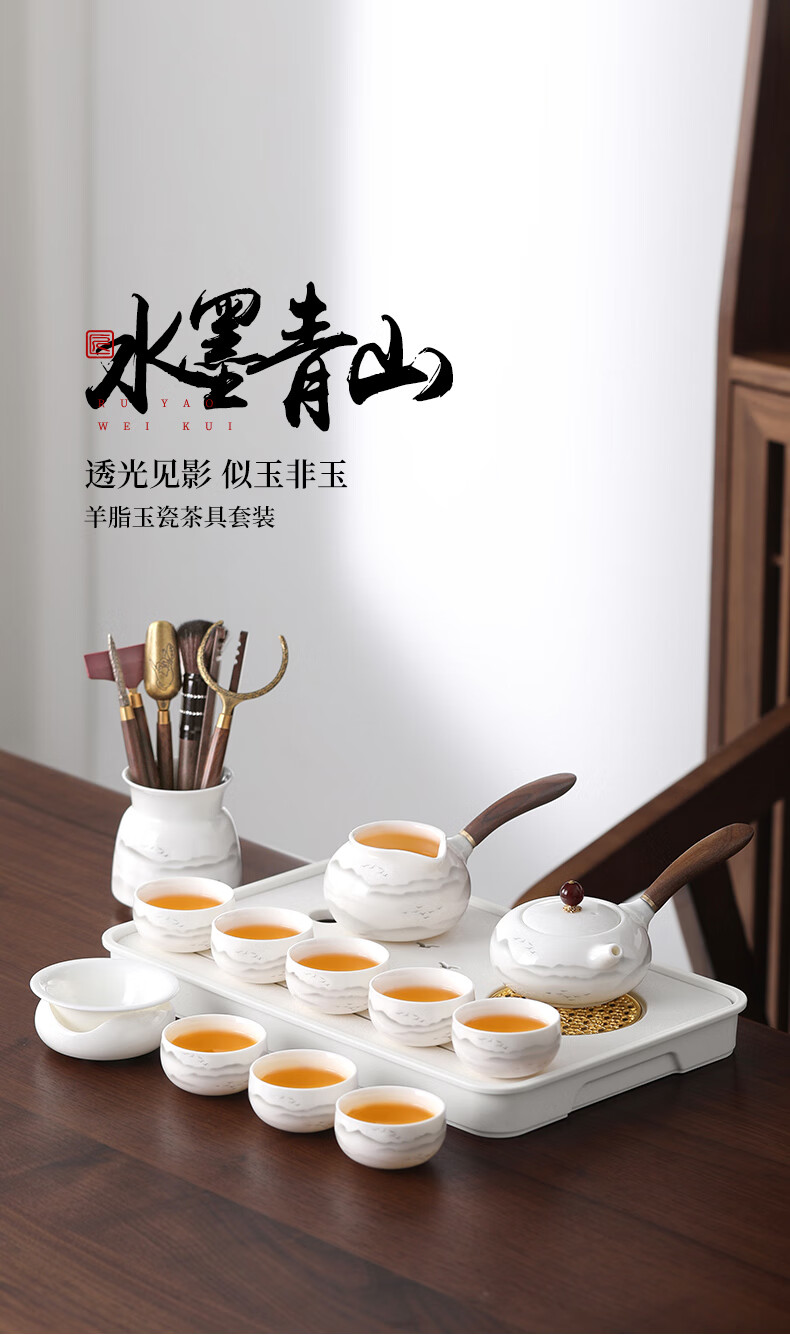 Shangyanfang mutton-fat jade porcelain Kung Fu tea set complete set of high-end home and office ceramic tea tray tea making tools and supplies 3 8-cup drinking version ink set