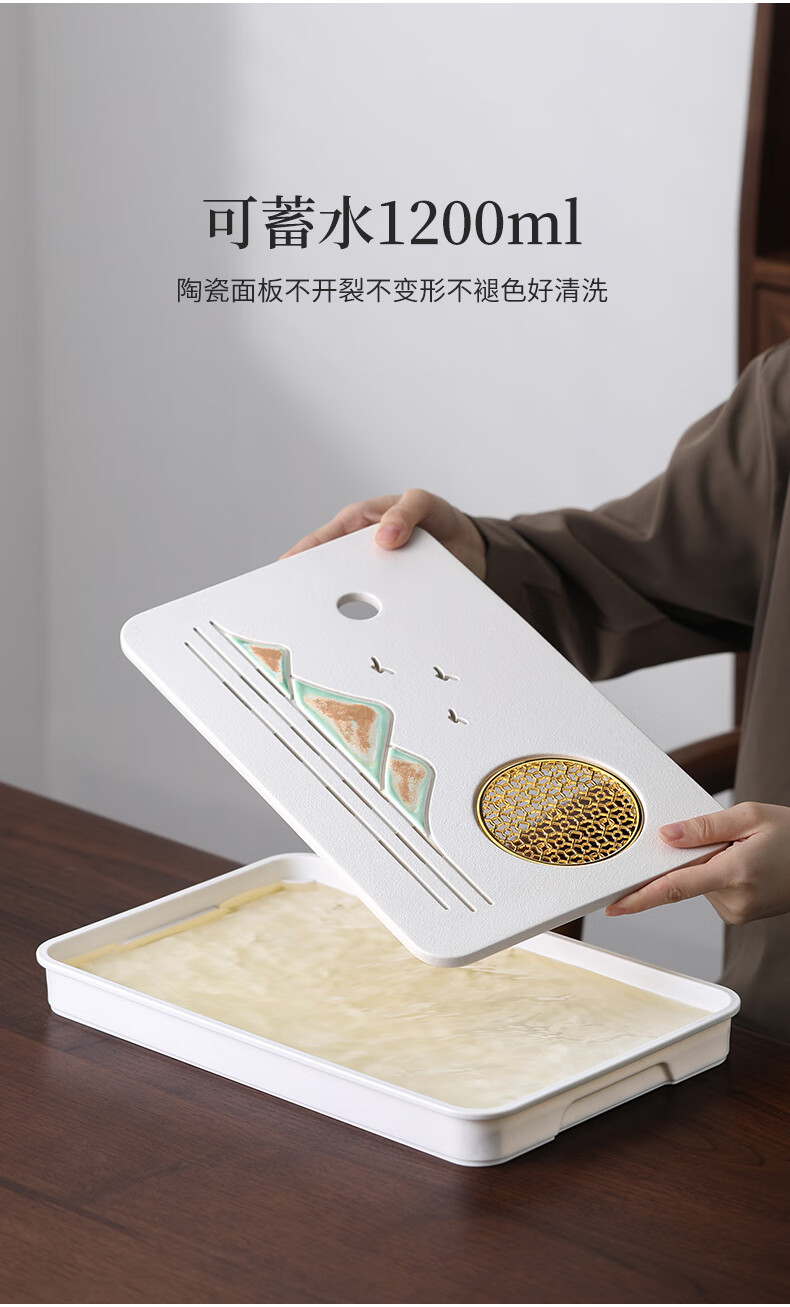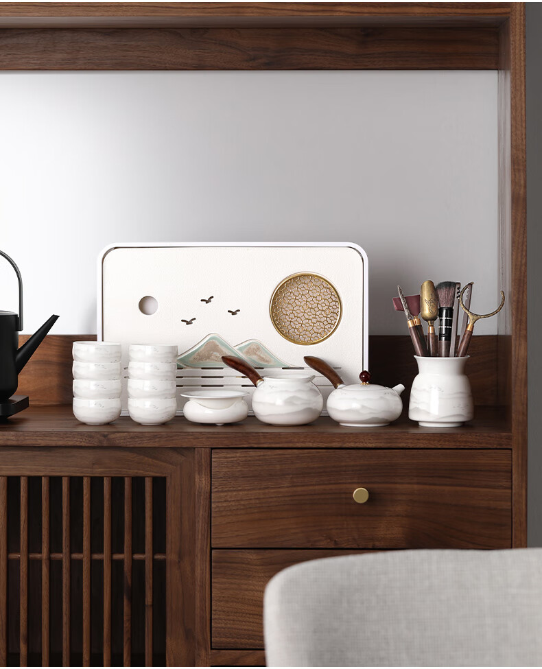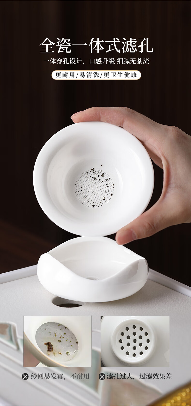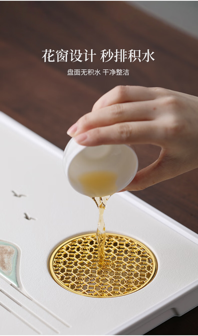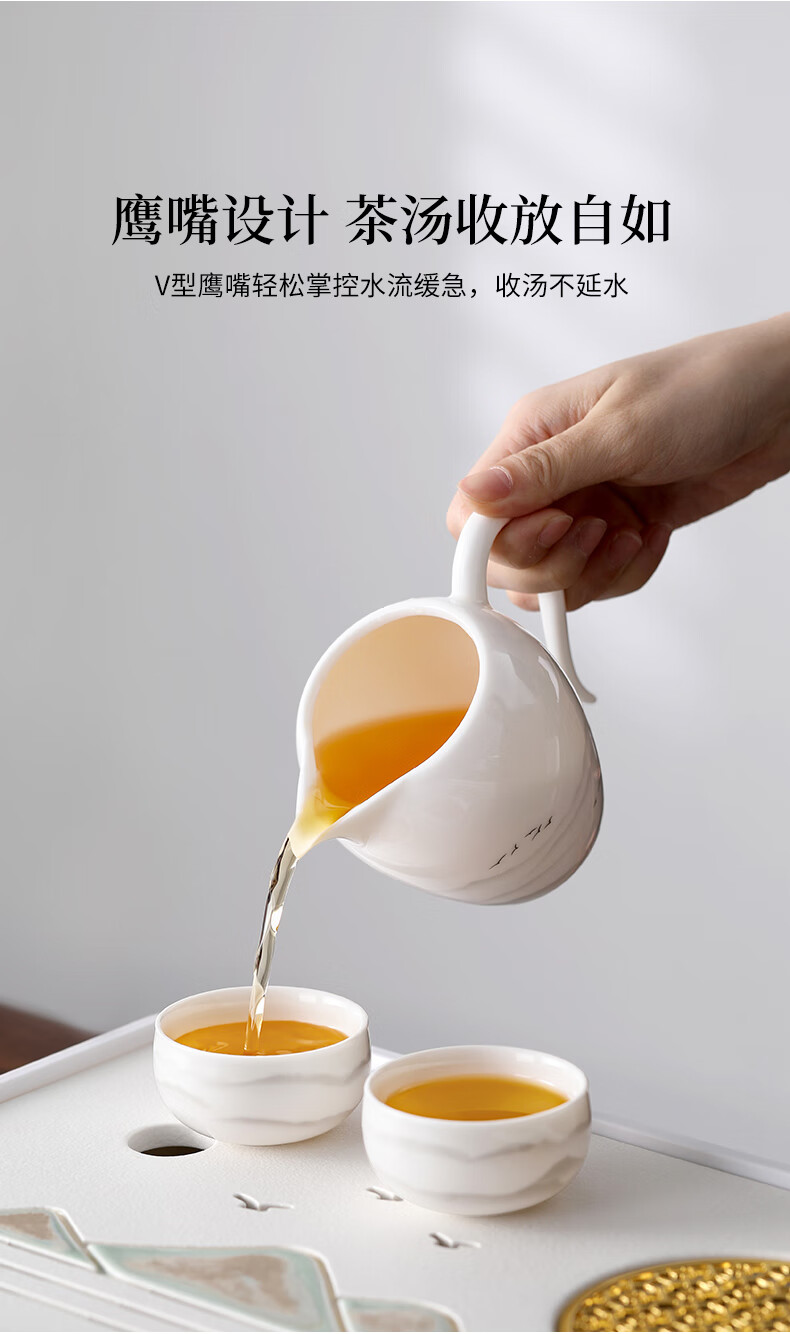 Shangyanfang mutton-fat jade porcelain Kung Fu tea set complete set of high-end home and office ceramic tea tray tea making tools and supplies 3 8-cup drinking version ink set