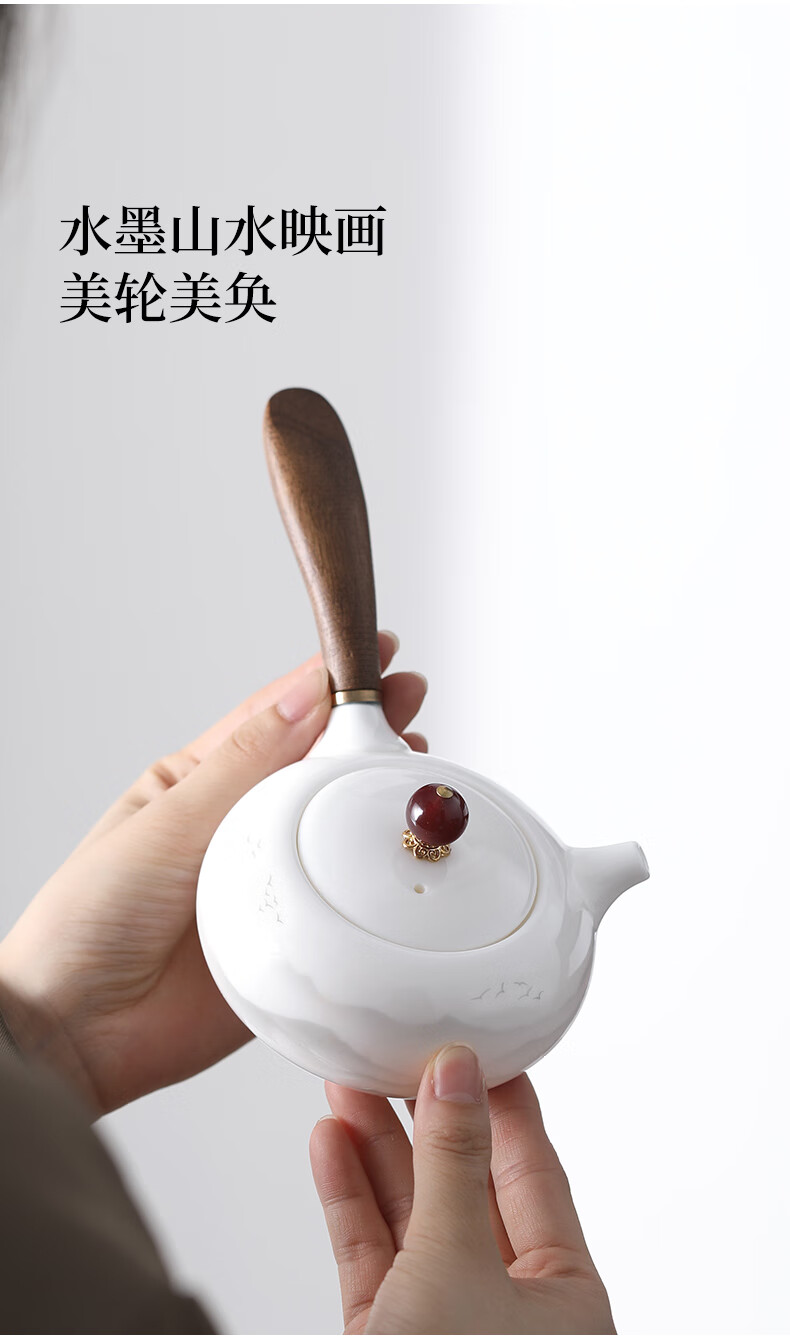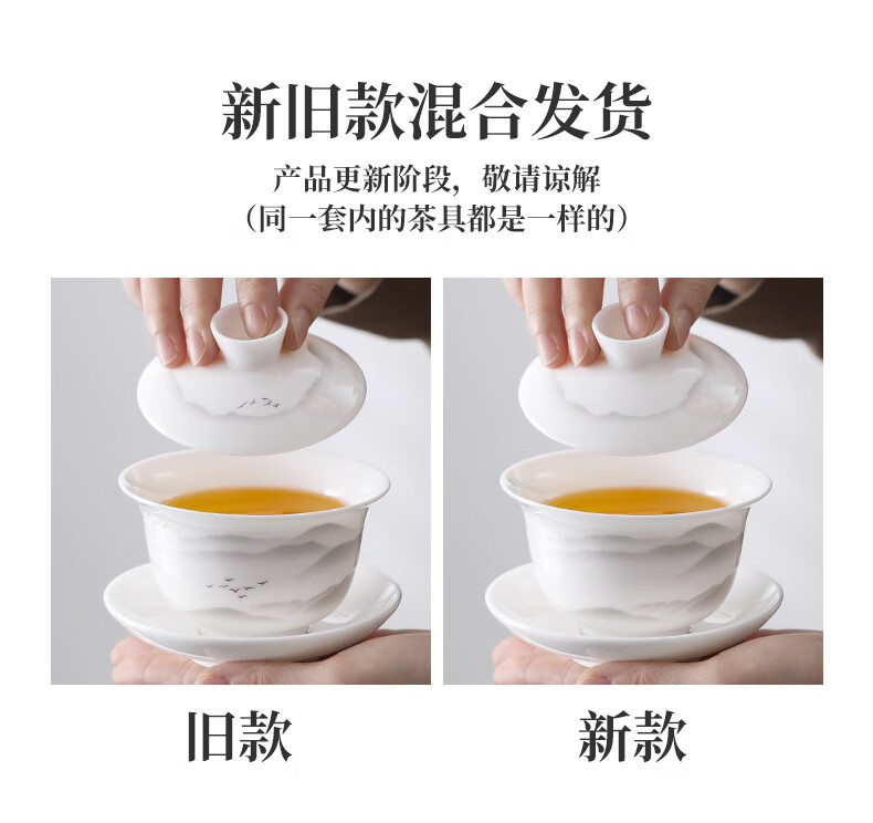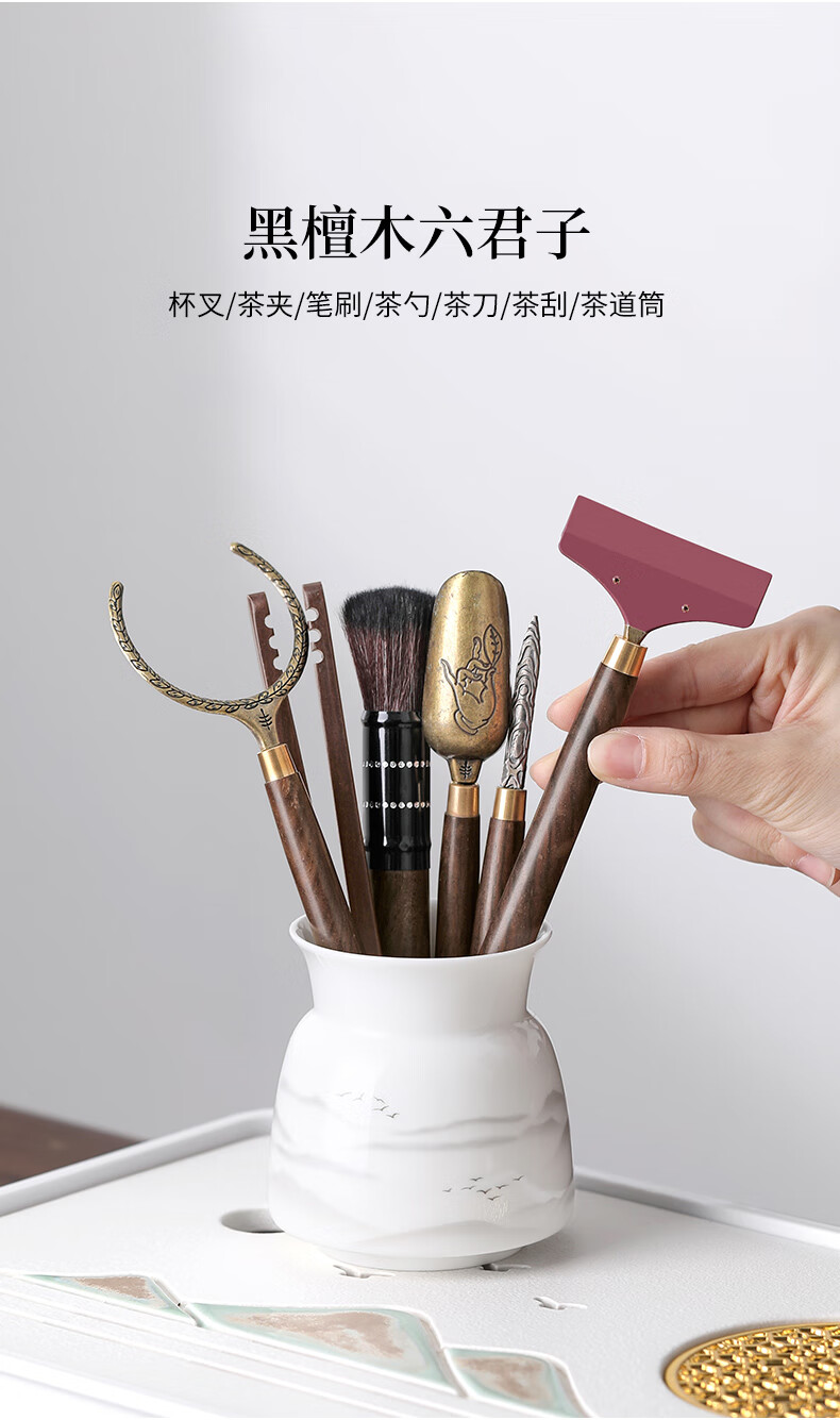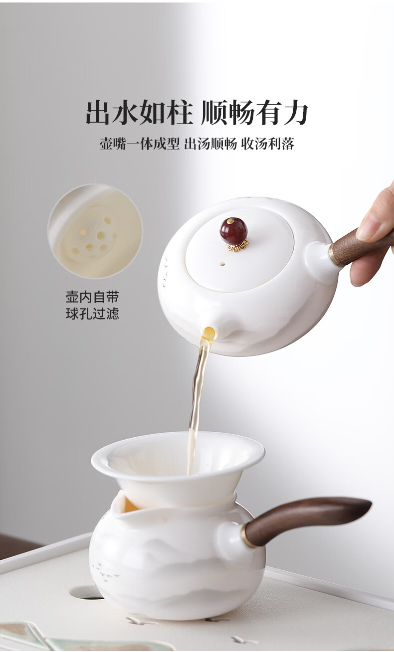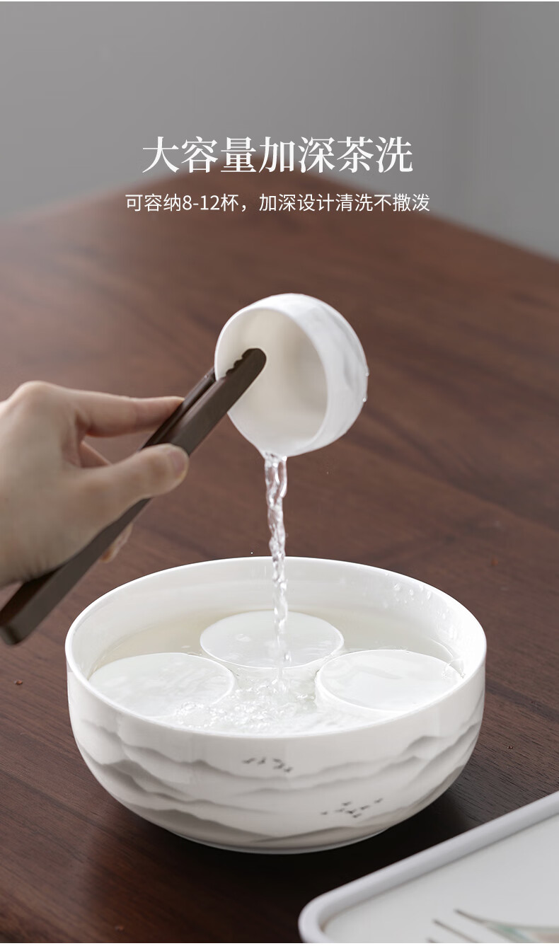 Shangyanfang mutton-fat jade porcelain Kung Fu tea set complete set of high-end home and office ceramic tea tray tea making tools and supplies 3 8-cup drinking version ink set