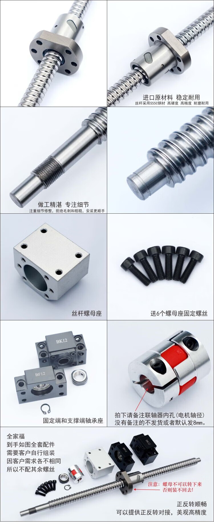 Ball Screw Set Screw Nut Complete Module Slide SFU1605 Linear Guide Optical Axis 2005 2505 1605-200mm Complete Set as Pictured Others