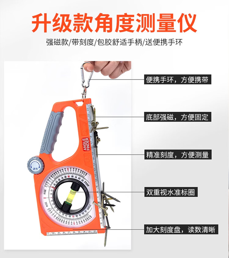 Upright slope ruler, multi-functional level measuring instrument, angle gauge, universal slope meter, construction slope measuring angle ruler, slope measuring ruler belt, strong magnetic upgrade