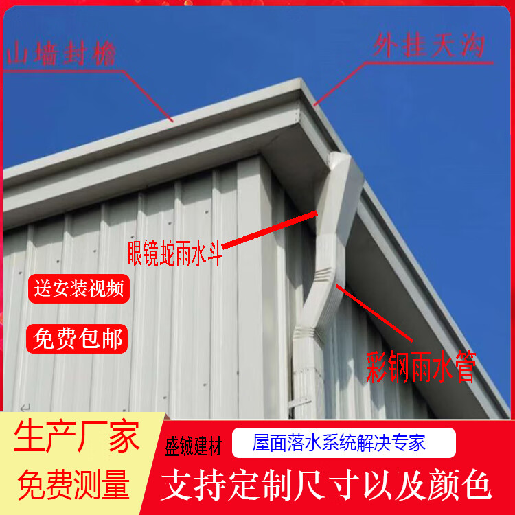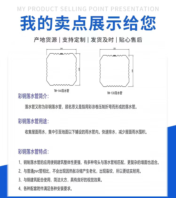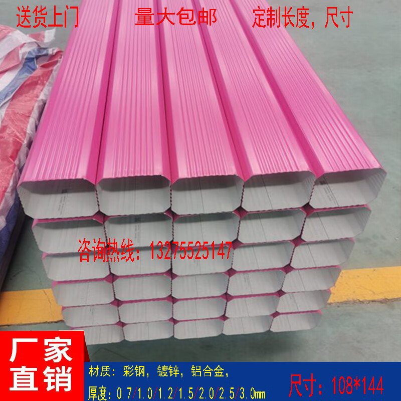 Square color steel plate downpipe, iron sheet 0.5-0.6mm rainwater pipe, large diameter square drainage pipe, villa aluminum alloy drainage pipe 108*144