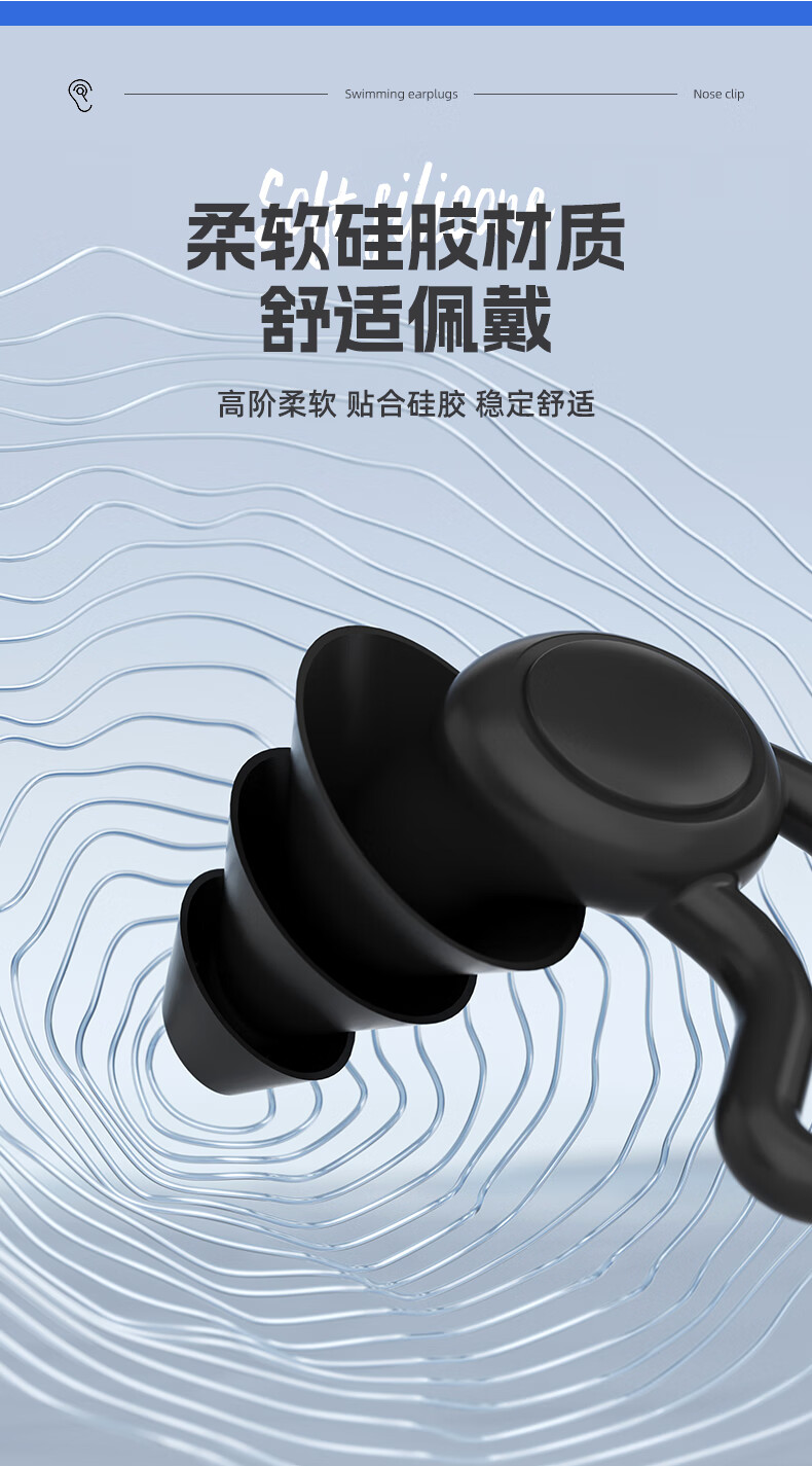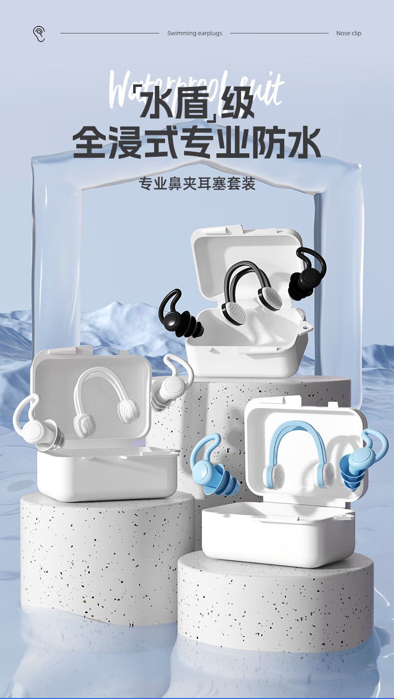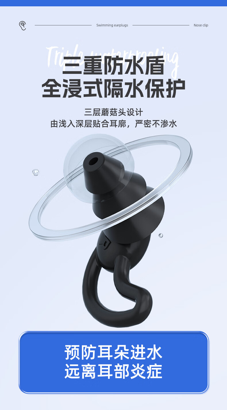 Yuke swimming earplugs waterproof professional swimming anti-water ingress non-soundproof anti-choking adult and children diving nose clip artifact set starry sky black earplugs + nose clip