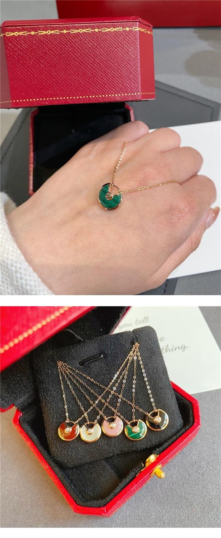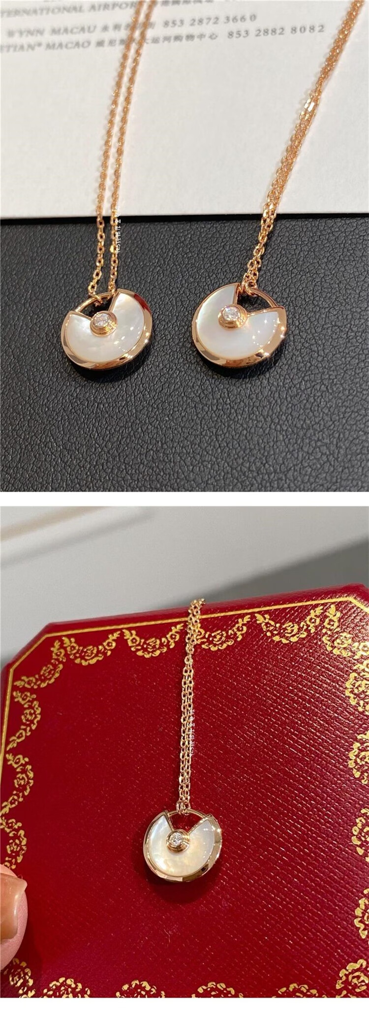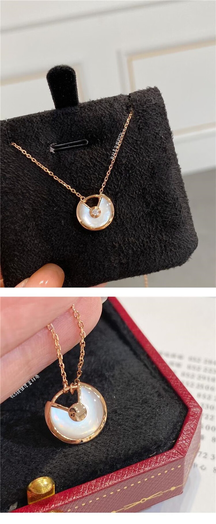 Fat Donglai same style amulet necklace 18k gold 2024 new women's silver plated 18K rose gold red malt amulet necklace white mother-of-pearl