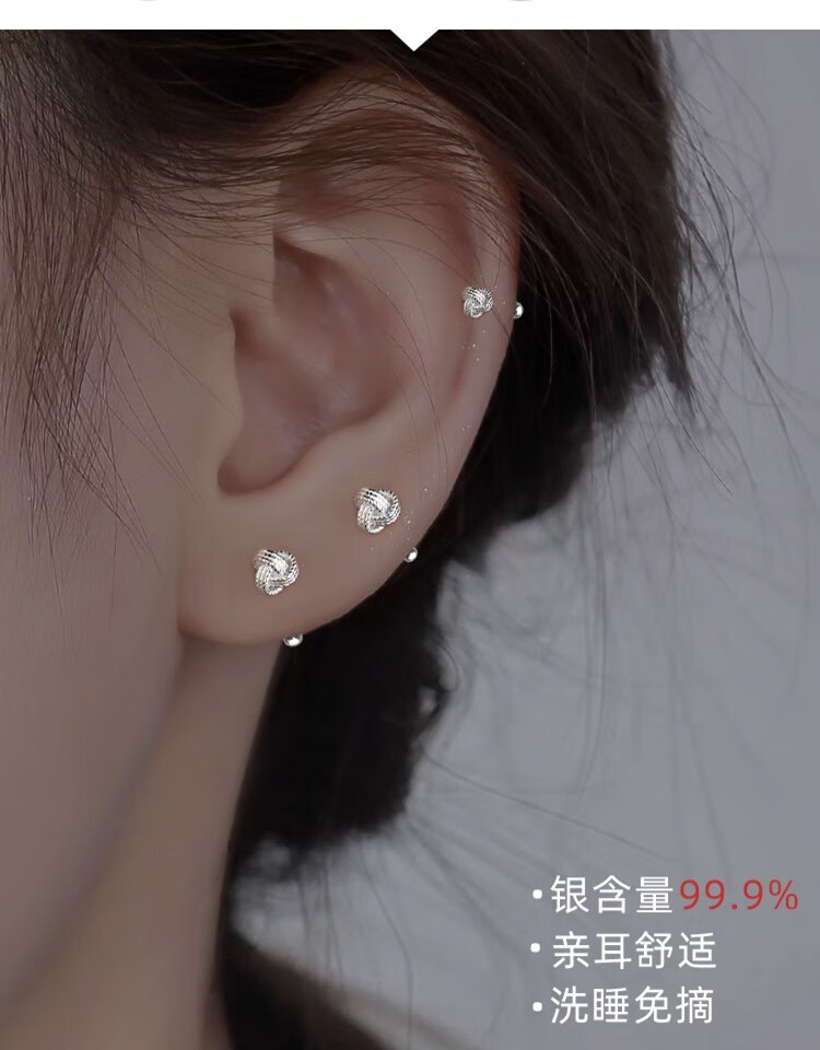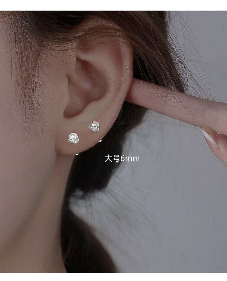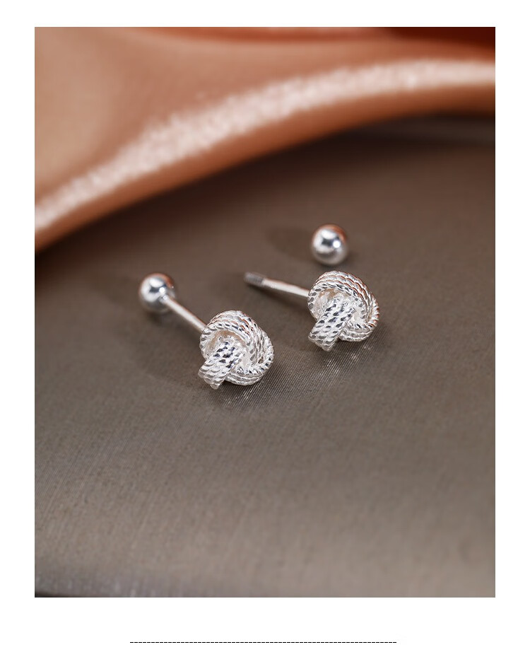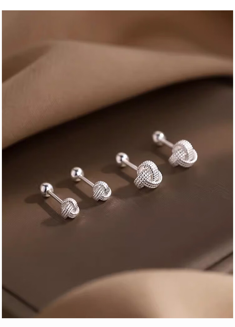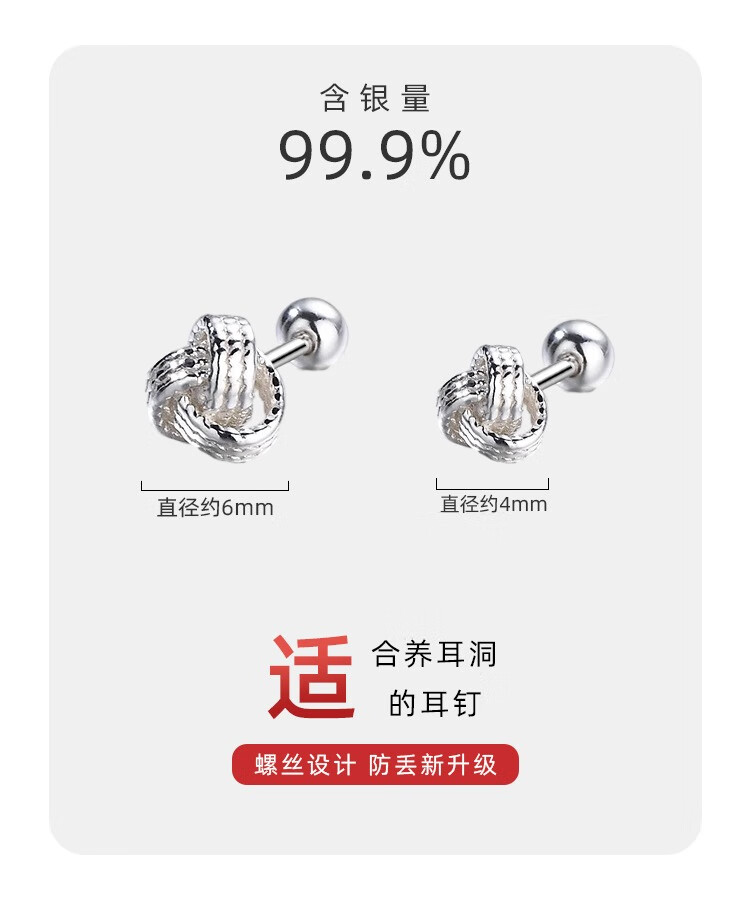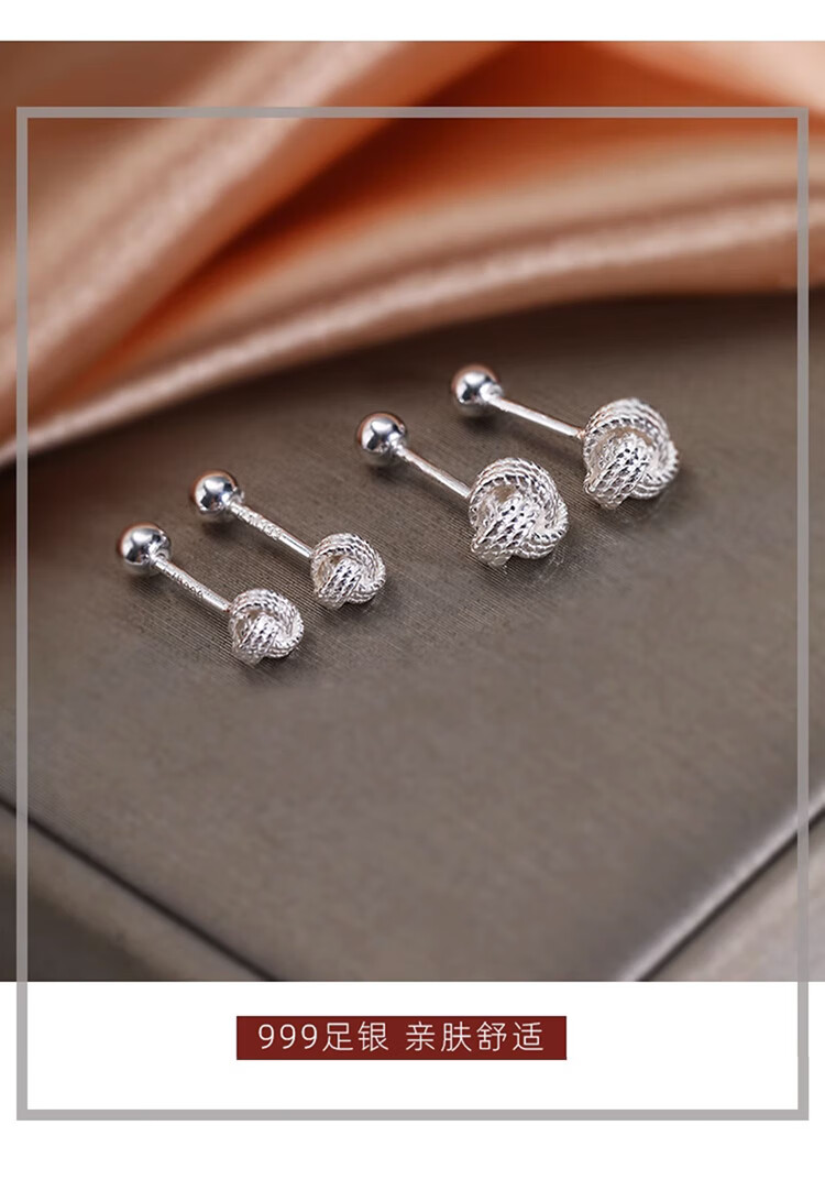 Holycat Cat in Arms 999 Pure Silver Ruyi Knot Earrings for Girls Ear Hole Earrings Pure Silver Ear Bone Nail Earrings as a Birthday Gift for Girlfriend Ruyi Knot Screw Earrings (Small Size) Pair