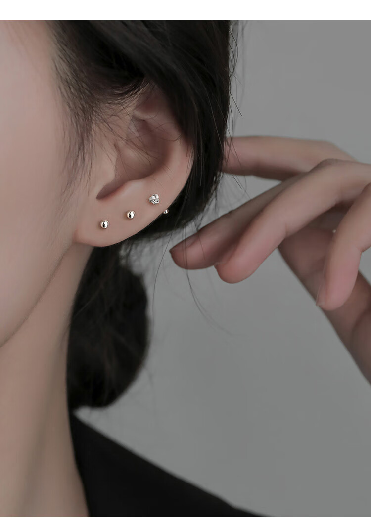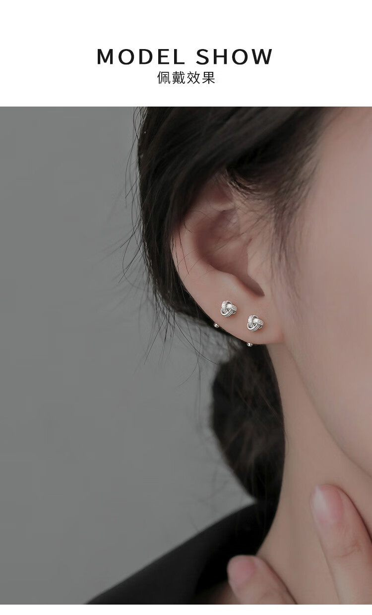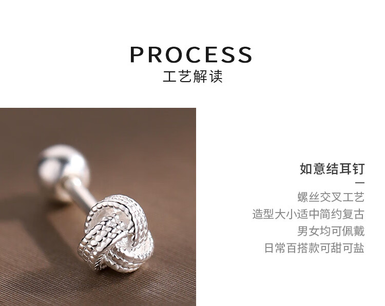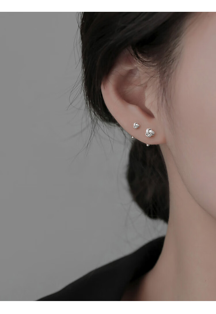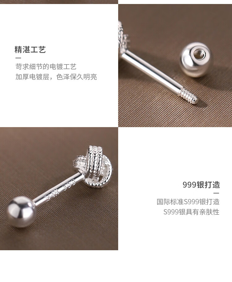 Holycat Cat in Arms 999 Pure Silver Ruyi Knot Earrings for Girls Ear Hole Earrings Pure Silver Ear Bone Nail Earrings as a Birthday Gift for Girlfriend Ruyi Knot Screw Earrings (Small Size) Pair