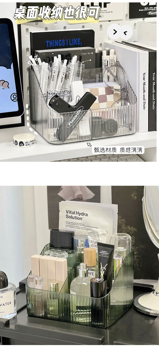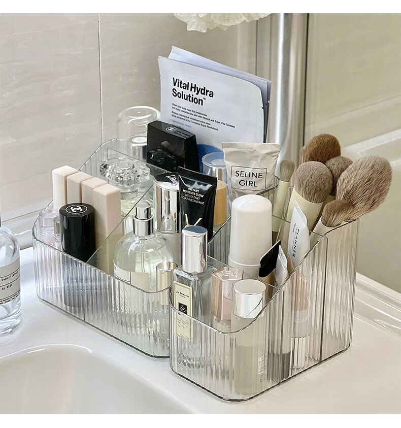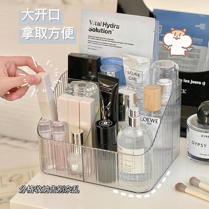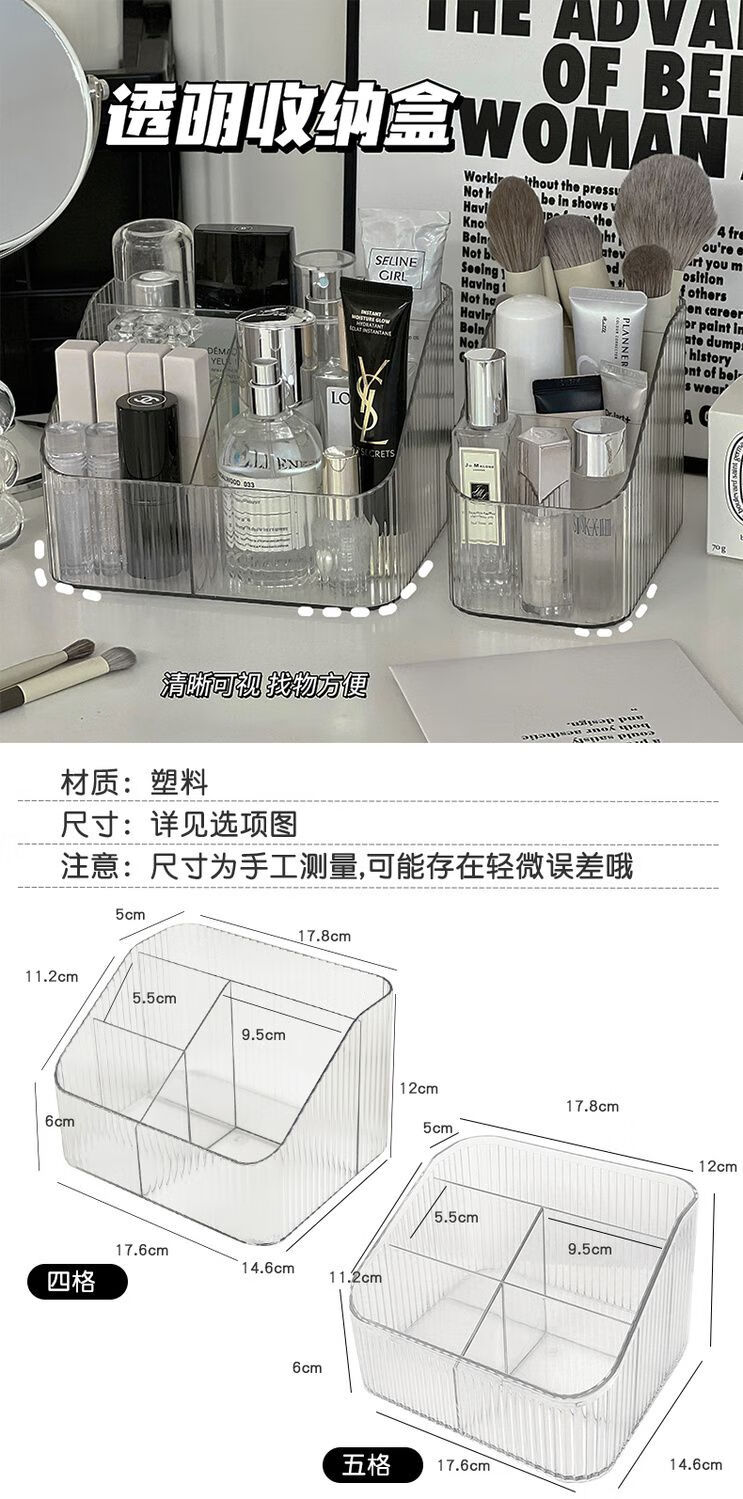 Chentong cosmetics storage box desktop high-end transparent acrylic skin care box brush holder lipstick dressing table storage rack four-compartment makeup box white 1