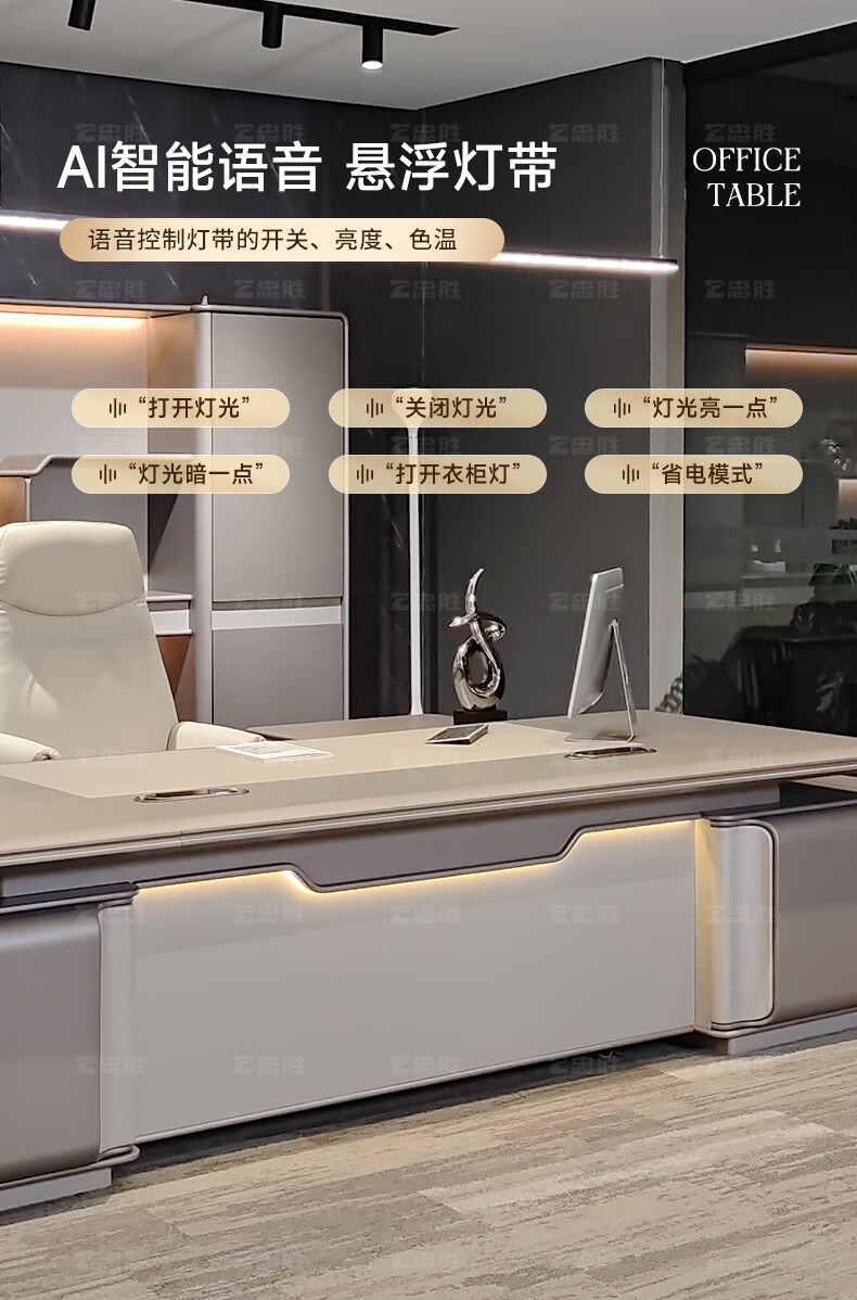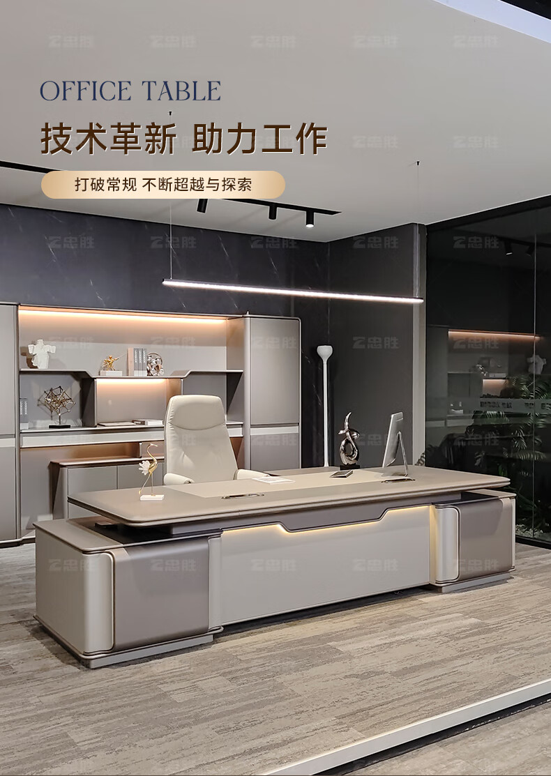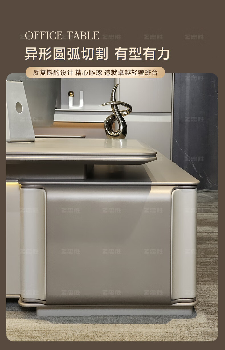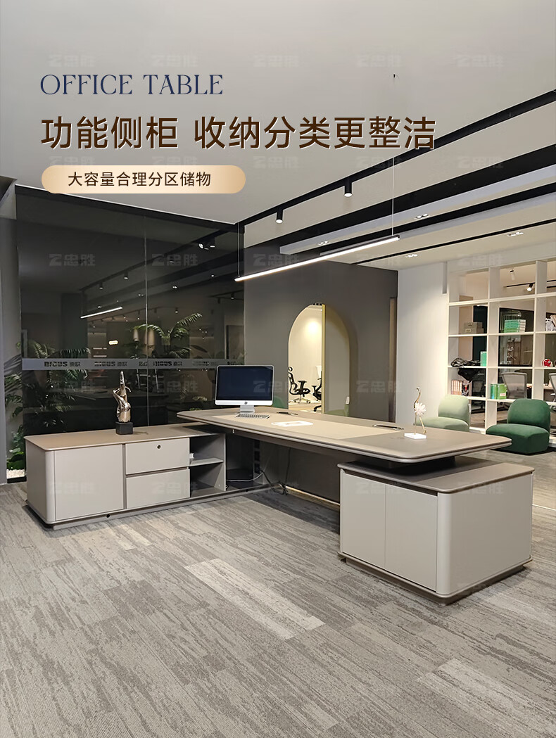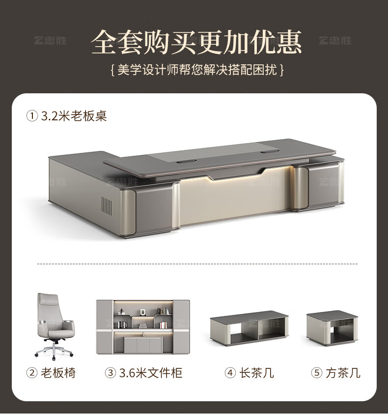 Zhongsheng Office Furniture Desk Boss Desk Modern Simple High-end Chairman and President Desk Executive Desk Office Furniture Matching Tables and Chairs 3.2 Meter Boss Desk Includes Light-Socket Box