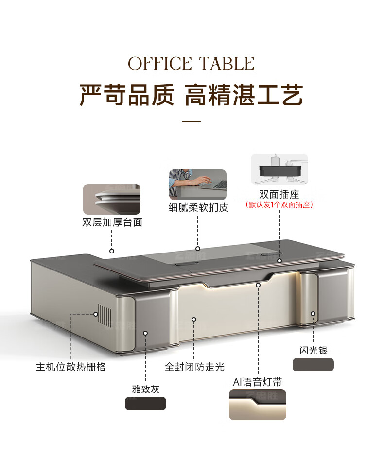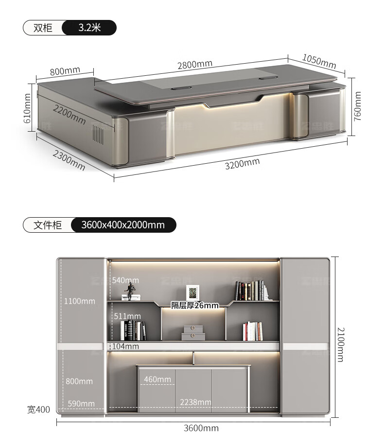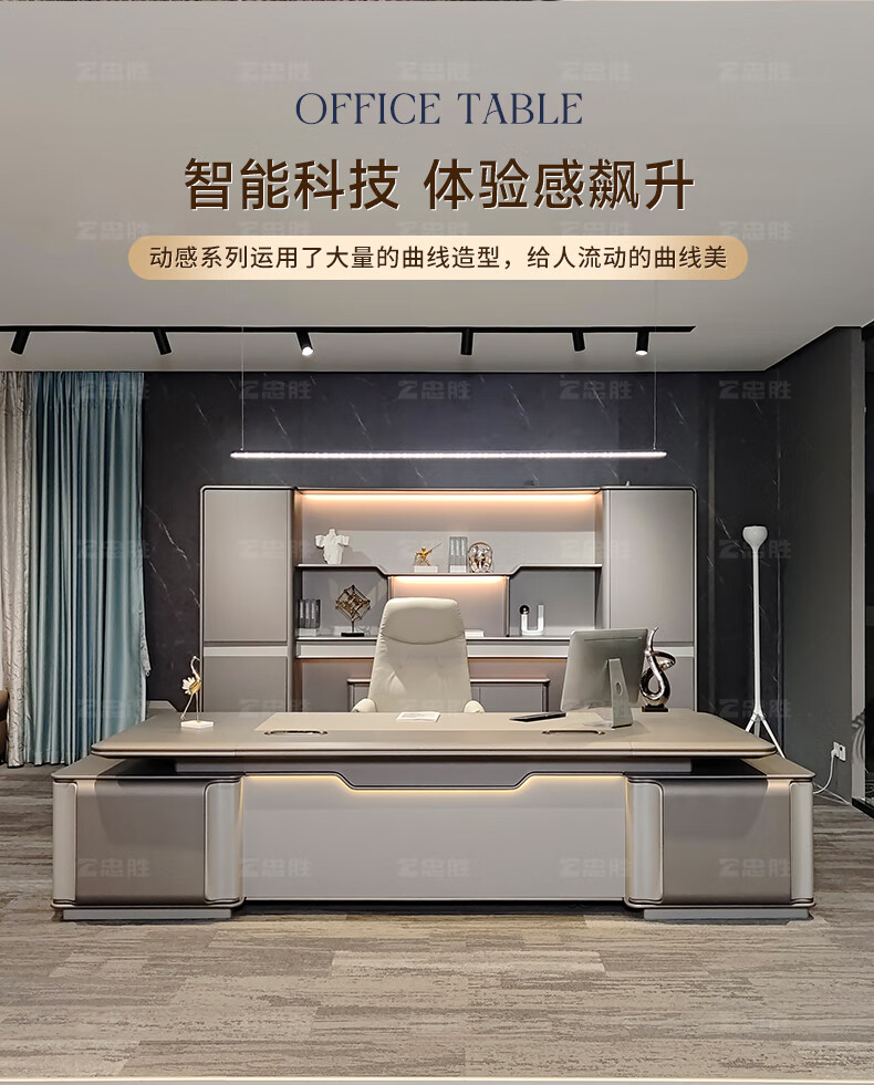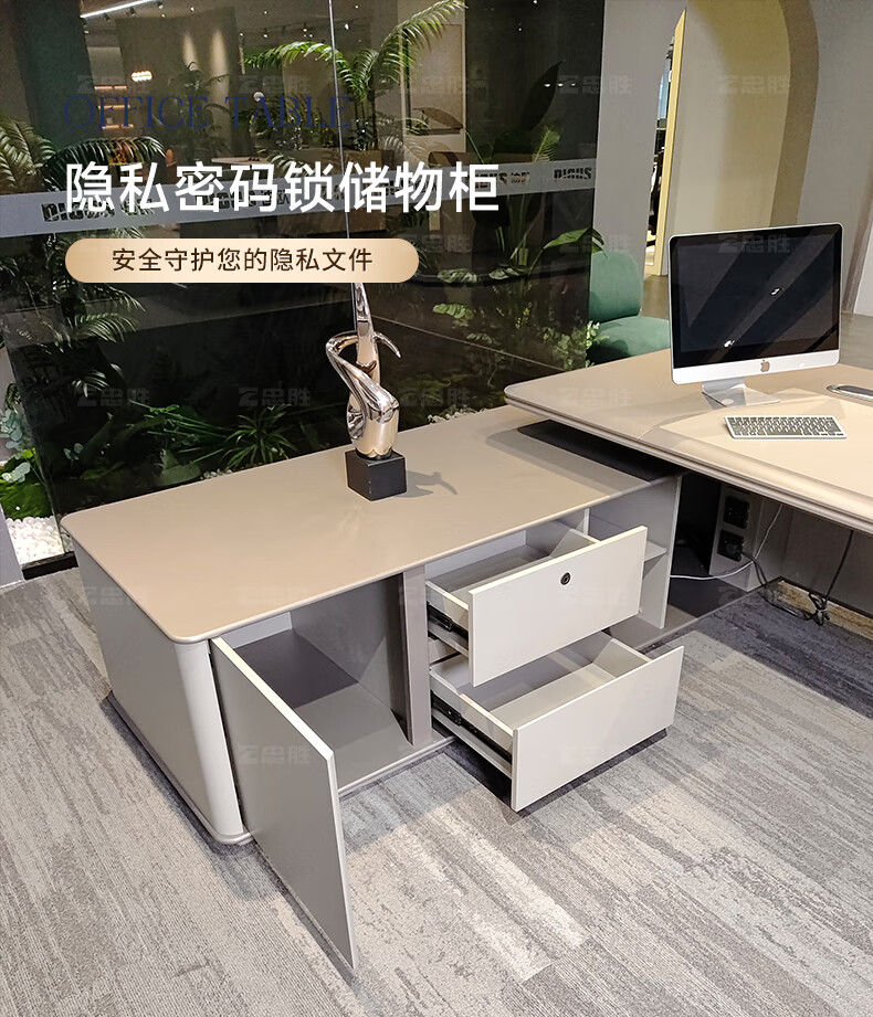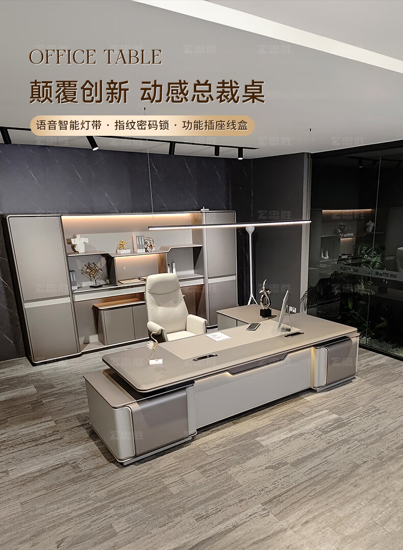 Zhongsheng Office Furniture Desk Boss Desk Modern Simple High-end Chairman and President Desk Executive Desk Office Furniture Matching Tables and Chairs 3.2 Meter Boss Desk Includes Light-Socket Box