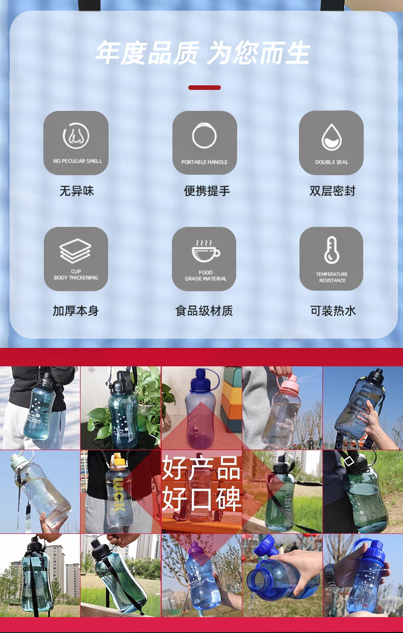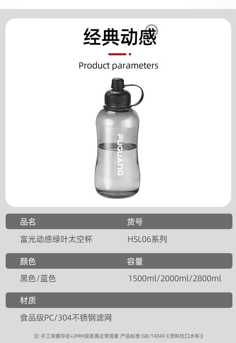 Fuguang Large Capacity Outdoor Water Cup High Temperature Resistant Summer Plastic Sports Bottle Bottle Space Tea Cup Samurai Black Upgraded Filter Model 2L