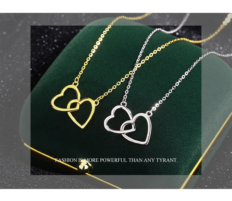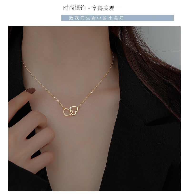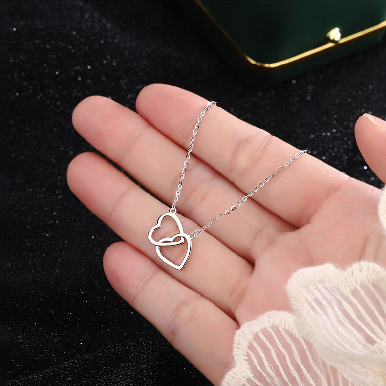 YIZUN. CHOMEL 999 pure silver love double ring necklace for women ins niche heart-to-heart pendant necklace as a Valentine's Day gift for your girlfriend 999 pure silver - love double ring necklace - silver white