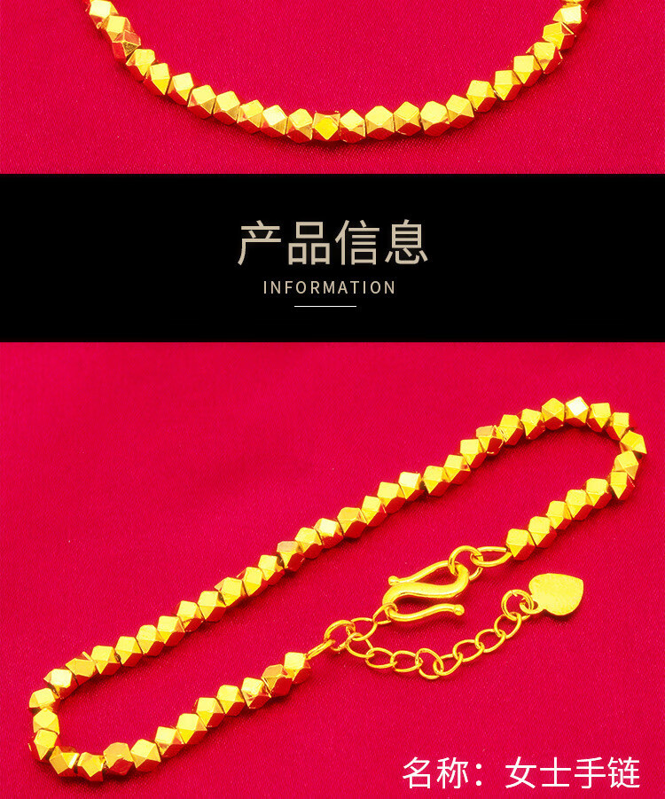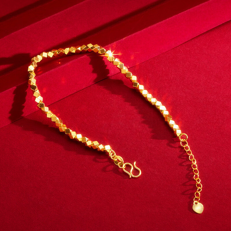 Fat Donglai's same style broken silver bracelet, gold-plated silver, new gold-plated women's bouncy transfer bead bracelet, broken gold bracelet adjustable 16cm