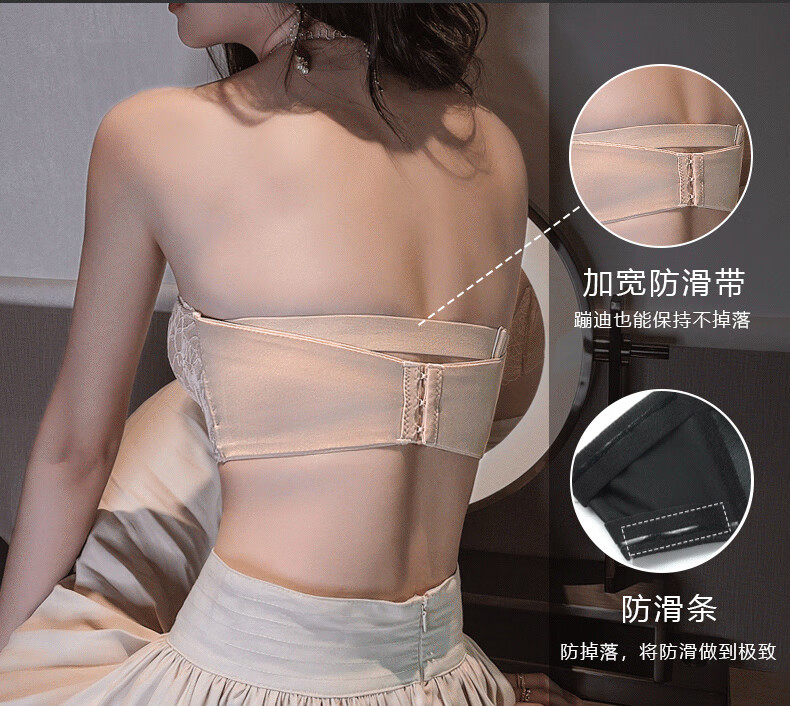 Qingbilin sexy strapless bra, small breast push-up, thin summer beautiful back bra, tube top, no rims, invisible underwear for women, tube top, no rims, black M, recommended 34/75AB