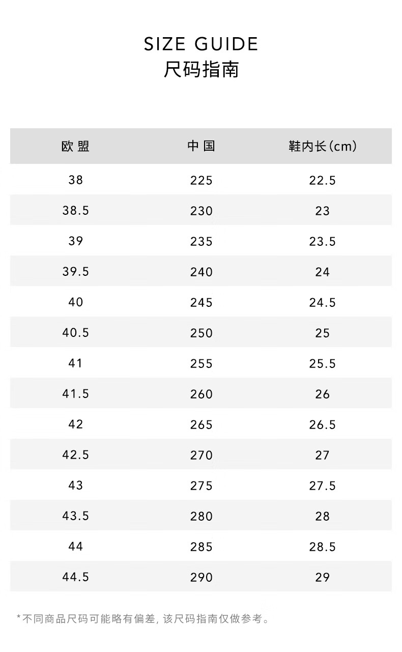 China (cm) 36 - 37 38 - 39 40 - 42 43 - 44 45 - 47