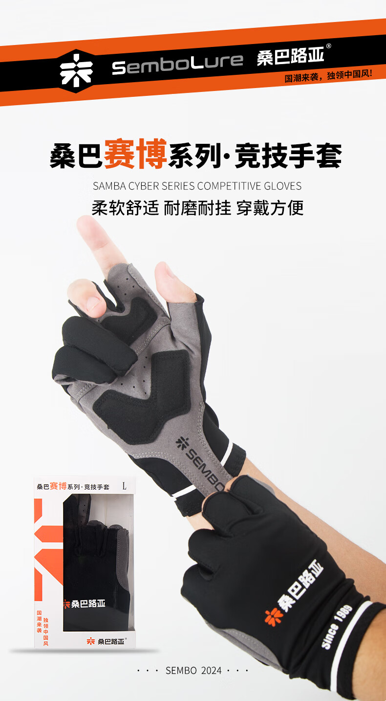 Sambalua gloves with exposed three fingers for fishing, wear-resistant, puncture-resistant, slip-resistant and cutting competitive gloves, summer breathable and sun-proof, genuine Samba competitive gloves, size L