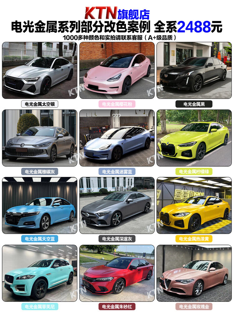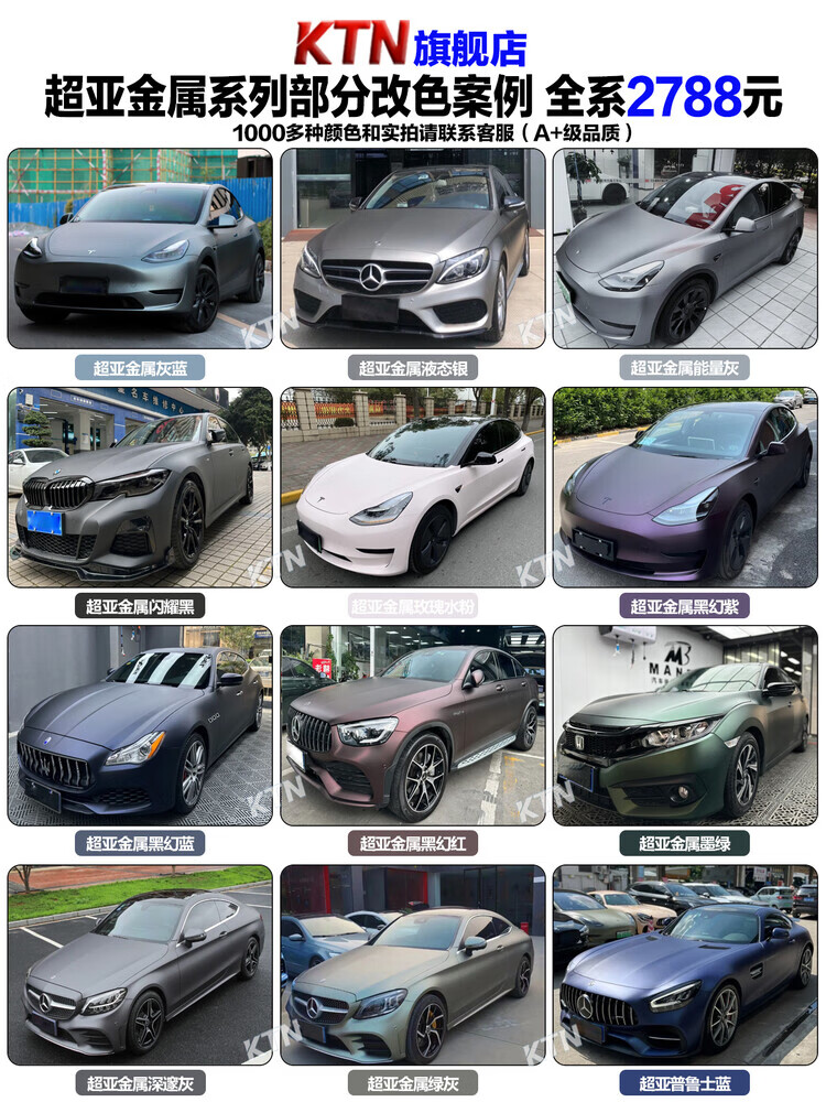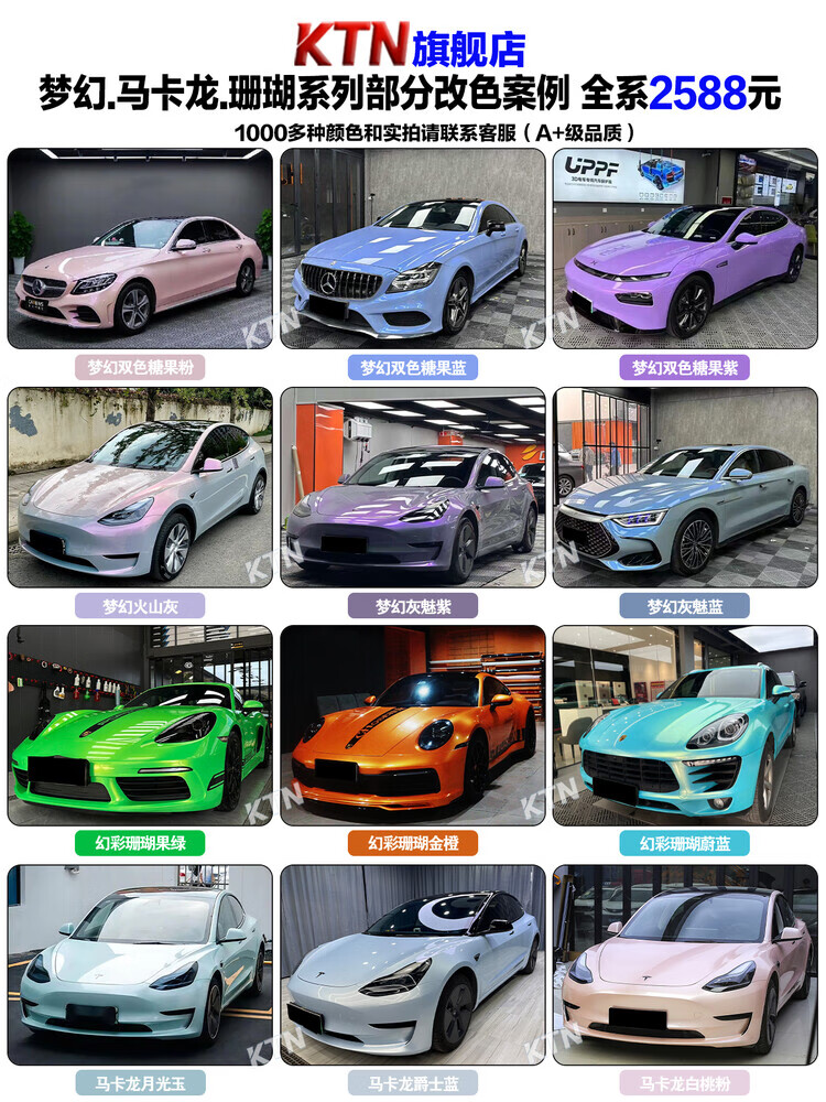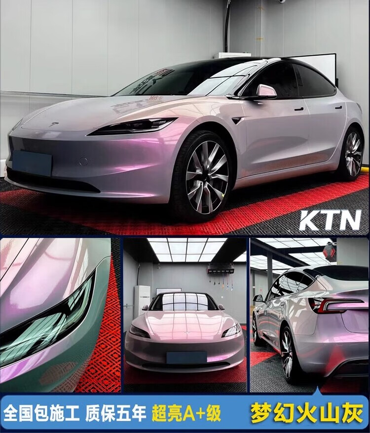KTN full vehicle sticker PET material car color changing film Tesla model3y complete vehicle body film car cover dream volcanic ash sub-gray piano black warrior white nationwide package construction upgrade and installation of suspended roof/black top +200