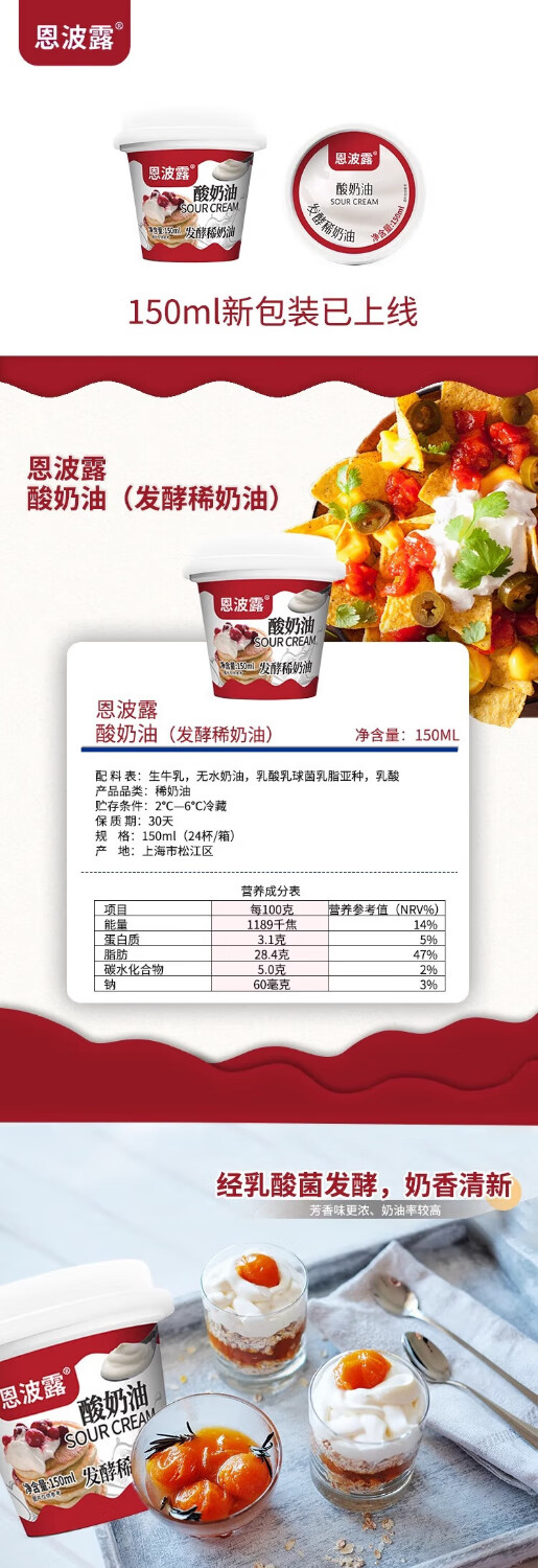 Empolu Sour Cream 150g Box of Fermented Cream Ready-to-Eat Salad Breakfast Spread Cream Baking Accessories President Sour Cream 150g