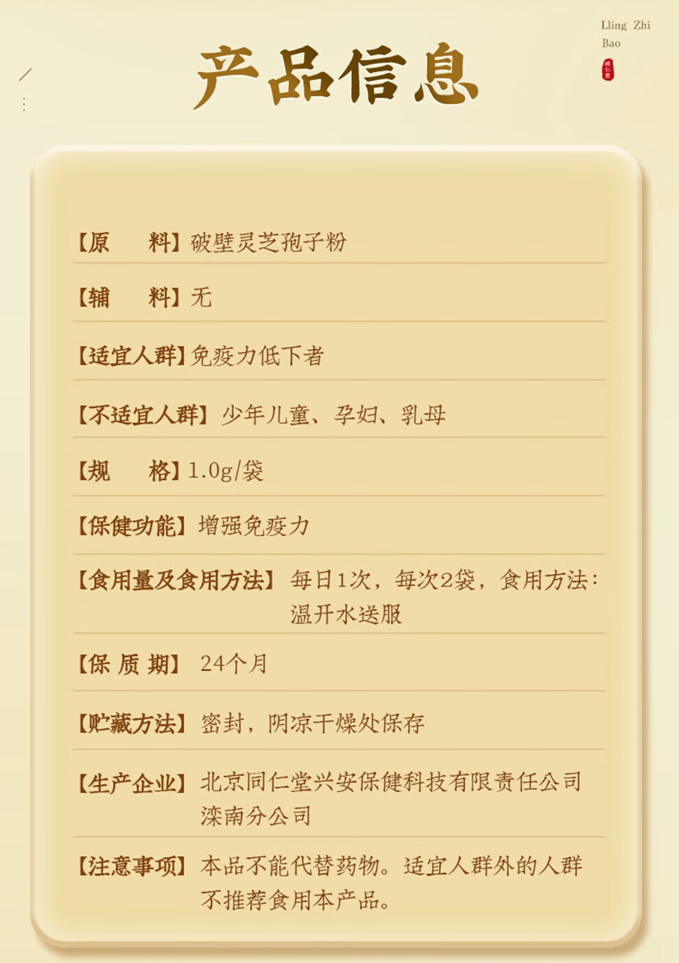Beijing Tongrentang Spore Powder Enhances Immunity Broken Ganoderma Spore Powder Postoperative Nutrition Gift Box for Adults Middle-aged and Elderly Broken Ganoderma Spore Powder 1 Box