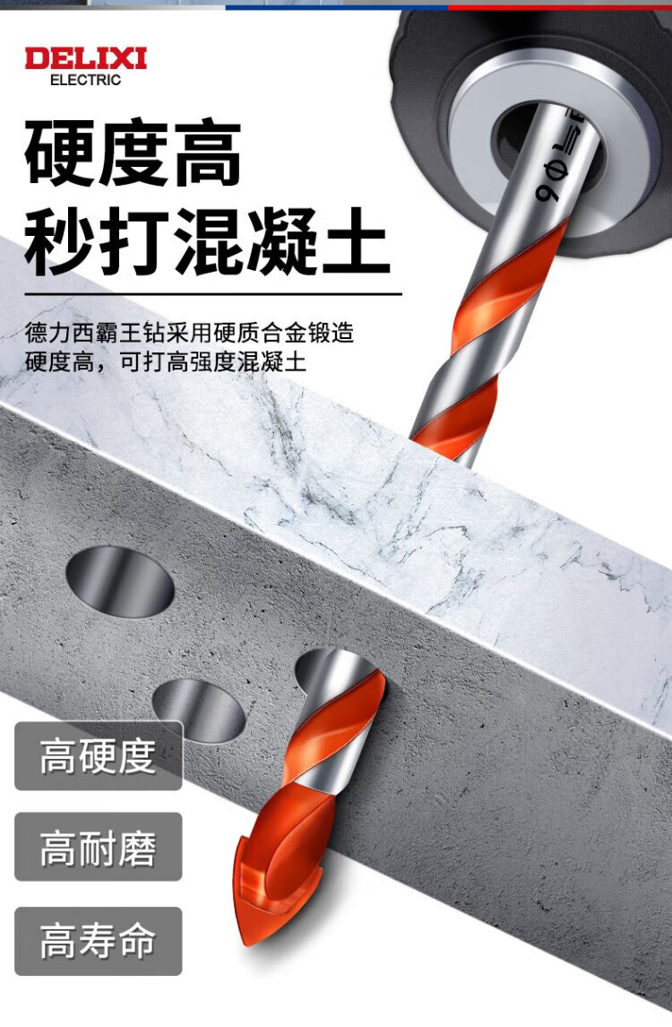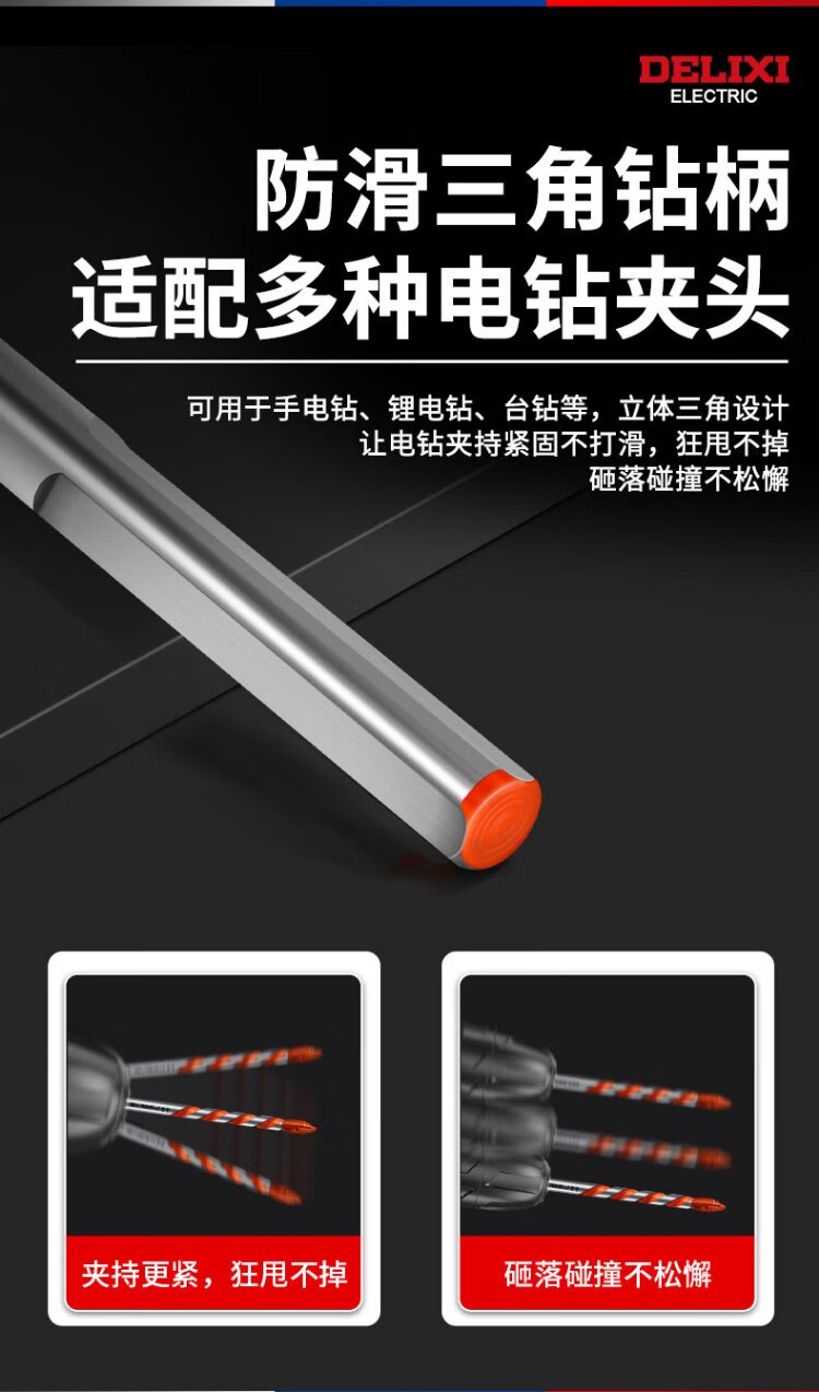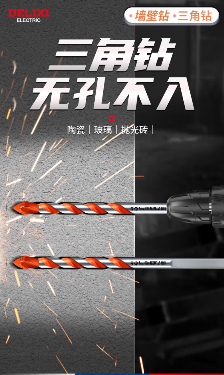 Delixi Electric Overlord Drill Alloy Triangular Drill Bit Ceramic Tile Cement Metal Iron Plate Multifunctional Triangular Handle Electric Drill Bit Overlord Drill Ceramic Tile/Stainless Steel/Wall Tile 6mm One Pack