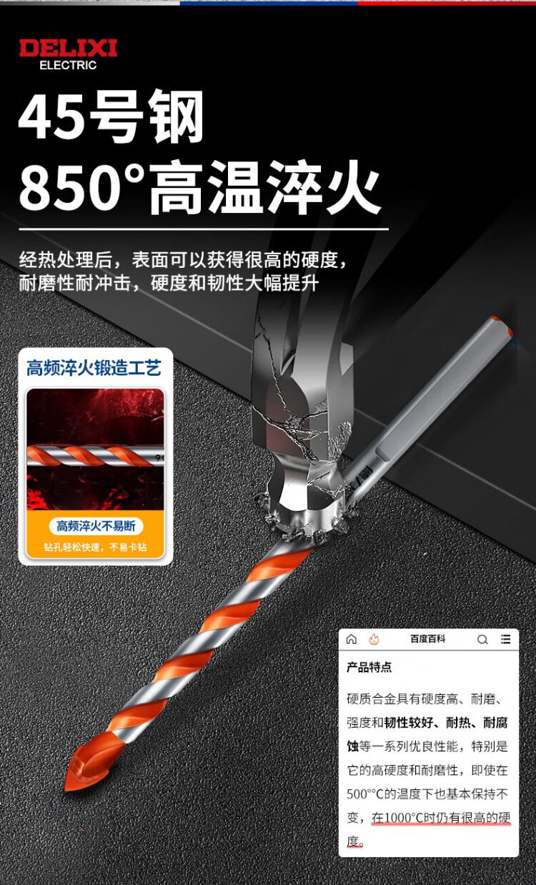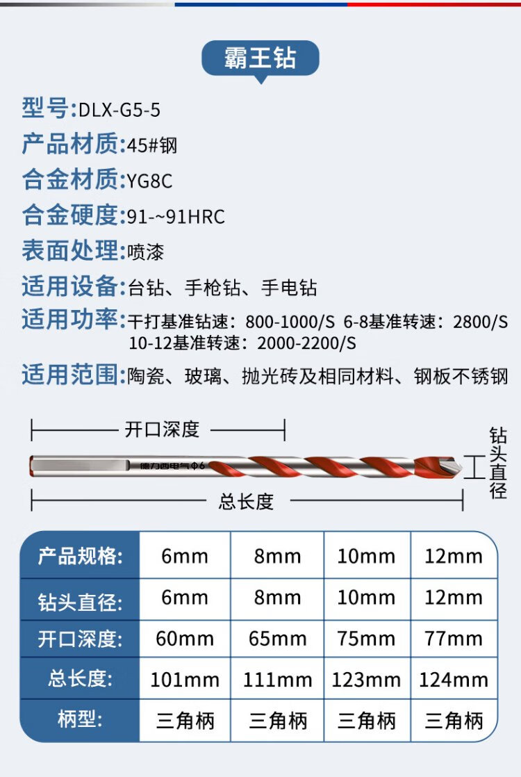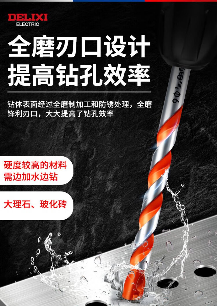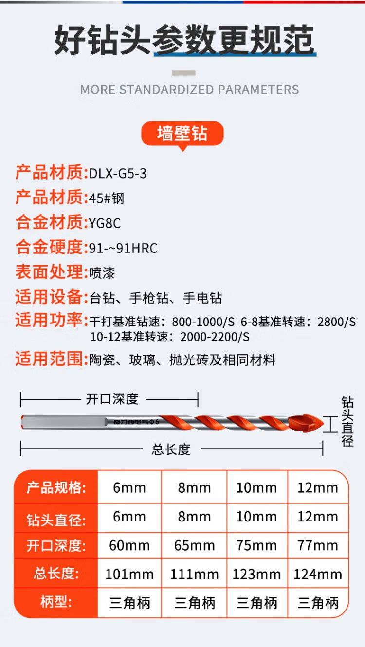 Delixi Electric Overlord Drill Alloy Triangular Drill Bit Ceramic Tile Cement Metal Iron Plate Multifunctional Triangular Handle Electric Drill Bit Overlord Drill Ceramic Tile/Stainless Steel/Wall Tile 6mm One Pack