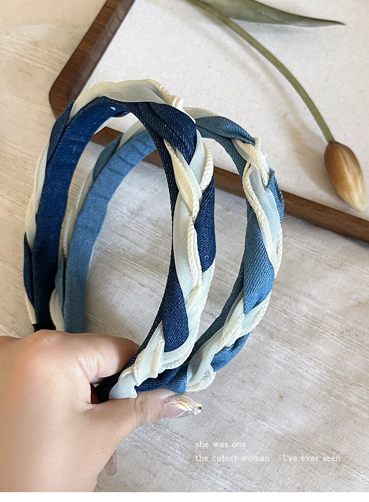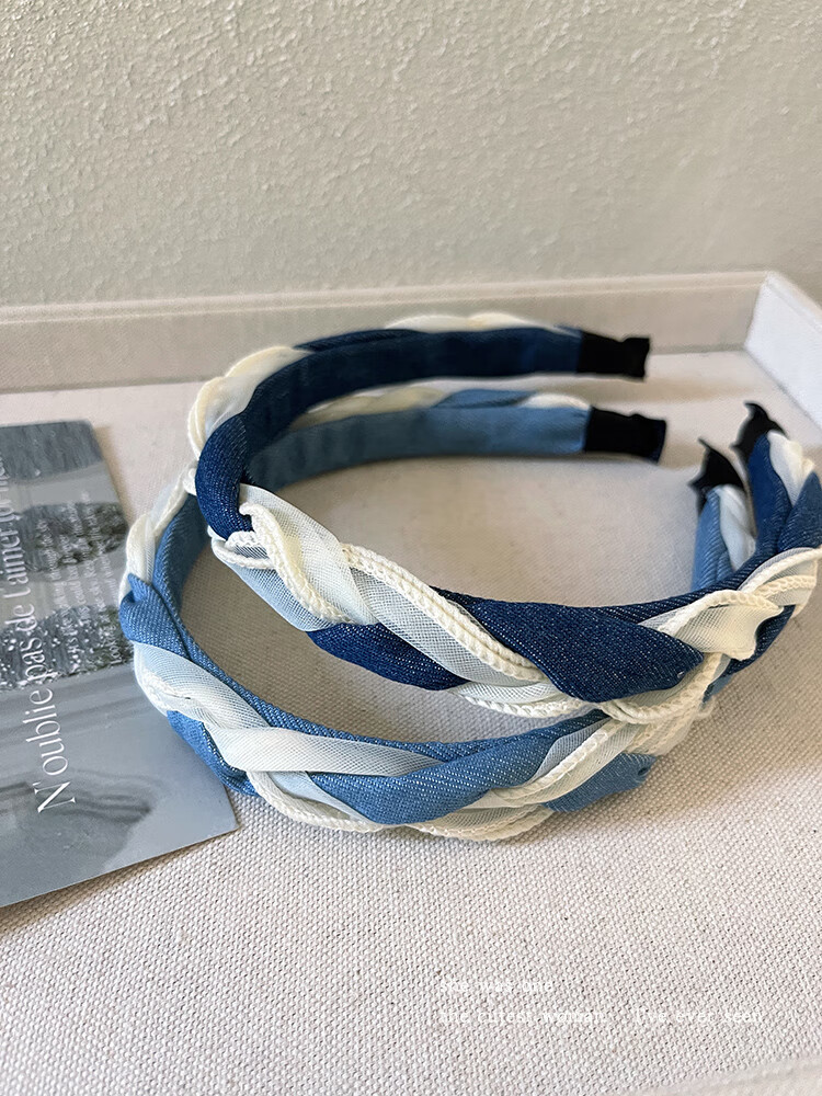 Morning Star High Headband Women's 2025 New Denim Twist Headband Autumn and Winter White Hair Card Network Infrared Headband Headband Light Blue Braided Headband