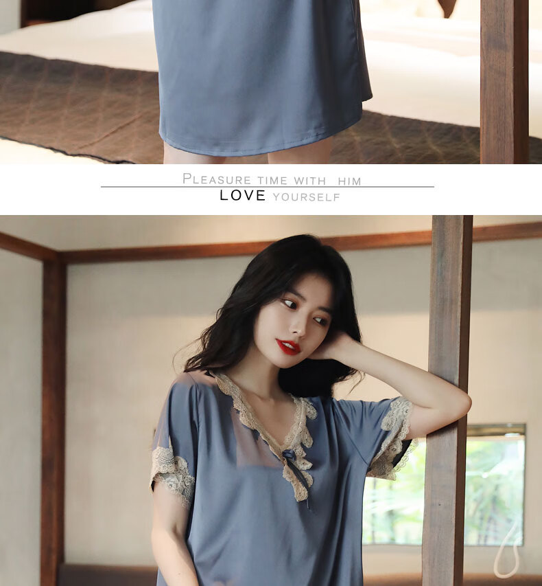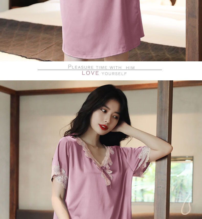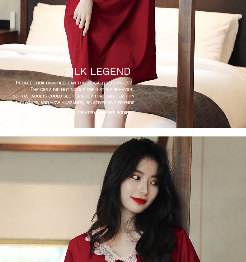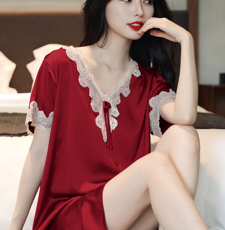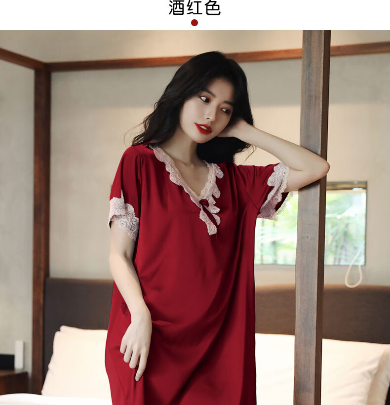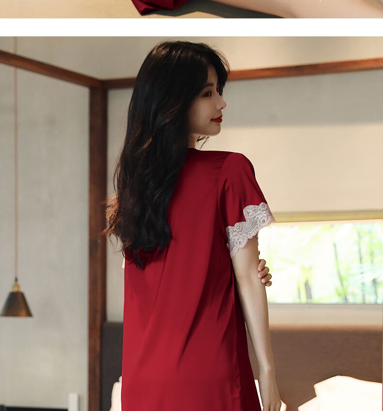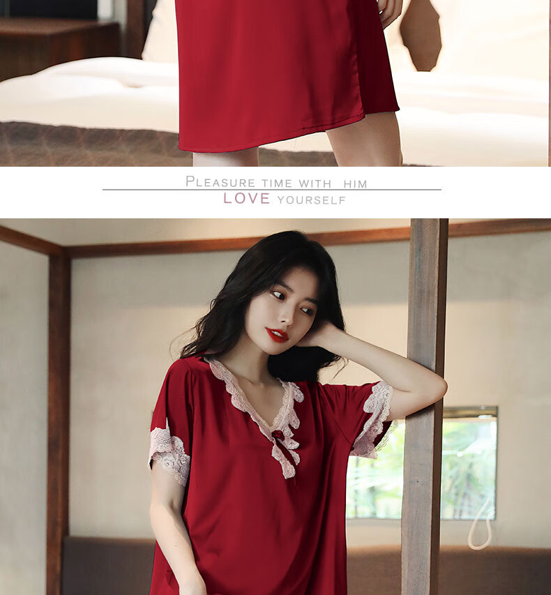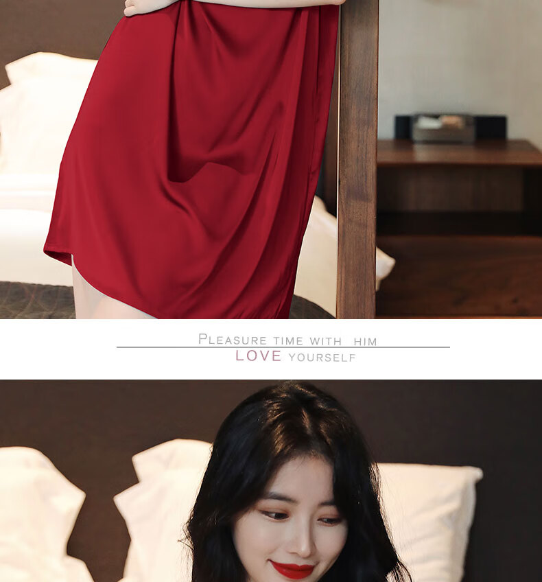 Adore Autumn and Summer Women's Sexy Pajamas Underwear Nightgown Lace Thin Home Clothes Shirt Skirt Boyfriend Style 2171 Skirt - Rouge Red One Size