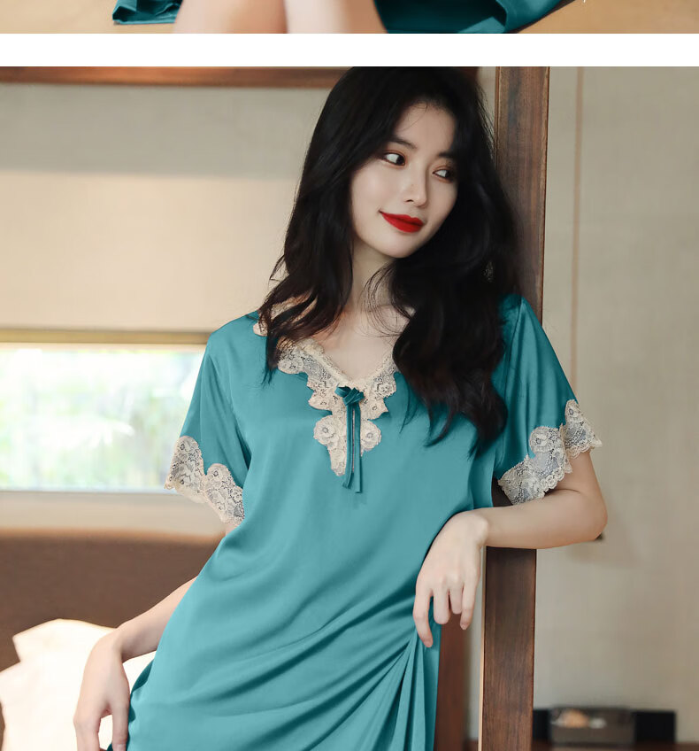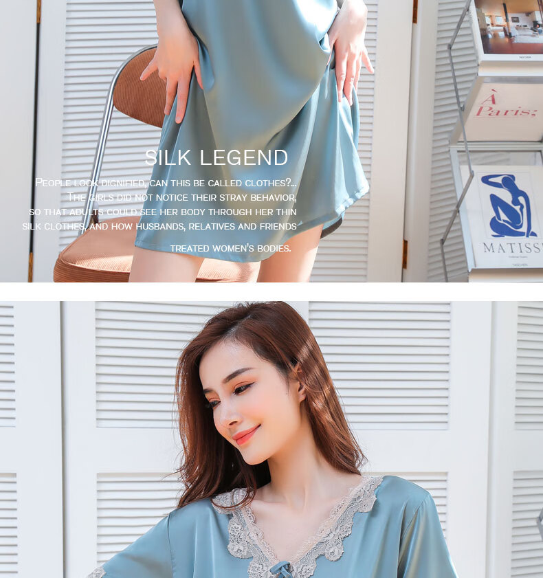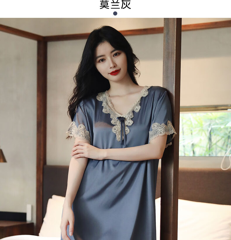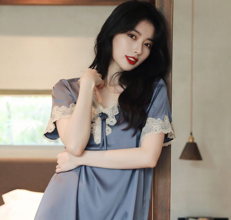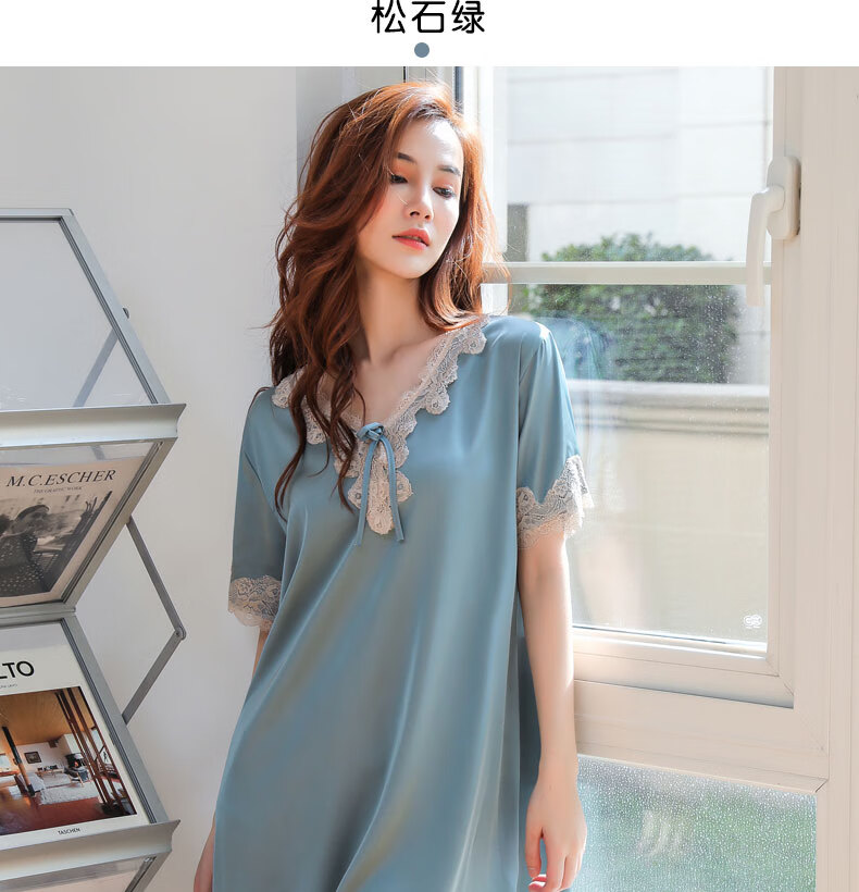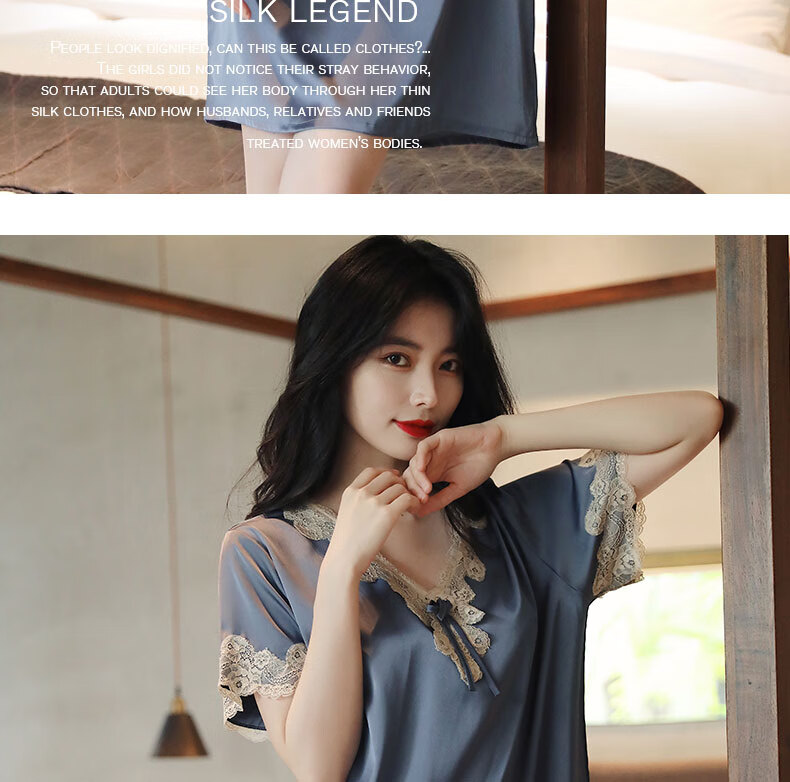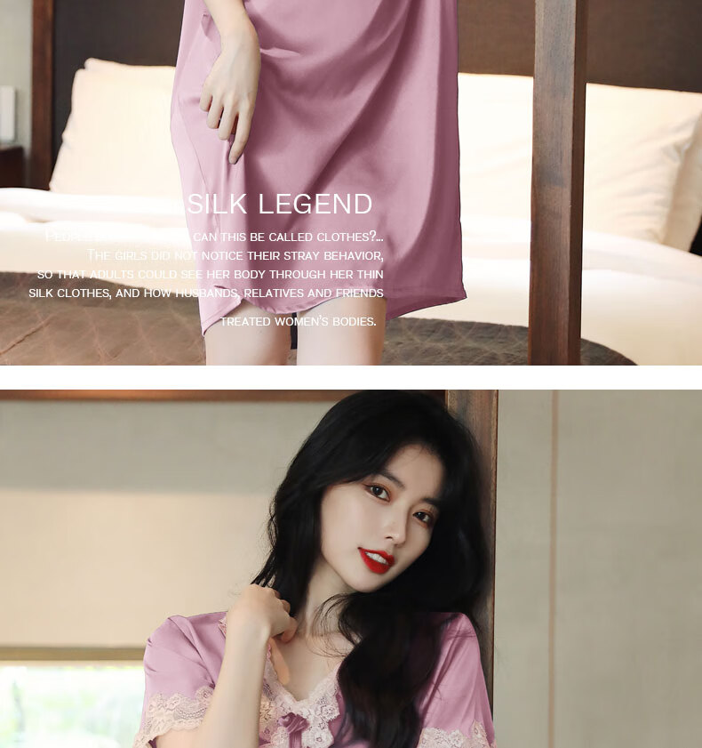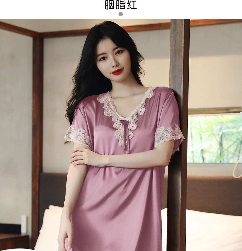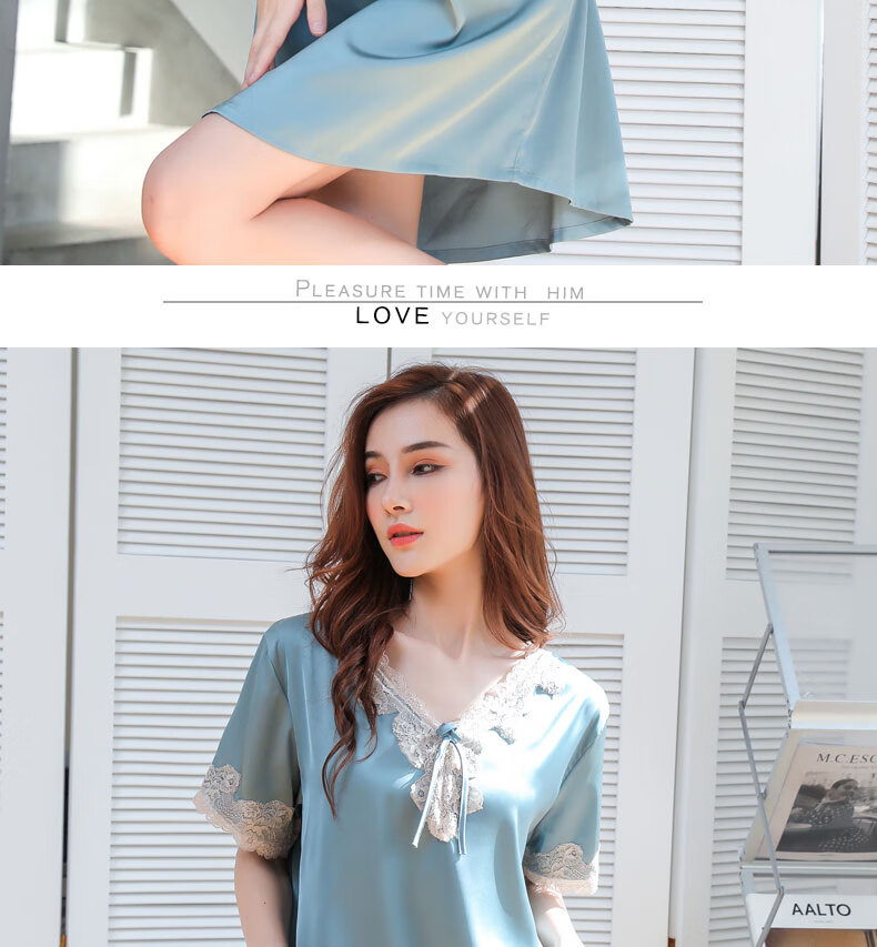 Adore Autumn and Summer Women's Sexy Pajamas Underwear Nightgown Lace Thin Home Clothes Shirt Skirt Boyfriend Style 2171 Skirt - Rouge Red One Size