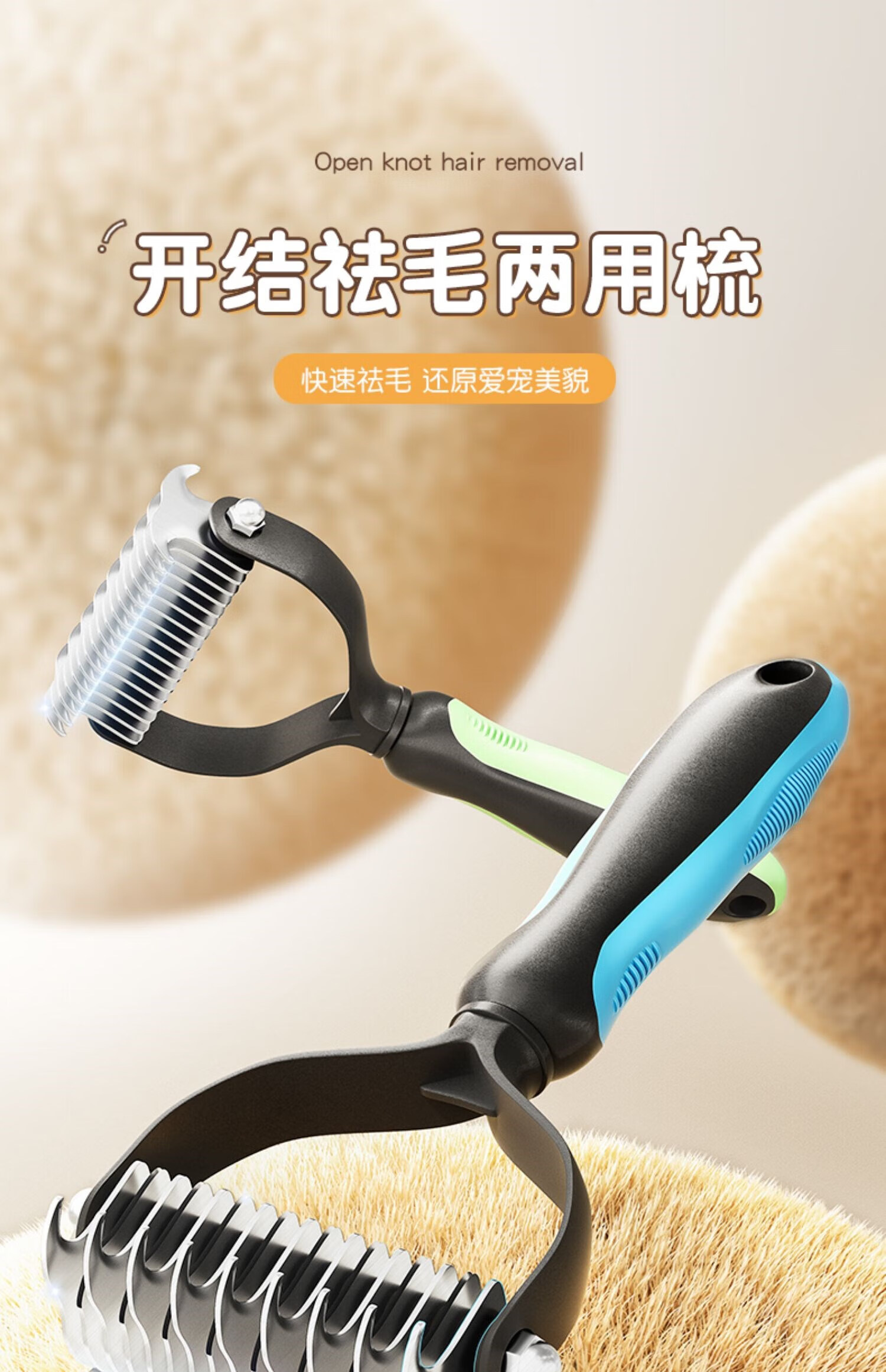 Pet Companion Dog Hair Comb Golden Retriever Large Dog Special Combing Brush Cat Cleaning Artifact Dog Hair Shaving Flagship Model - Blue Extra Large 22 Teeth (Knot Opening and Removal)