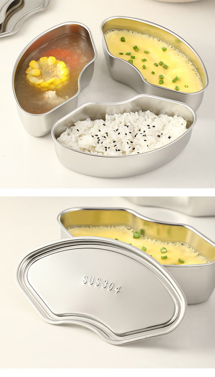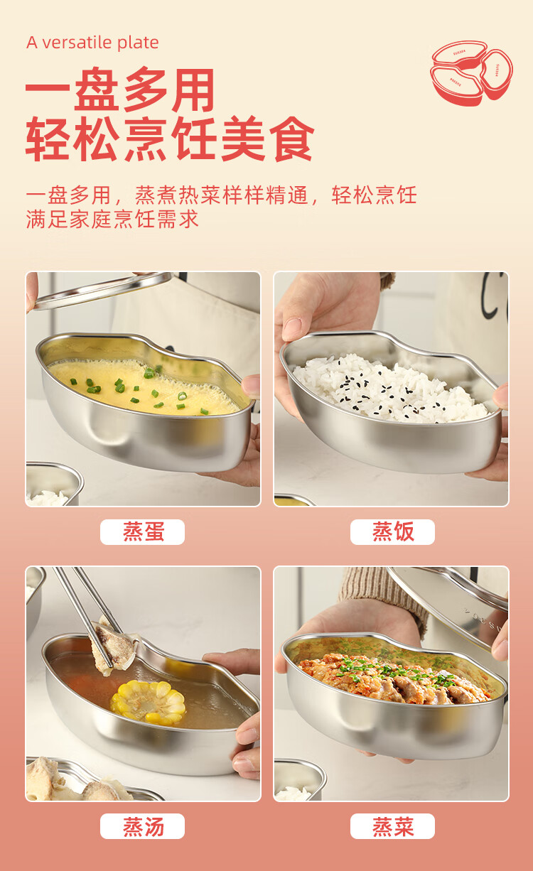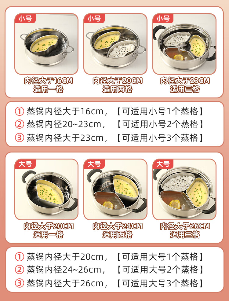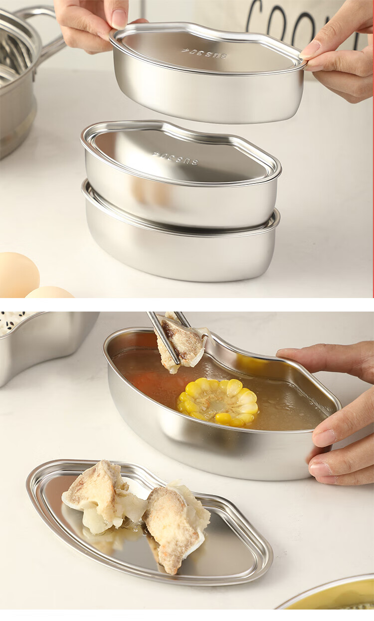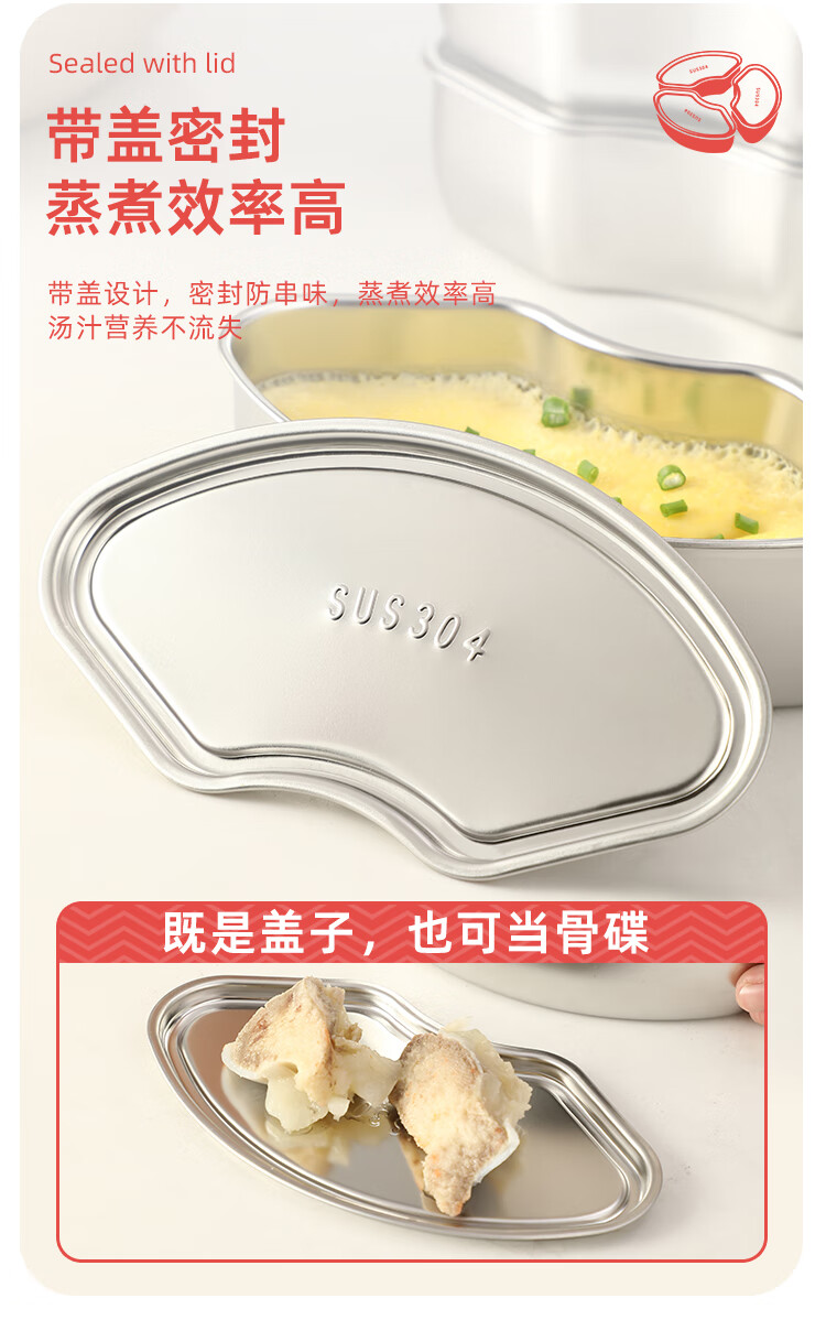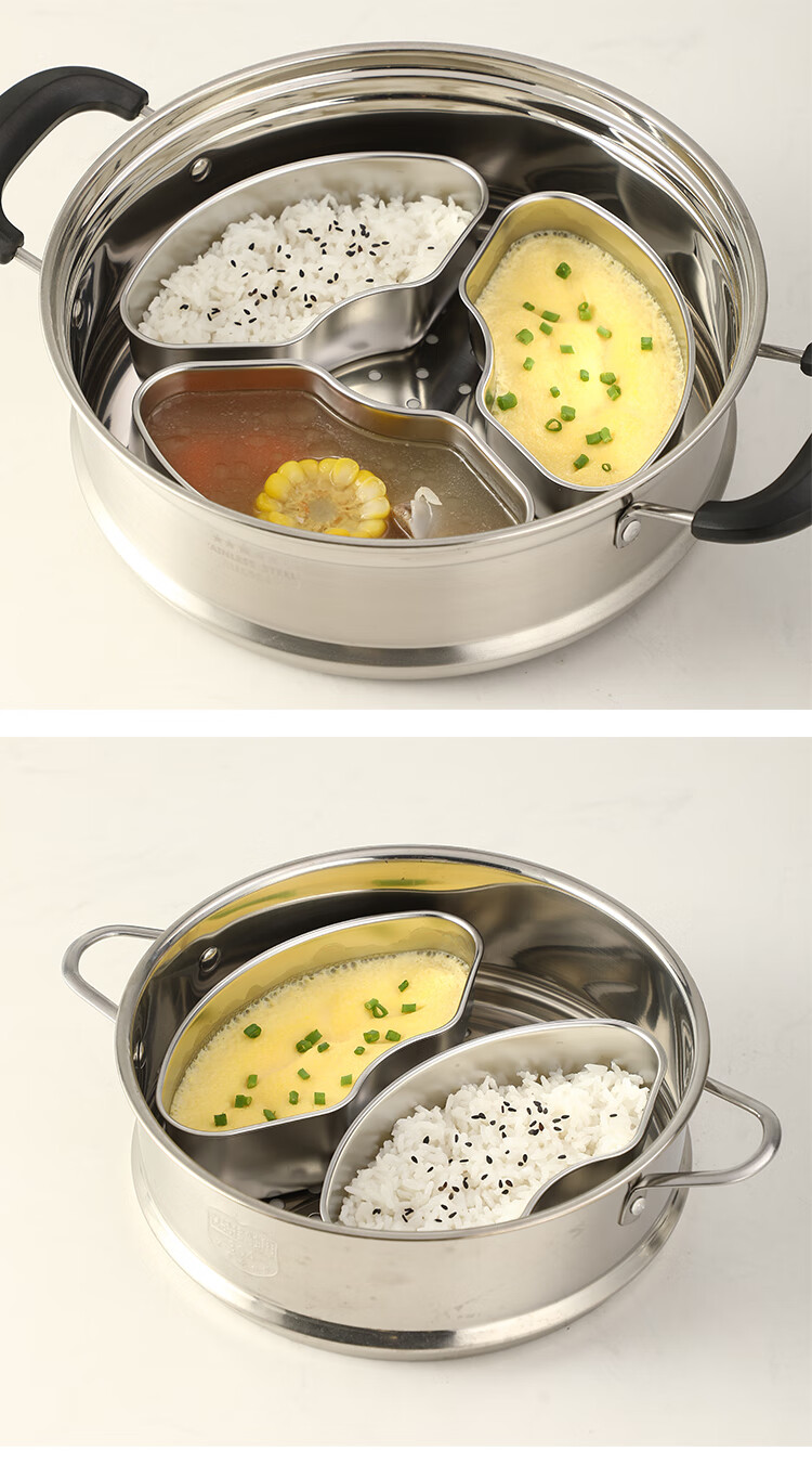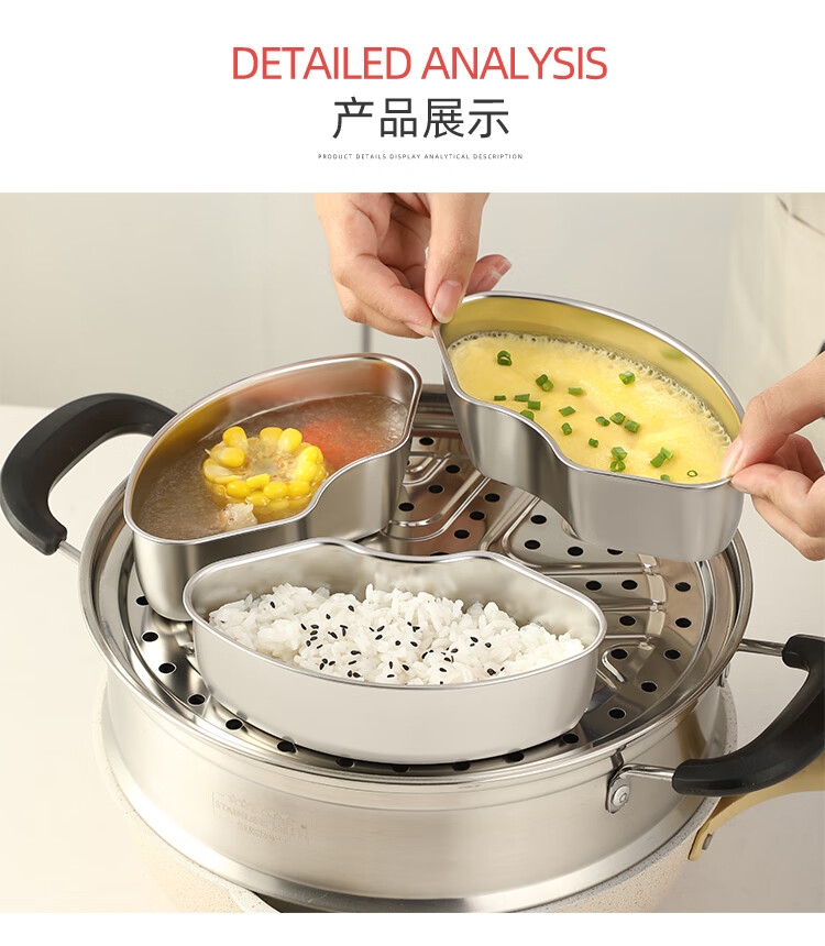 Leishton 304 stainless steel fan-shaped steaming box, rice cooker, steaming bowl, small cooking pot, divided steaming plate, household steamer drawer, steaming vegetable artifact sus304 3 pieces/large size with lid/come with anti-scalding clip