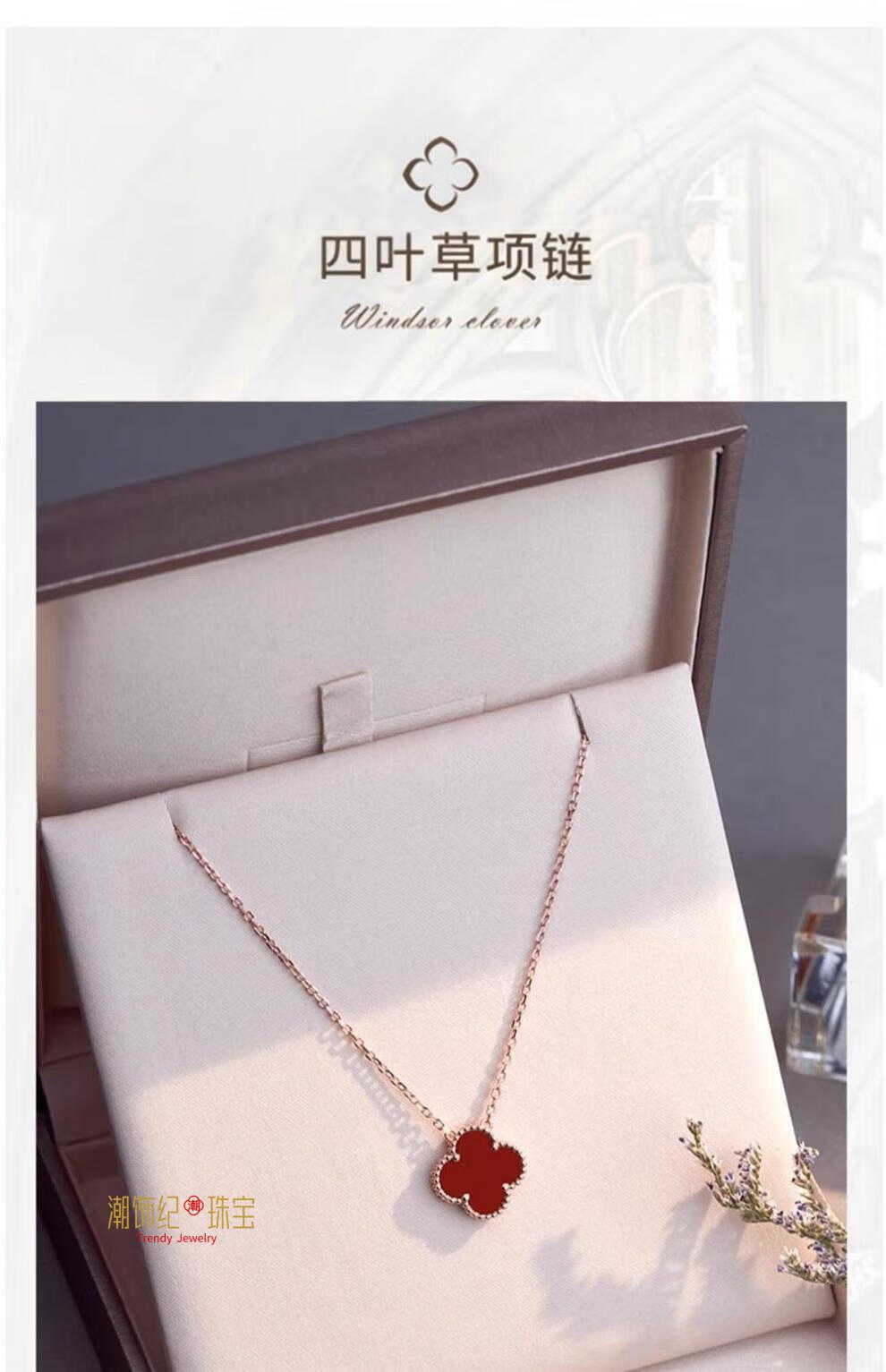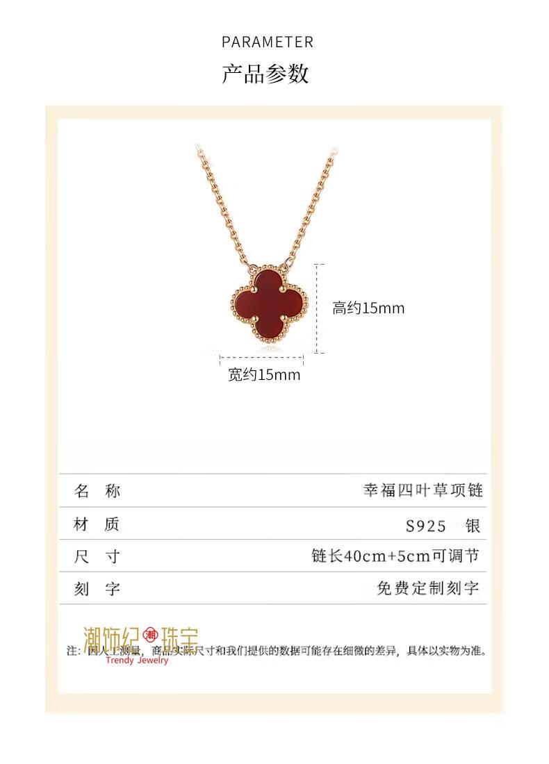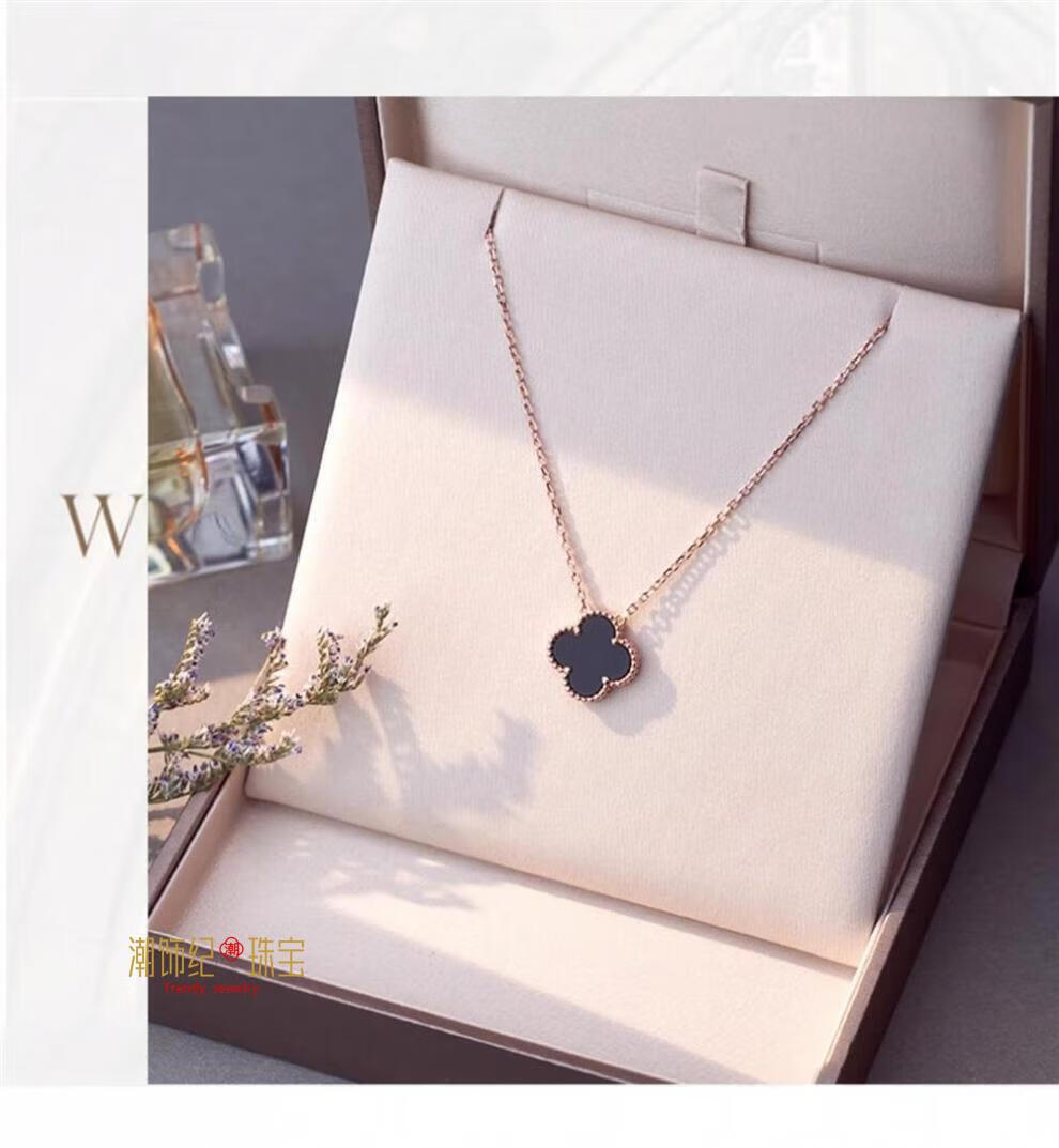DL 1998 Fat Donglai same style silver plated 18k gold necklace official silver four-leaf clover women's plated exquisite versatile design clavicle chain 520 four-leaf clover necklace extended version rose gold black agate