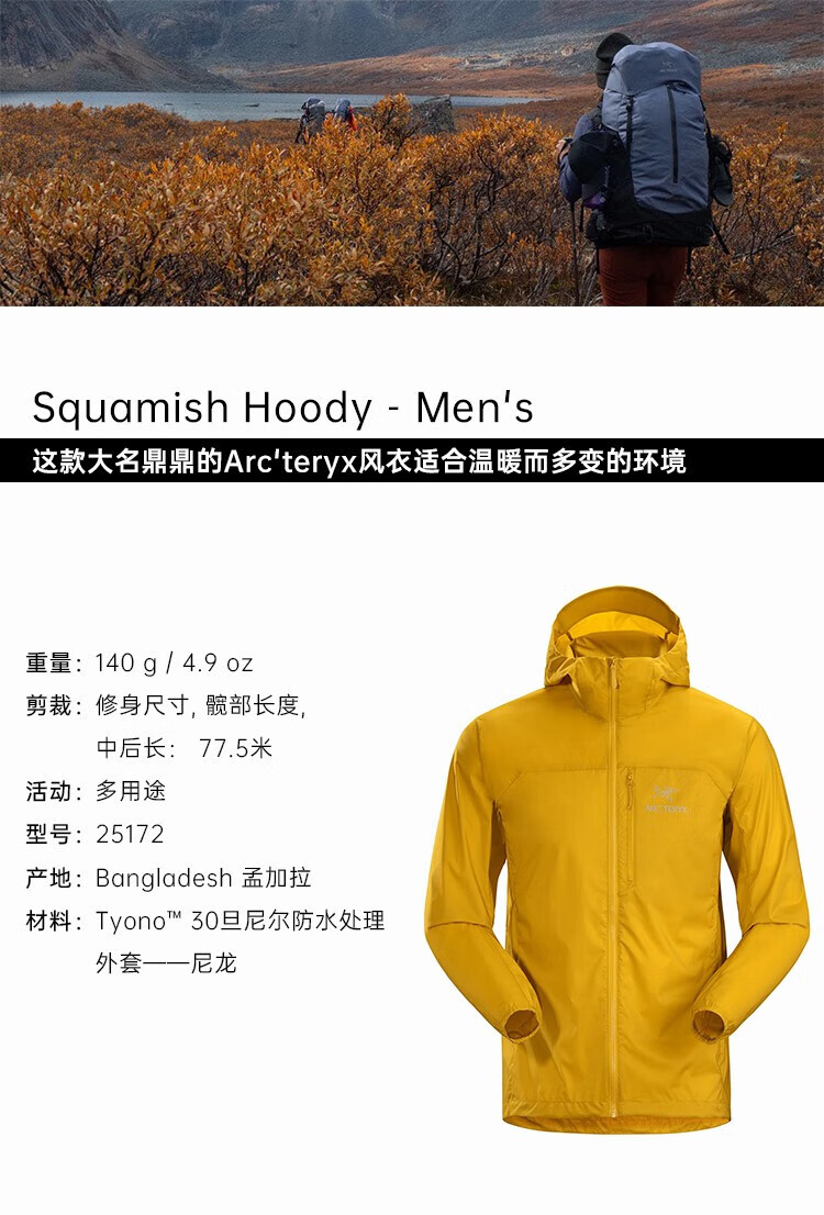 Arc'teryx (ARC TERYX) men's outdoor skin coat, windbreaker, hoodie, shell jacket, sunshade fishing clothing, sun protection clothing, Squa-mish-25172-Black S (recommended 60-70kg)