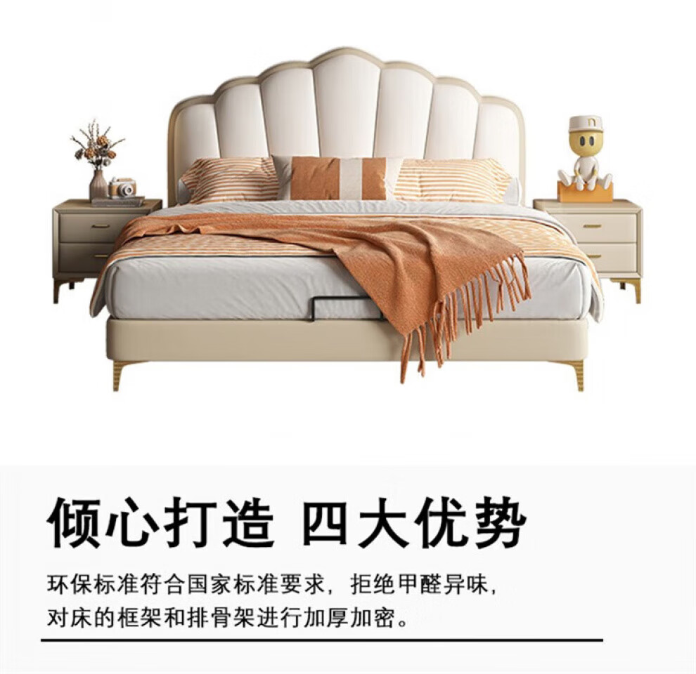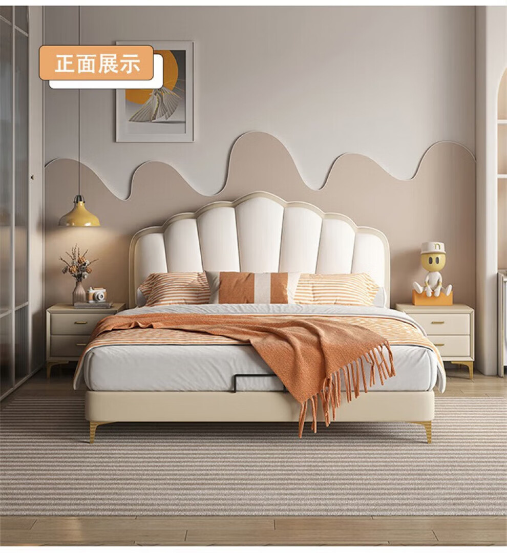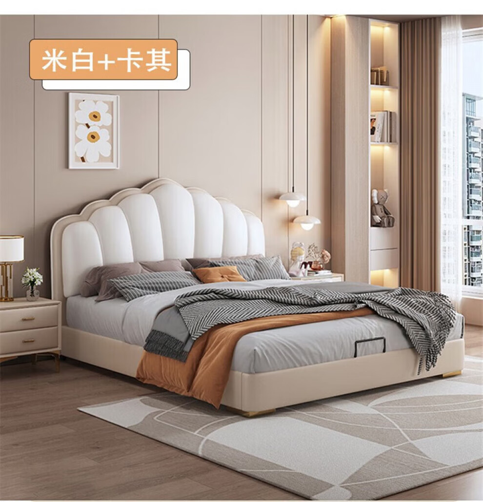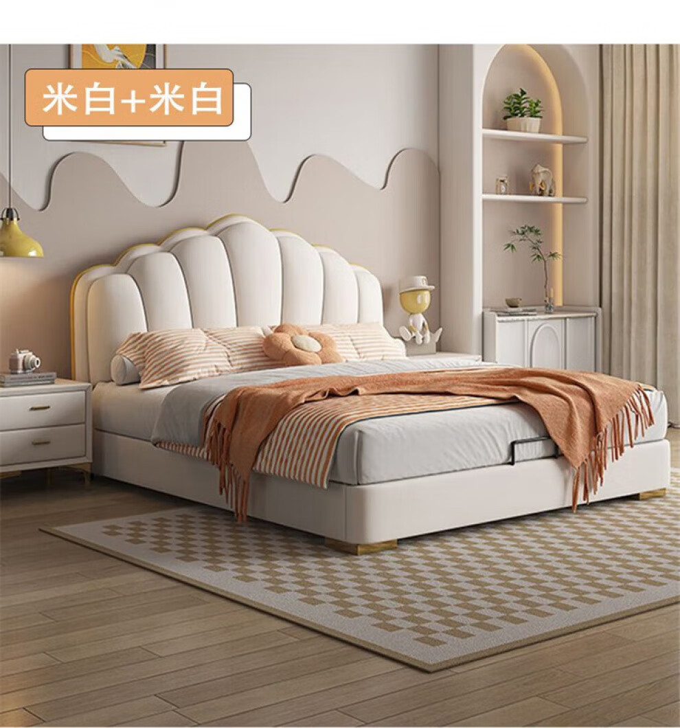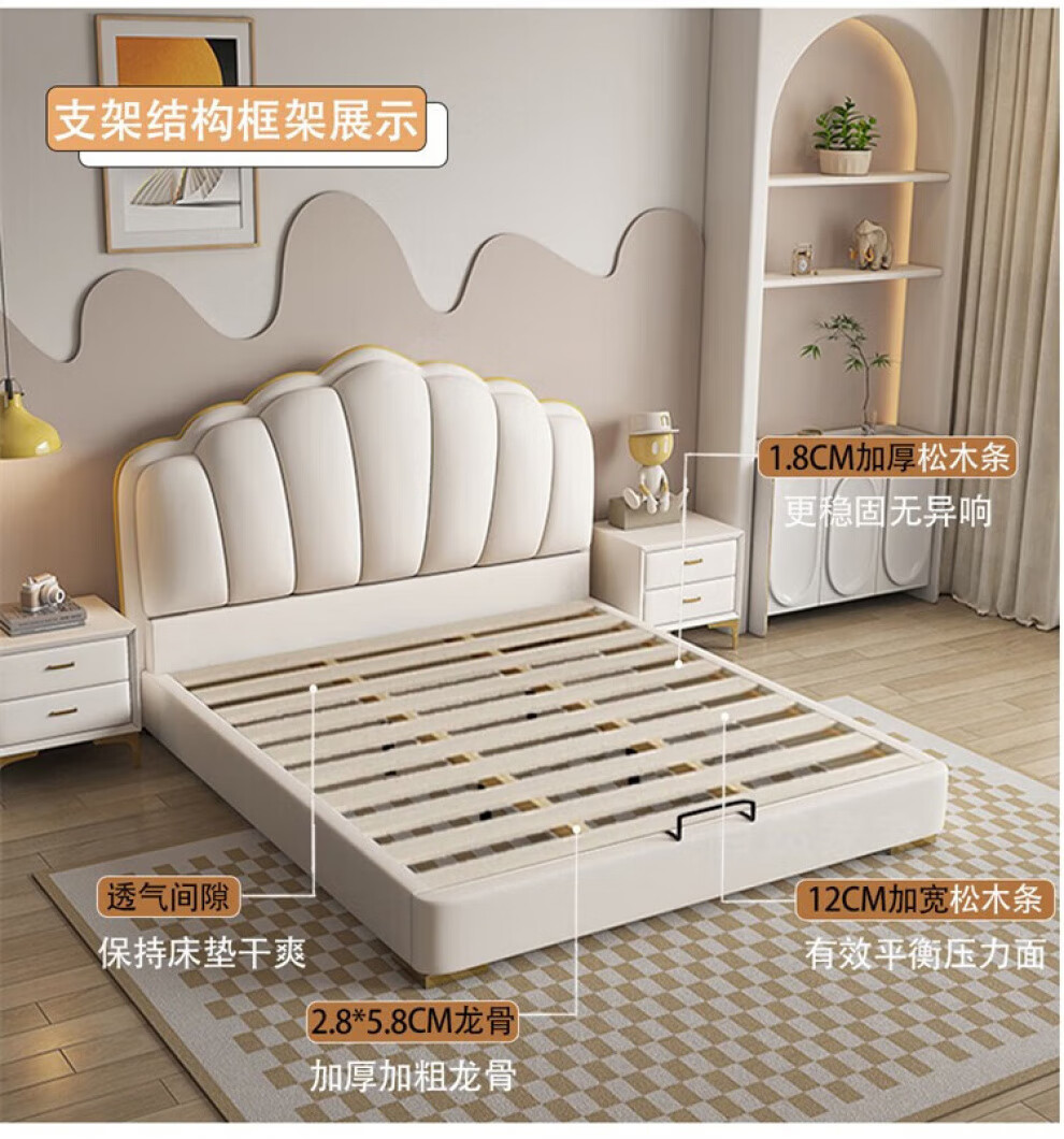 Wufan modern soft-packed shell bed cream style master bedroom double bed 1.8m soft-packed storage bed small and medium-sized apartment full-edge bed + skin-friendly independent bag spring mattress + 1 cabinet 1.8*2m frame bed 15cm silent bed board