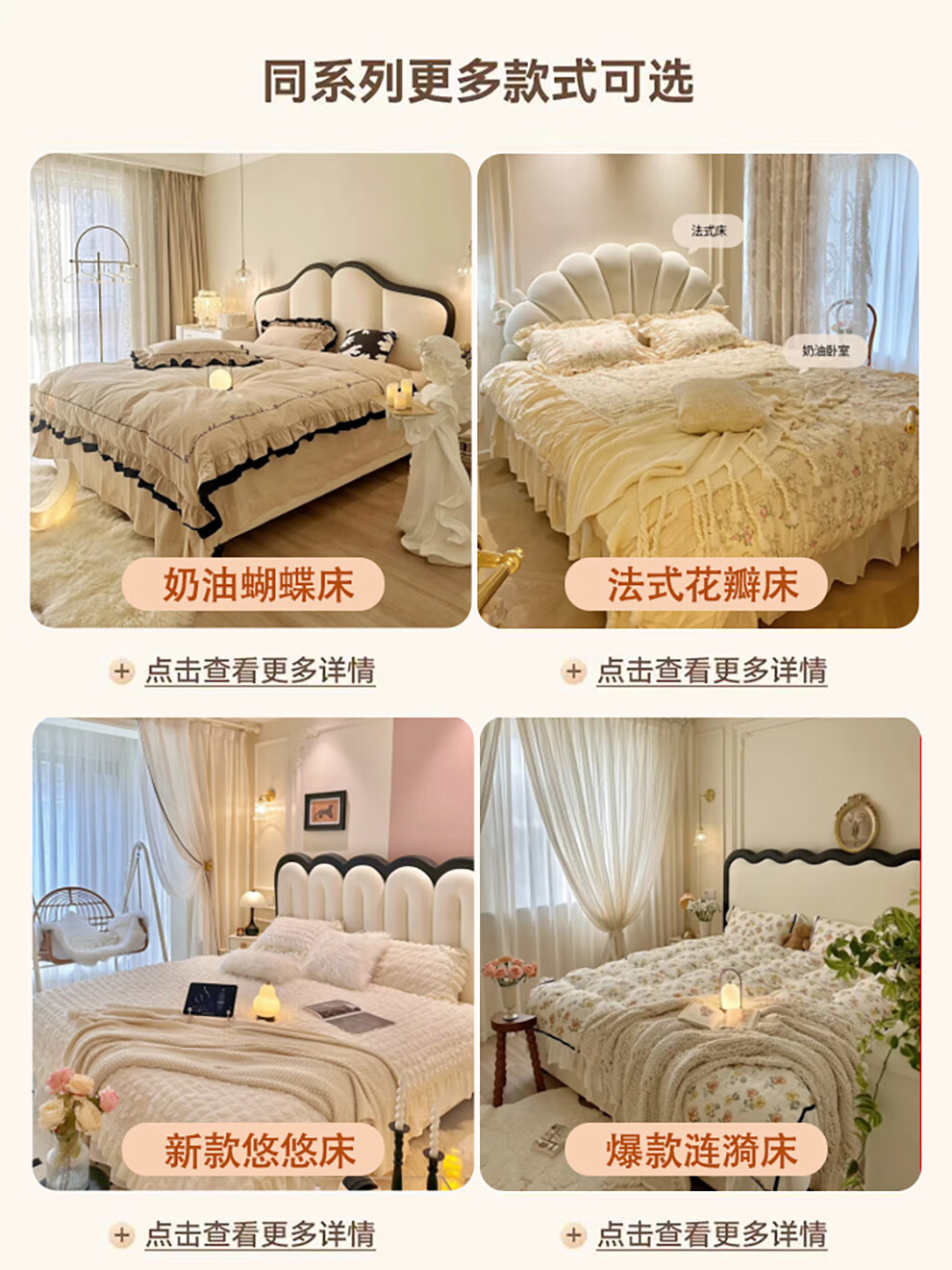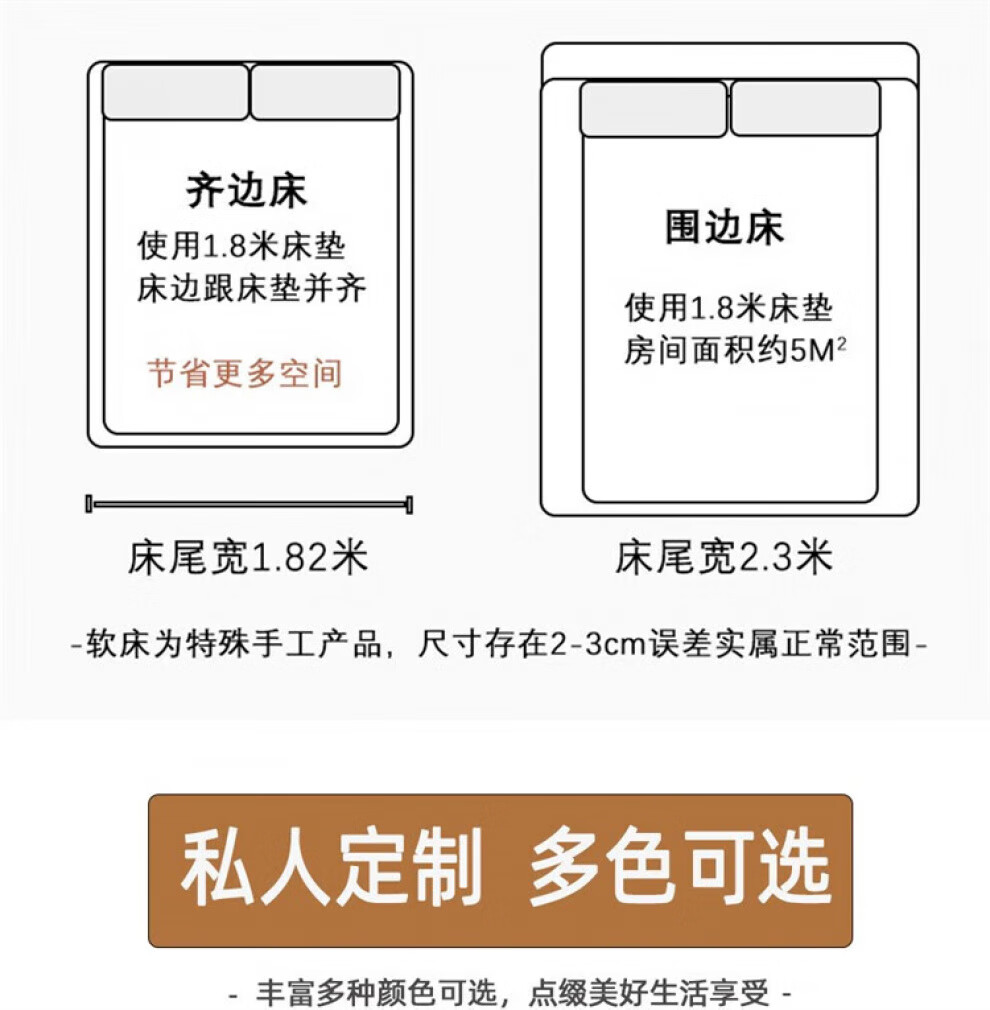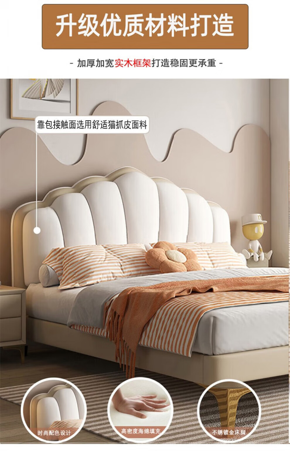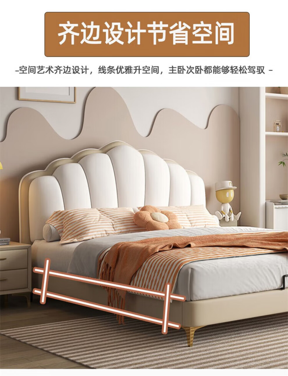 Wufan modern soft-packed shell bed cream style master bedroom double bed 1.8m soft-packed storage bed small and medium-sized apartment full-edge bed + skin-friendly independent bag spring mattress + 1 cabinet 1.8*2m frame bed 15cm silent bed board