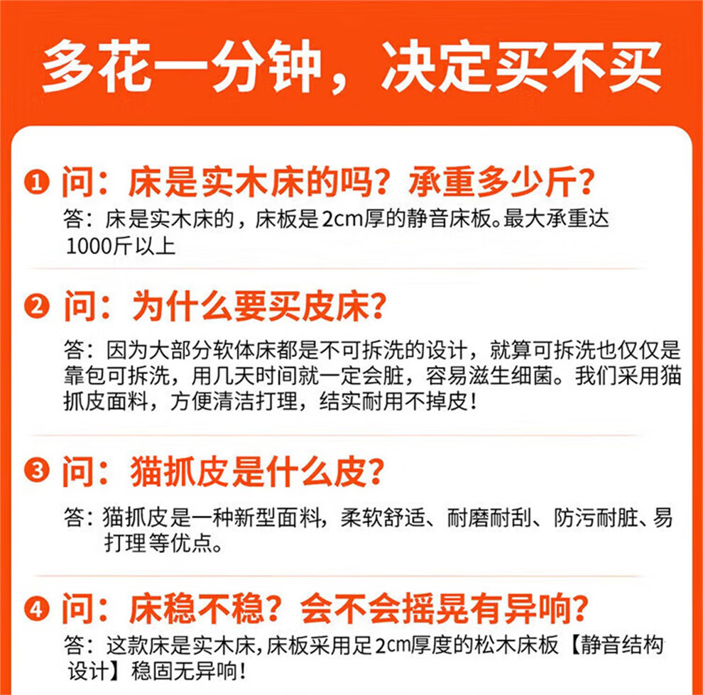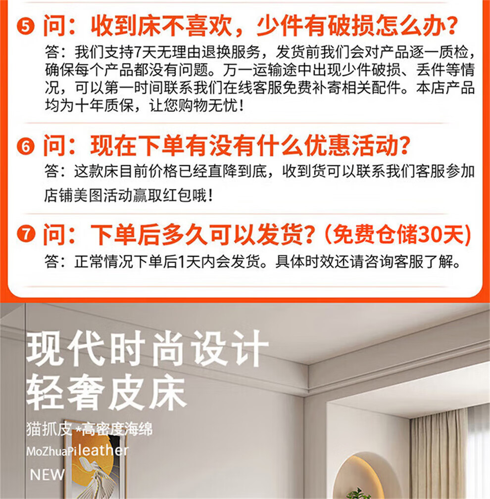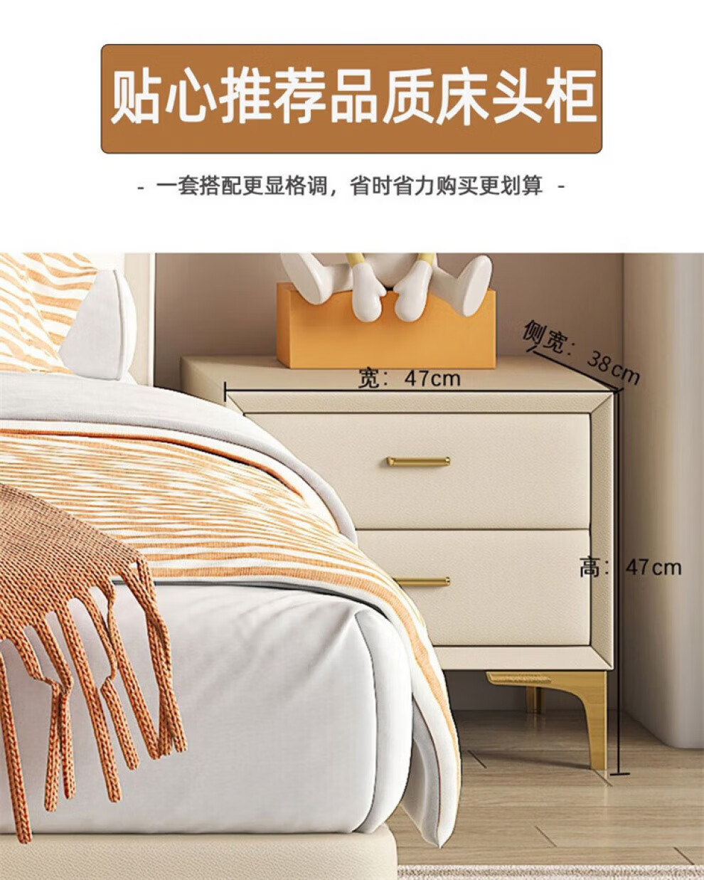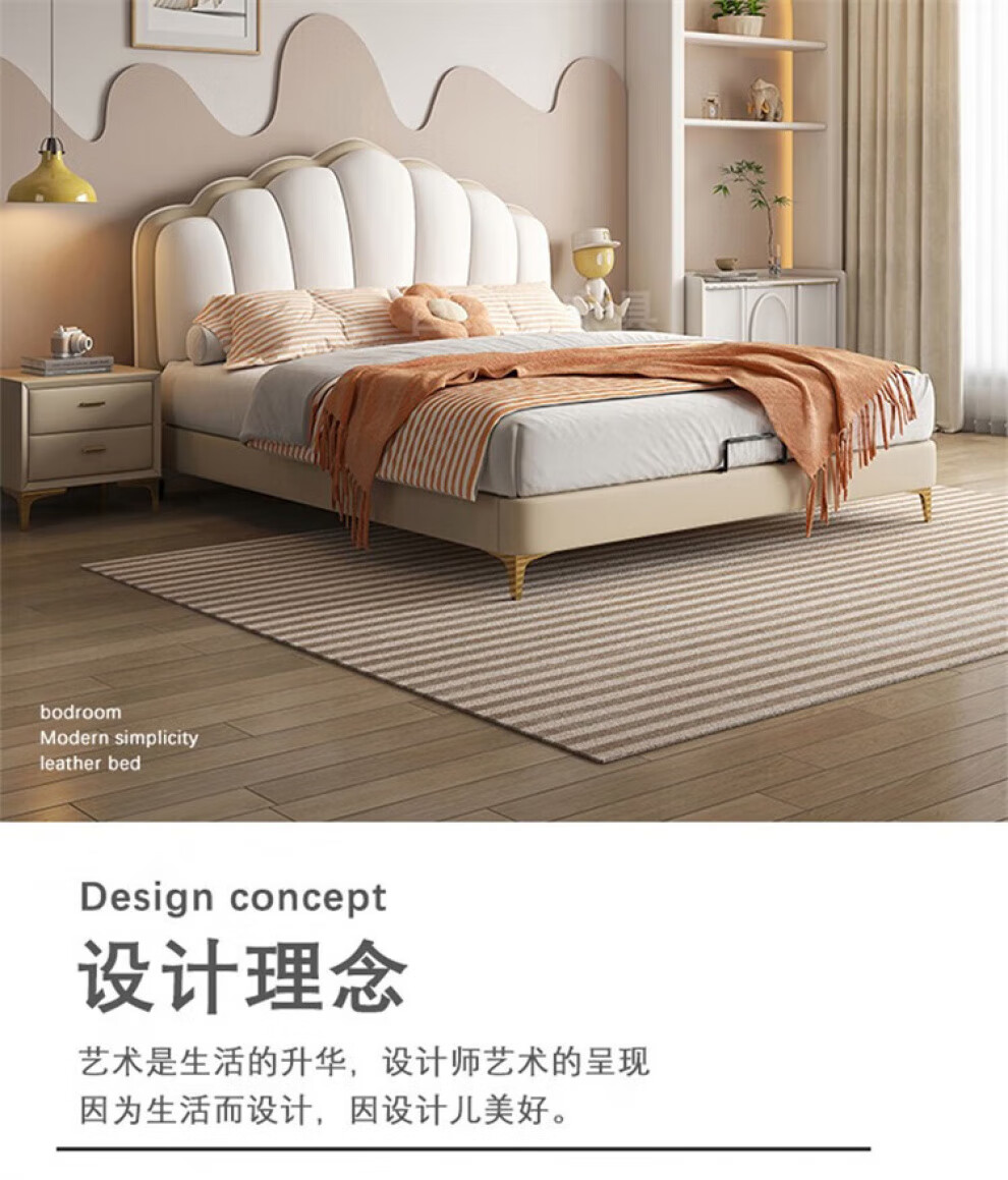 Wufan modern soft-packed shell bed cream style master bedroom double bed 1.8m soft-packed storage bed small and medium-sized apartment full-edge bed + skin-friendly independent bag spring mattress + 1 cabinet 1.8*2m frame bed 15cm silent bed board