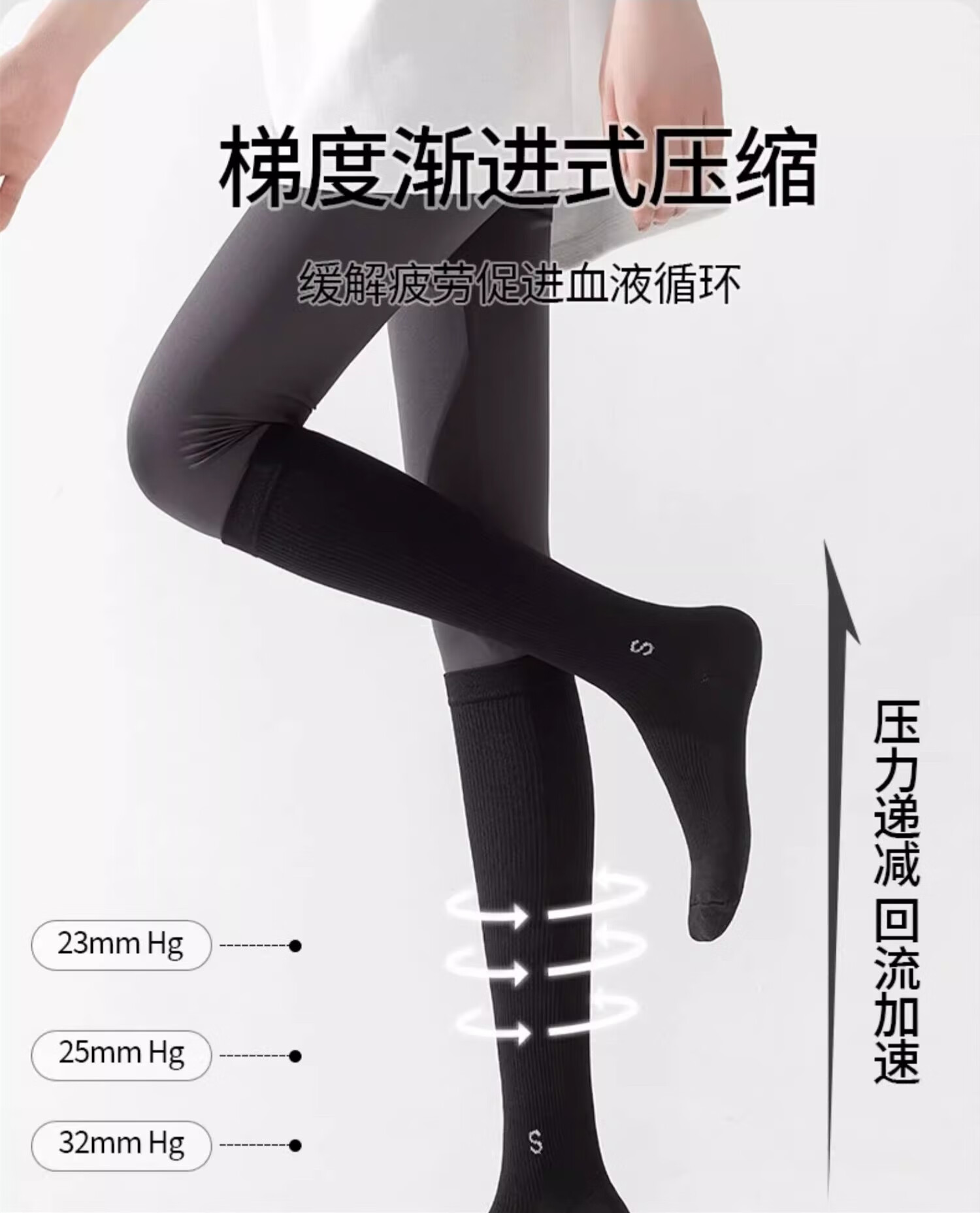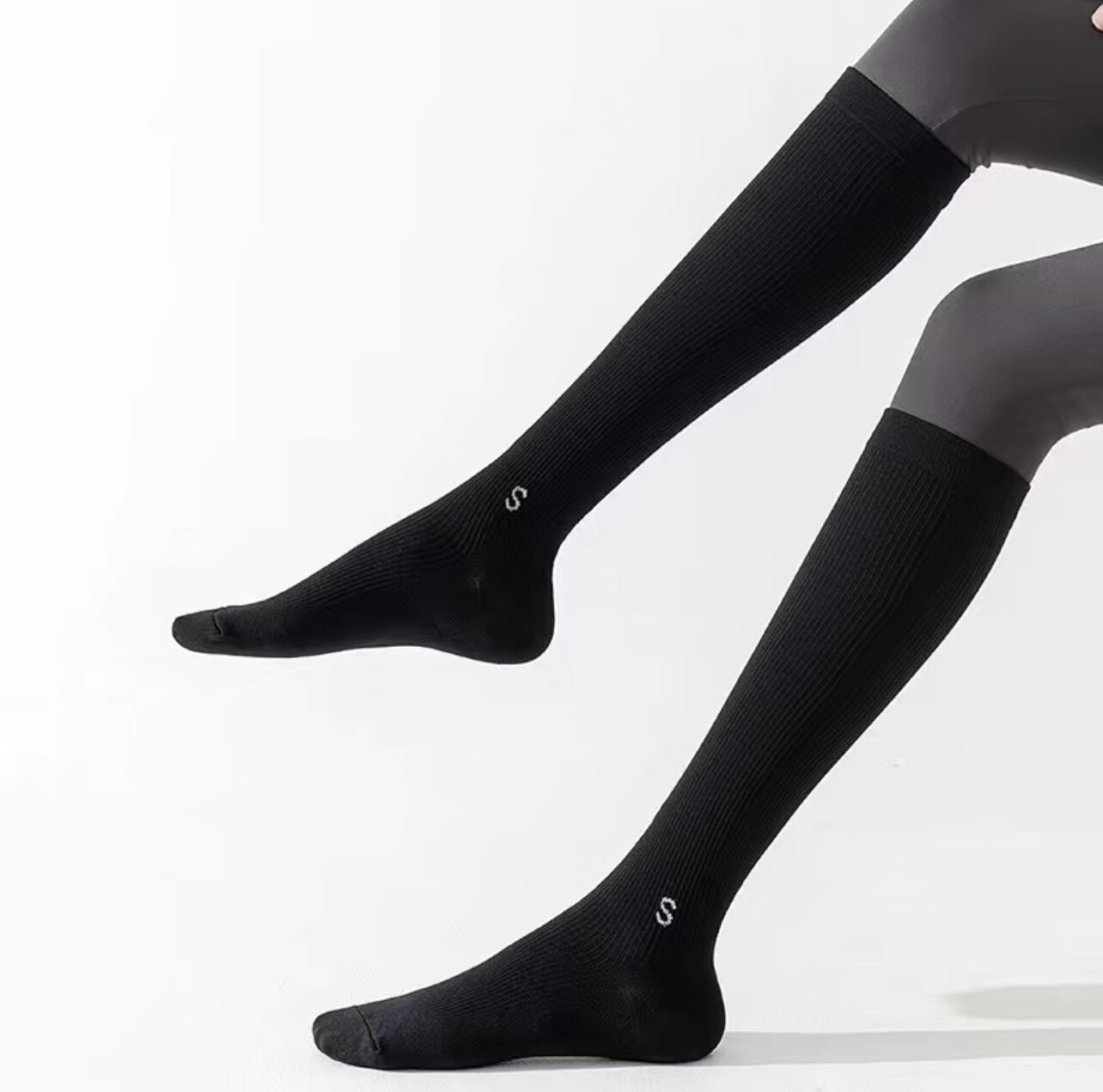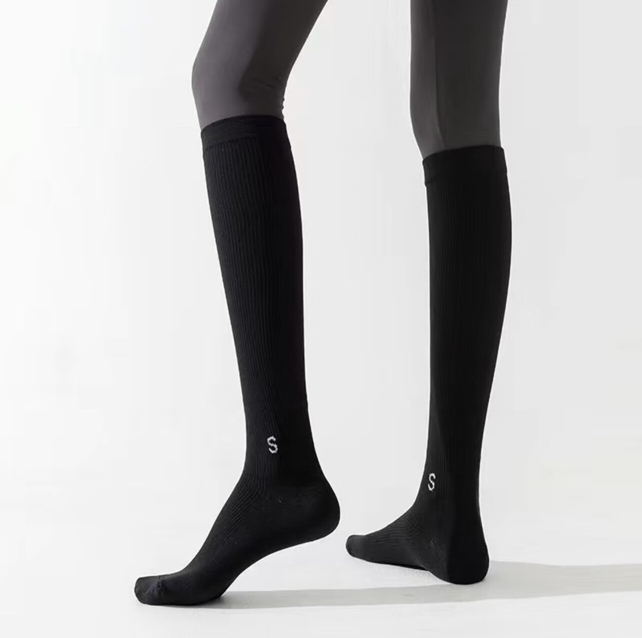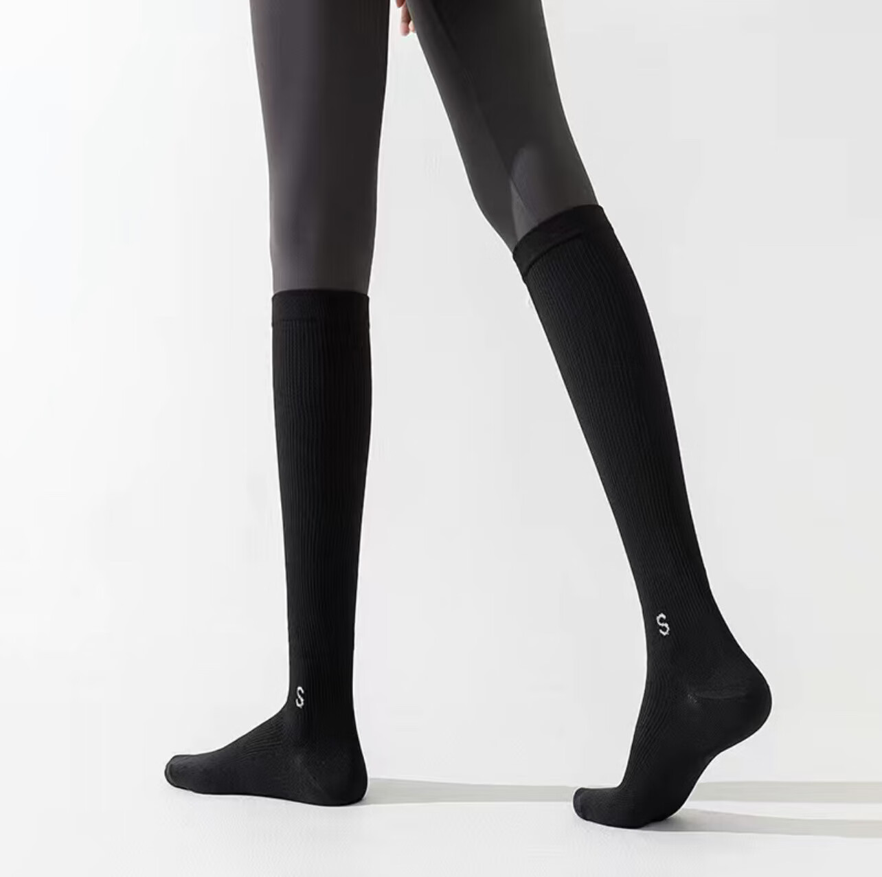 St. Xian pressure calf socks for women in spring and autumn, non-slip, professional fitness, long-tube muscle compression socks, thin leg skipping socks, black, 34-41 yards/1 pair