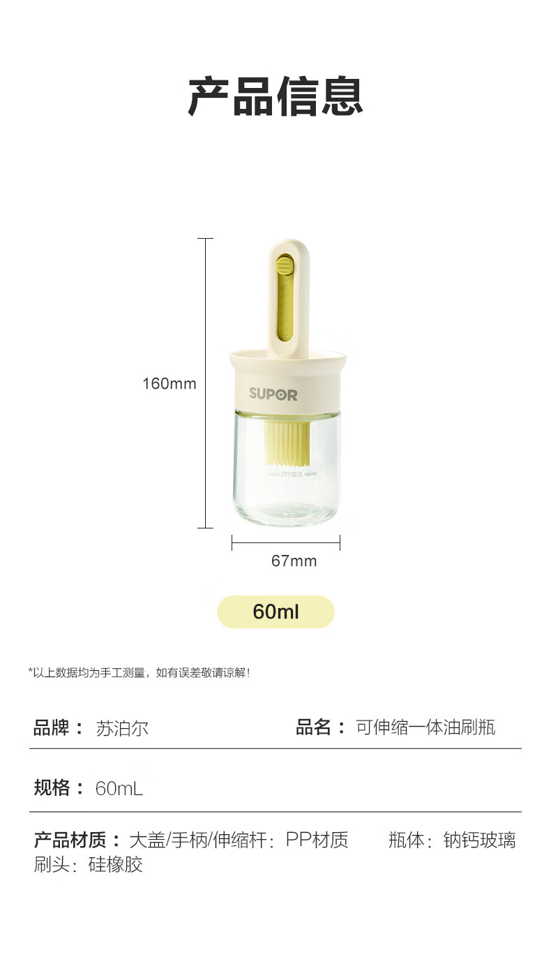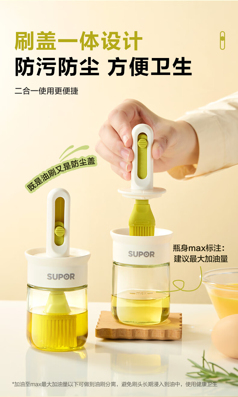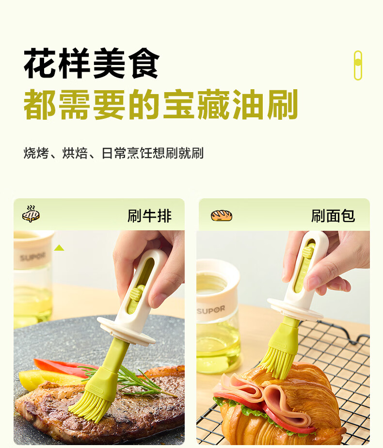 SUPOR oil brush retractable integrated oil brush bottle household silicone oil brush with bottle kitchen barbecue brush food grade baking brush oil telescopic handle oil brush bottle single piece