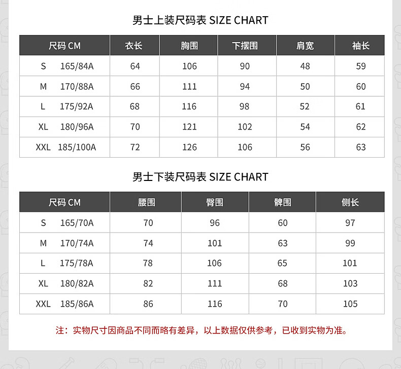 China (cm) 165 / 88-90 170 / 96-98 175 / 108-110 180 / 118-122 185 / 126-130