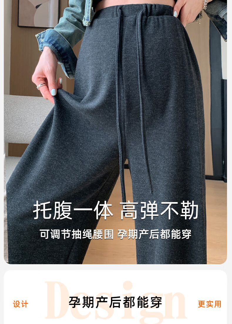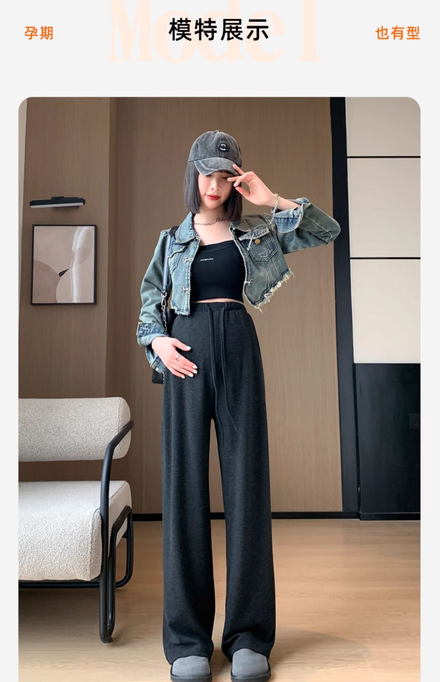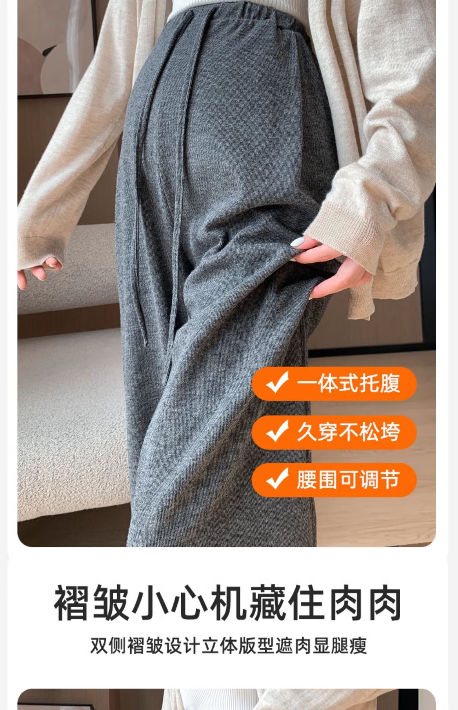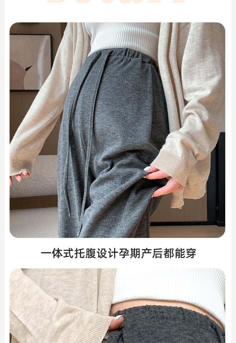 Geman maternity pants plus velvet for autumn and winter casual wide-leg pants for pregnant women that do not tighten the belly, glutinous rice pants for small people, large size, dark gray regular style (plus velvet) XL130-150Jin Jin is equal to 0.5 kg
