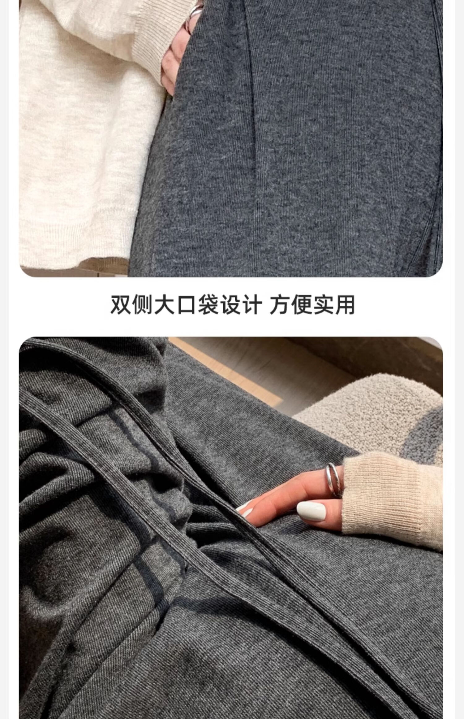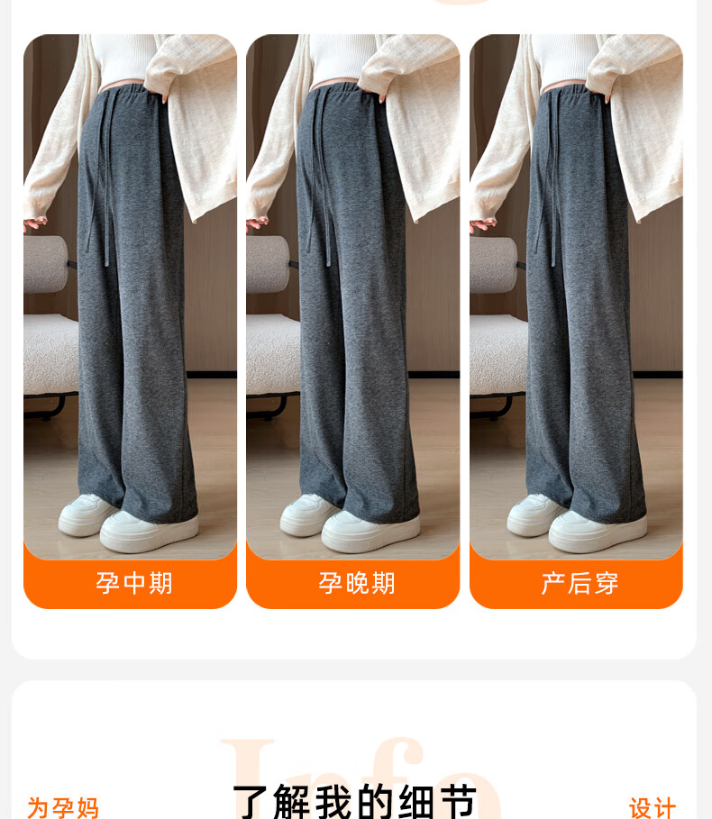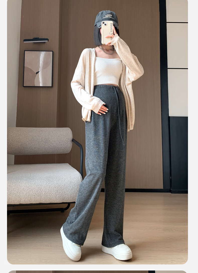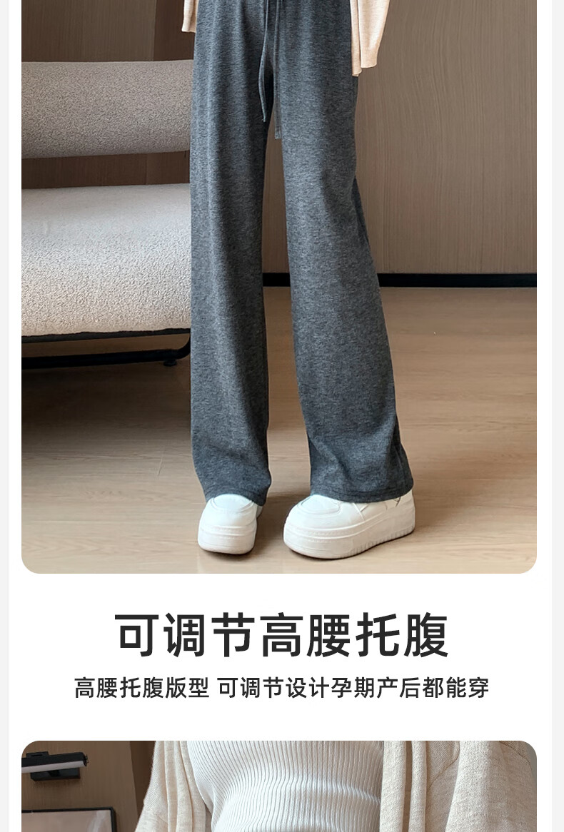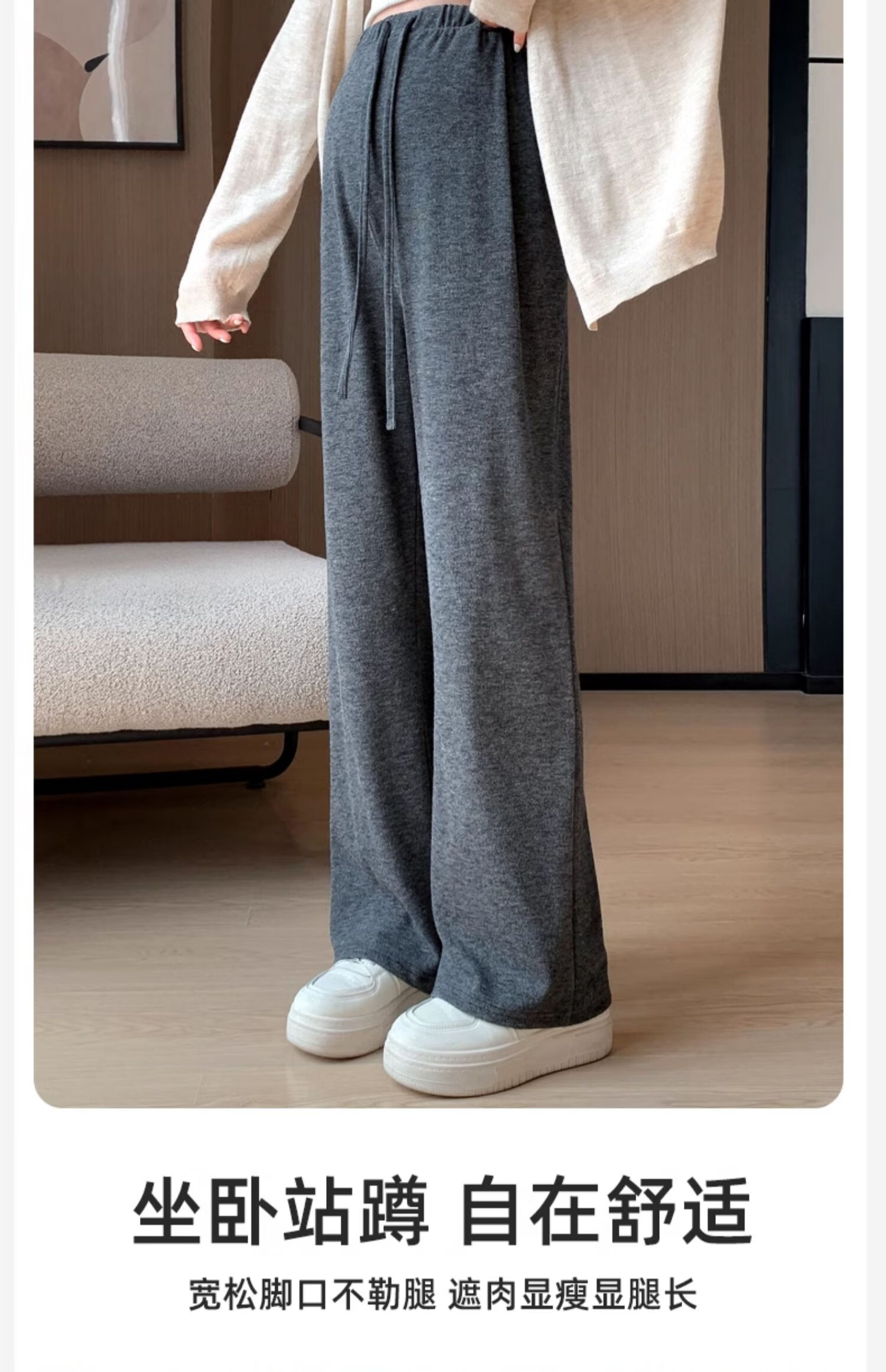 Geman maternity pants plus velvet for autumn and winter casual wide-leg pants for pregnant women that do not tighten the belly, glutinous rice pants for small people, large size, dark gray regular style (plus velvet) XL130-150Jin Jin is equal to 0.5 kg
