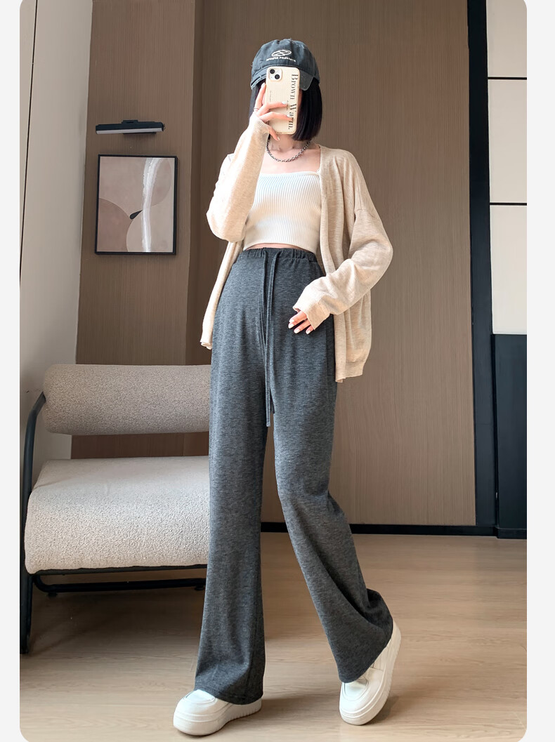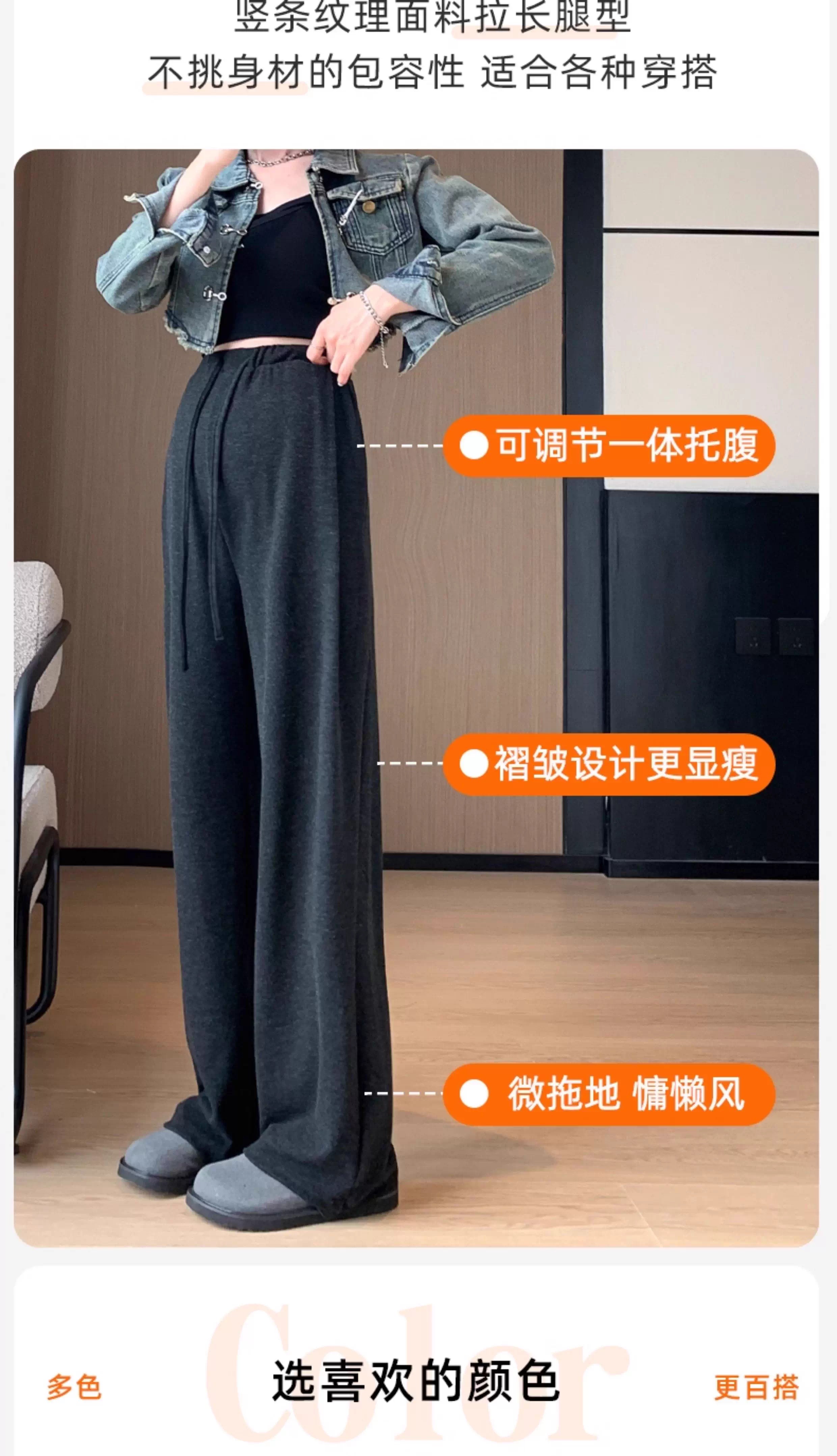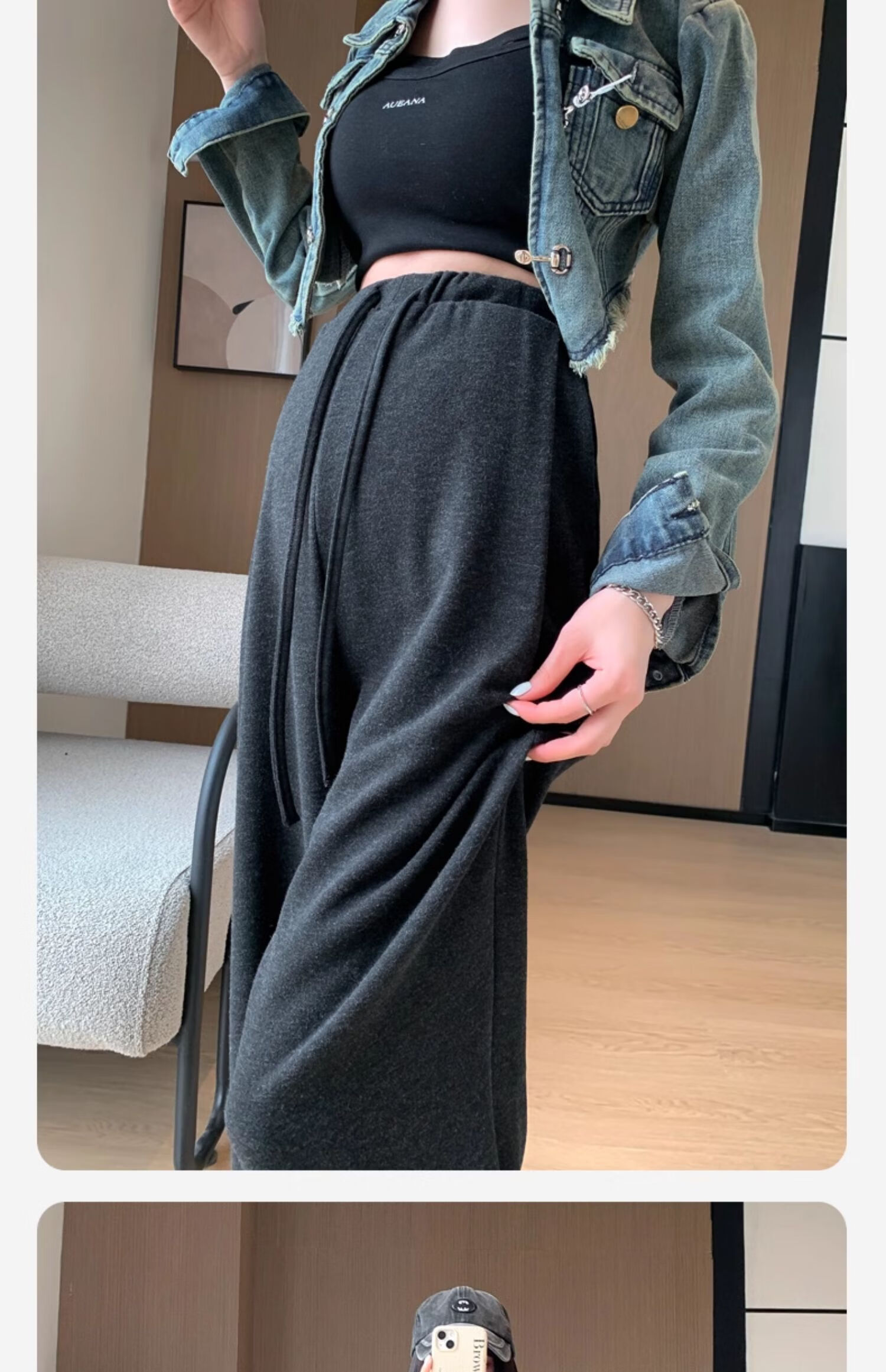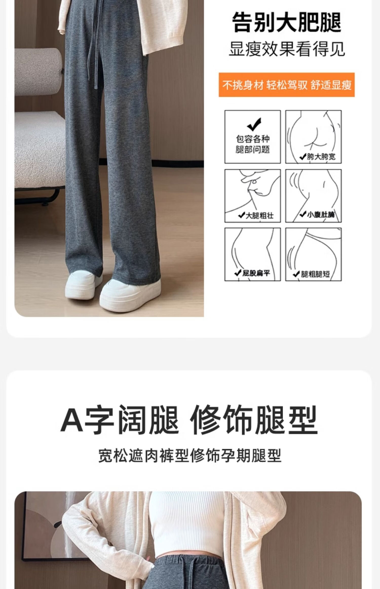 Geman maternity pants plus velvet for autumn and winter casual wide-leg pants for pregnant women that do not tighten the belly, glutinous rice pants for small people, large size, dark gray regular style (plus velvet) XL130-150Jin Jin is equal to 0.5 kg