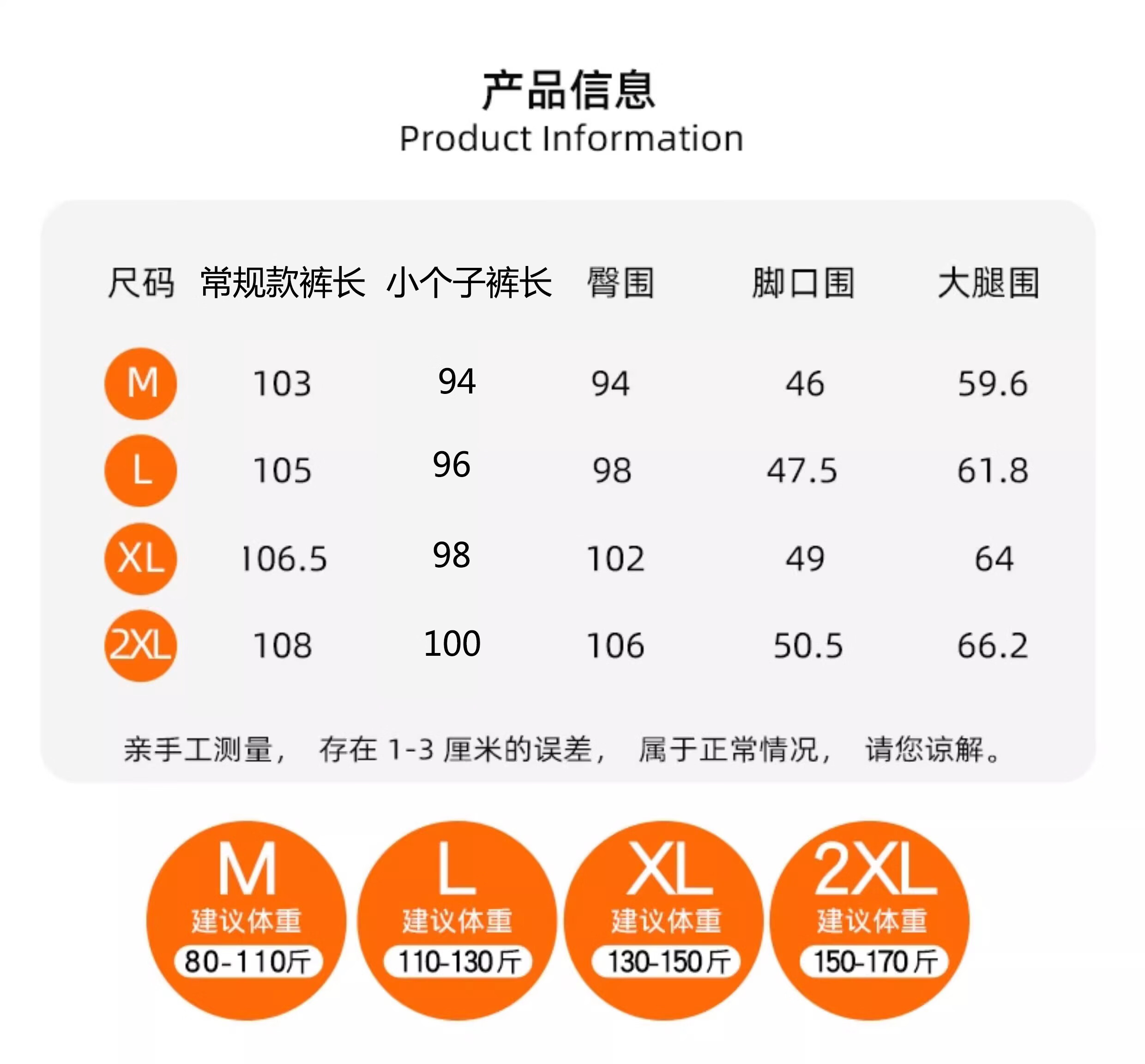Outseam (cm) 99 cm 101.5 cm 104 cm 106.5 cm 109 cm