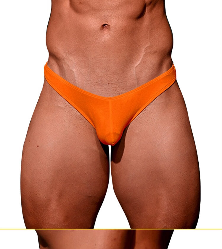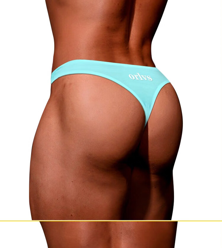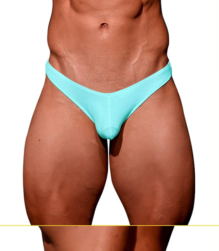 Modal thin sexy low-waisted seamless thong with large bulging bag breathable bikini bottoms for fitness men green 2XL