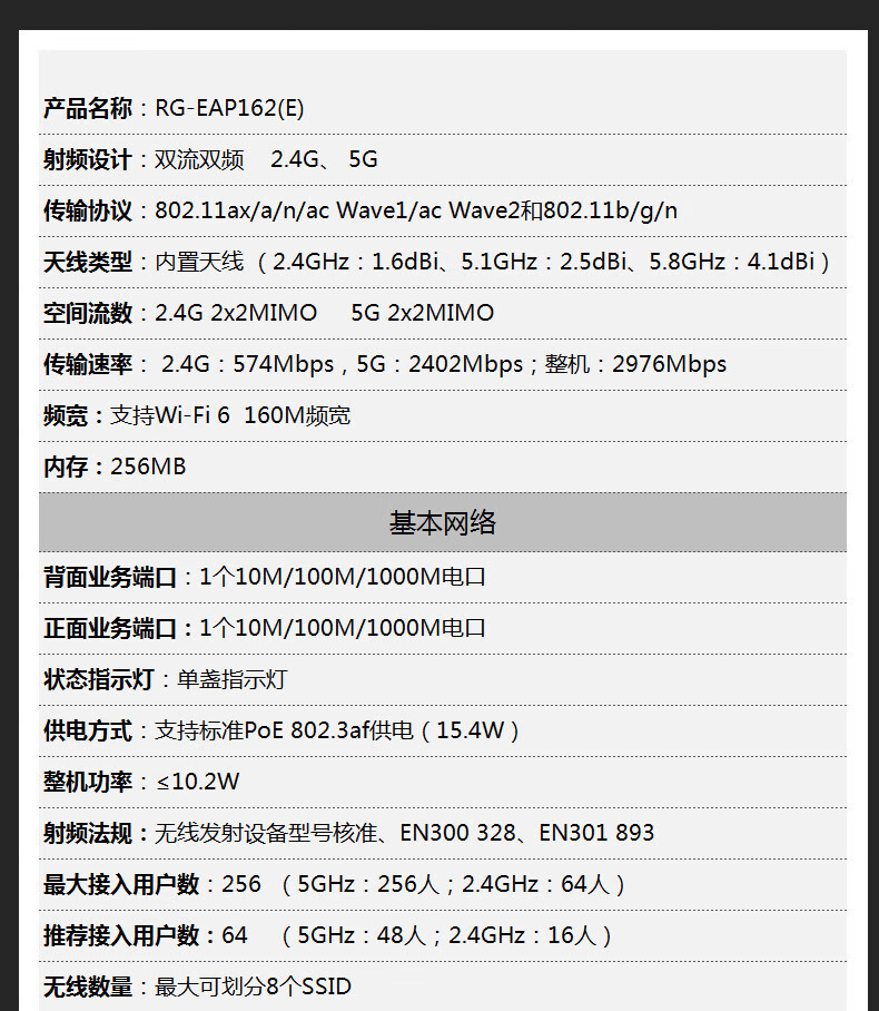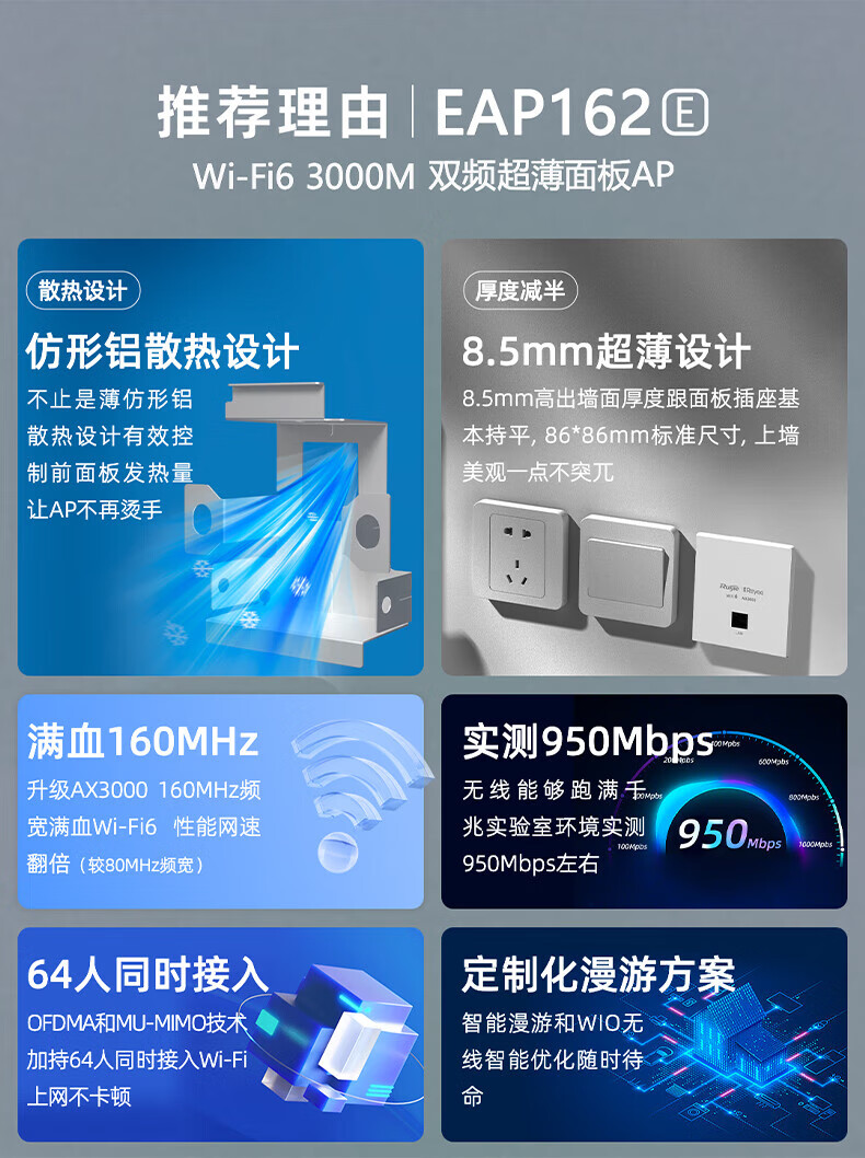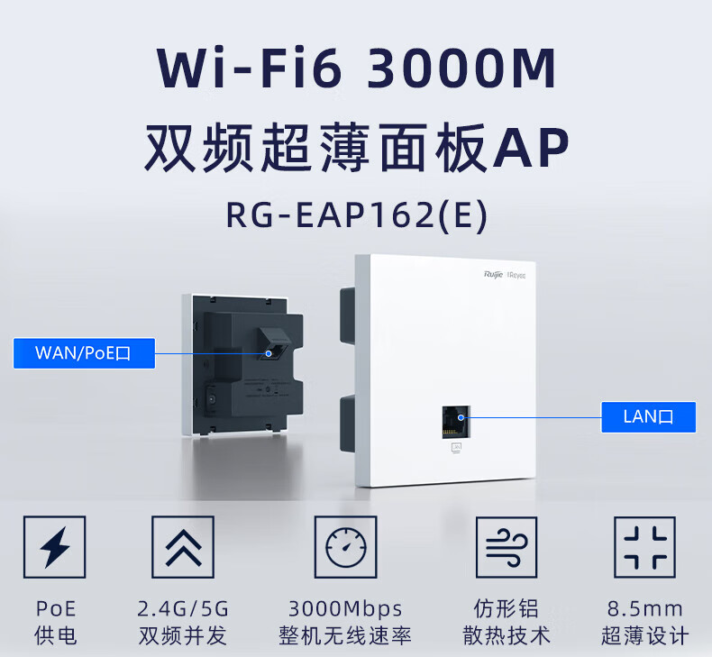 Suitable for Ruijie Ruiyi AX3000 Gigabit WiFi6 panel ap whole house WiFi coverage acap networking RG-EAP162E 10-port Gigabit upgraded POE router +