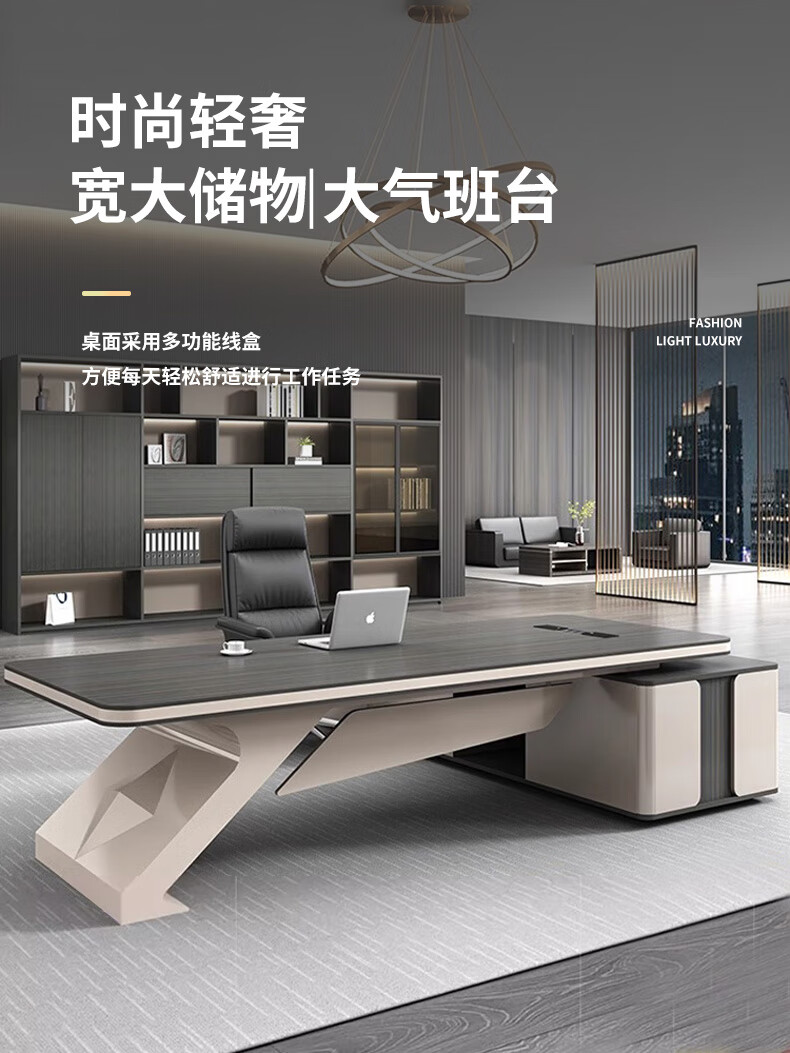 Guiqiu painted boss desk office desk simple modern leadership chairman president desk executive desk office desk and chair combination 2.4 meters boss table + boss chair + side cabinet