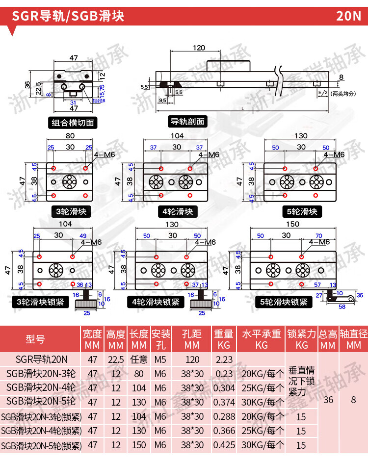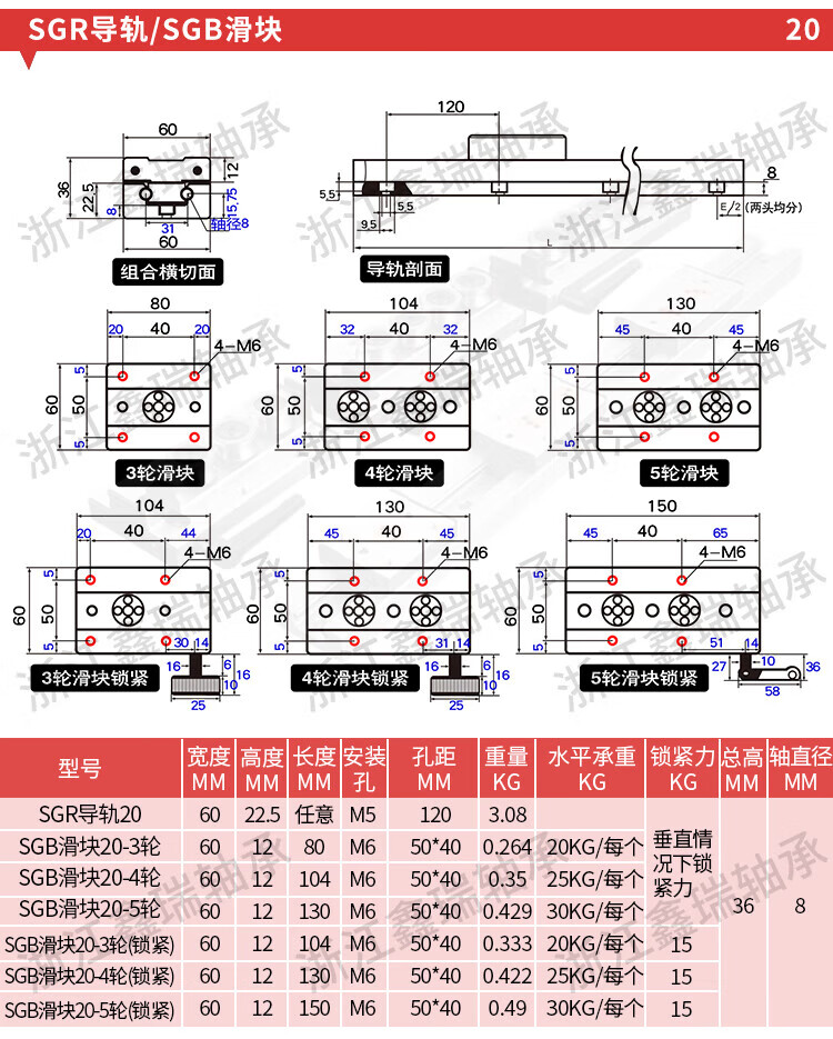 Built-in dual-axis linear guide SGR10 15N 20 25 35 roller slider smooth axis slide rail slide table track SGB35 slider 4 wheels others