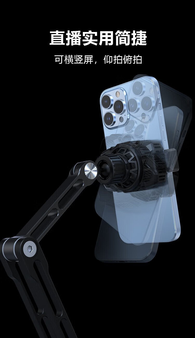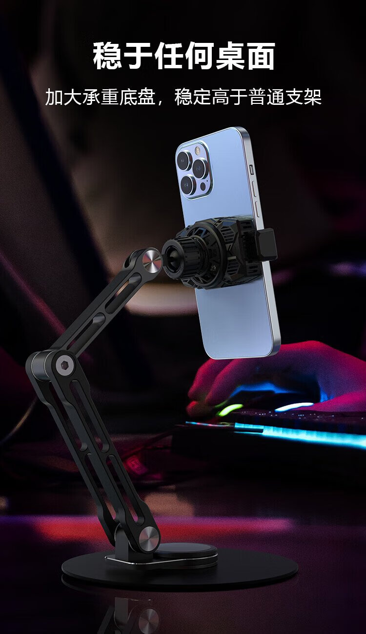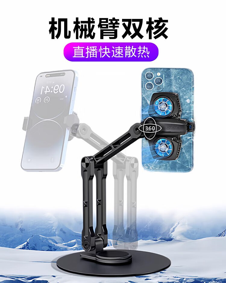 BYR Robotic Arm Rapid Cooling Refrigeration and Heat Dissipation Mobile Phone Live Broadcast Robot Arm Bracket Radiator Integrated Rotating Folding Aluminum Alloy Jewelry Overhead Shot Jewelry Raptor Same Style Robot Arm Bracket White 0-26cm Without Radiator Single Camera