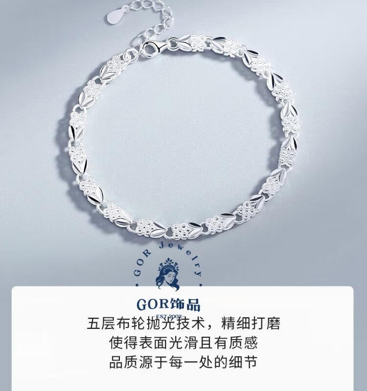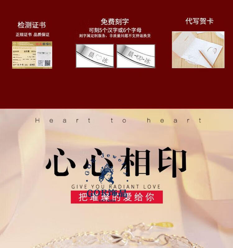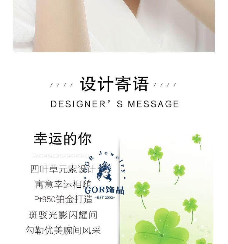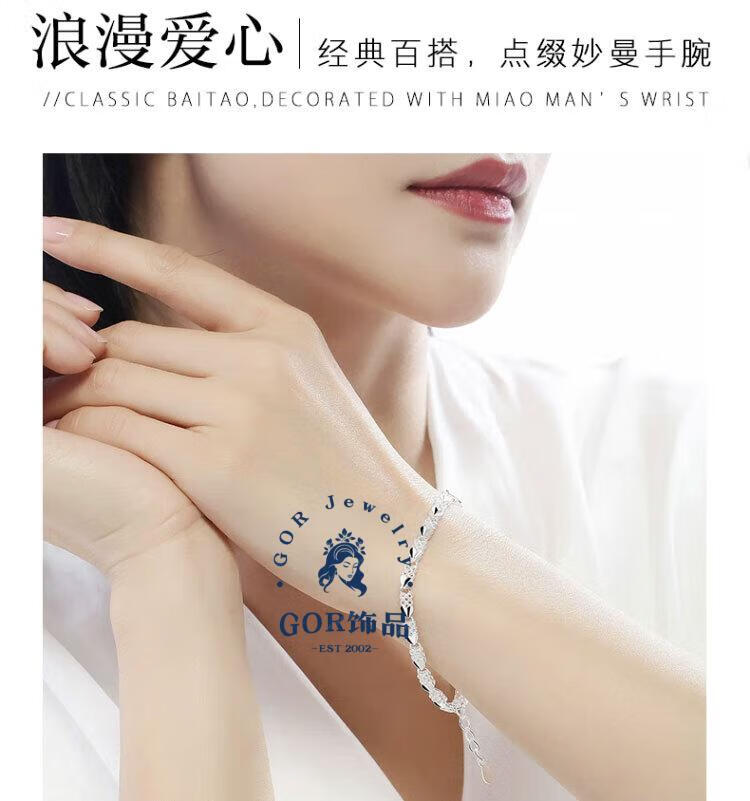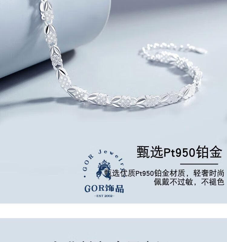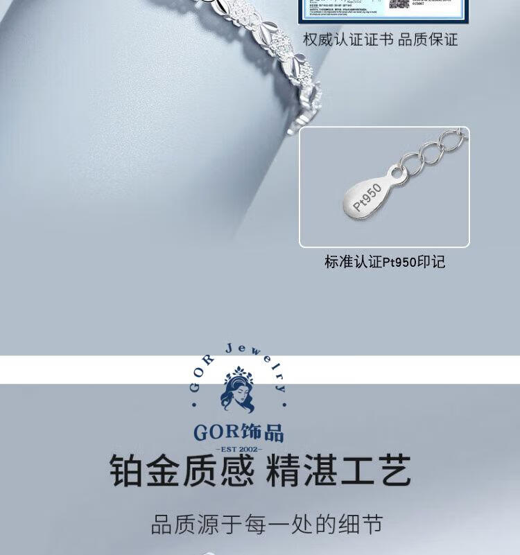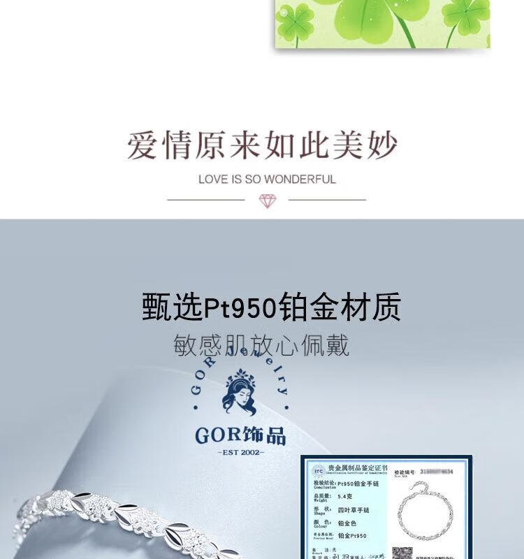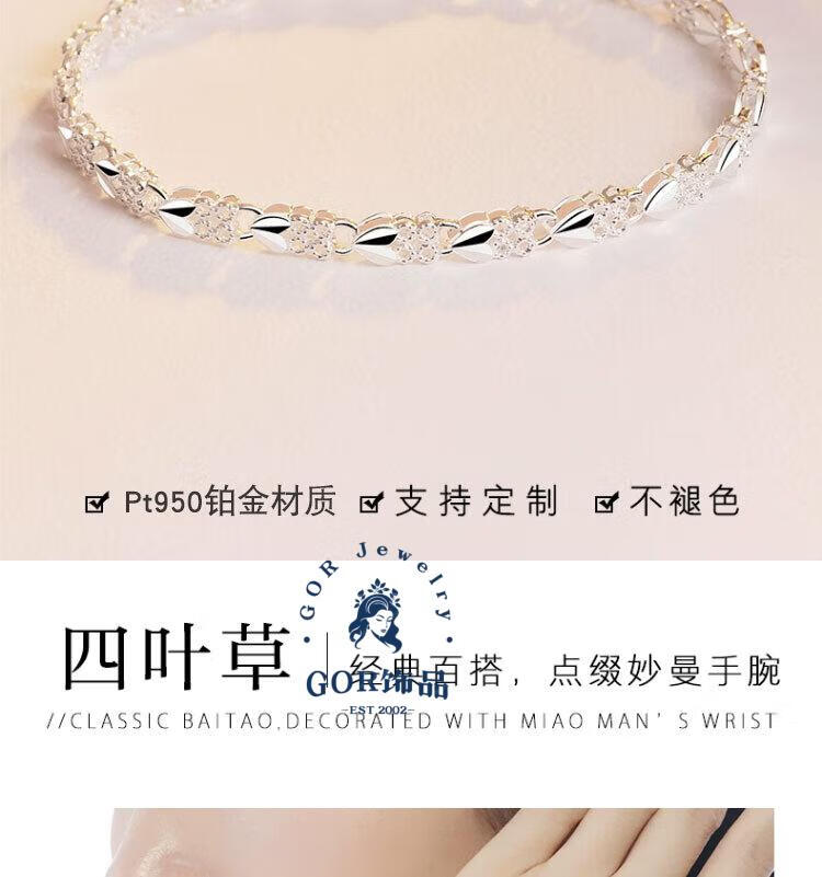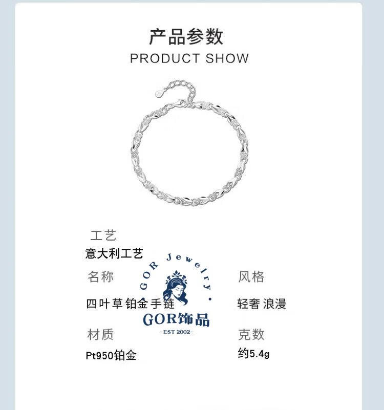 GOR Fat Donglai's same style pt950 platinum bracelet four-leaf clover 2024 new style bracelet Chinese Valentine's Day gift PT950 platinum heart-to-heart bracelet + love