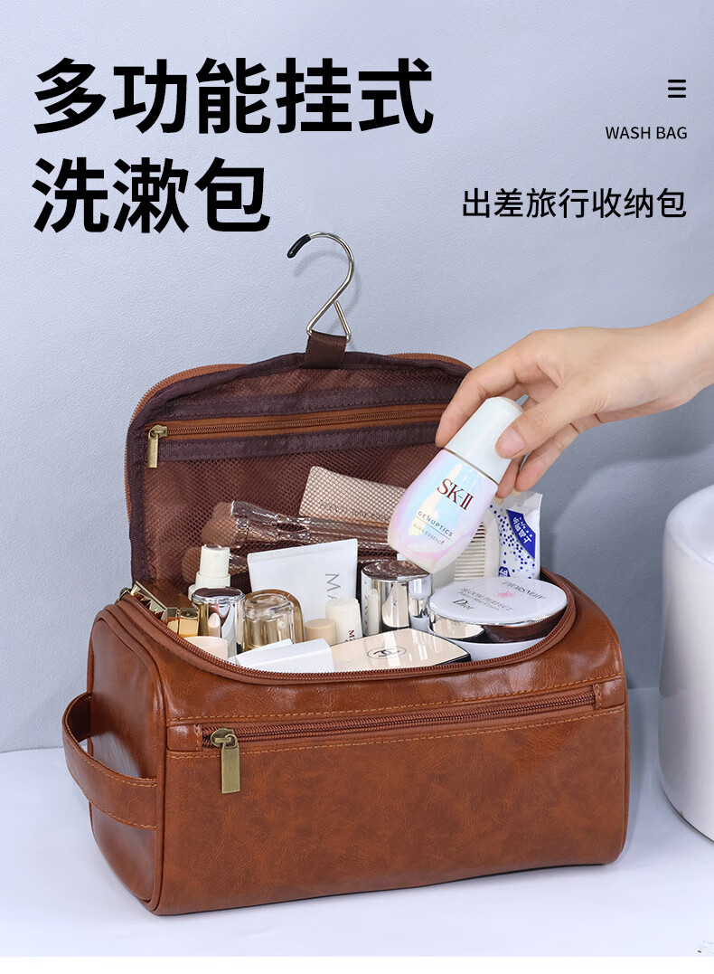 Yinuo toiletry bag for men when going out large-capacity portable waterproof cosmetic bag simple business trip women's cosmetic storage bag classic Oxford cloth style navy blue